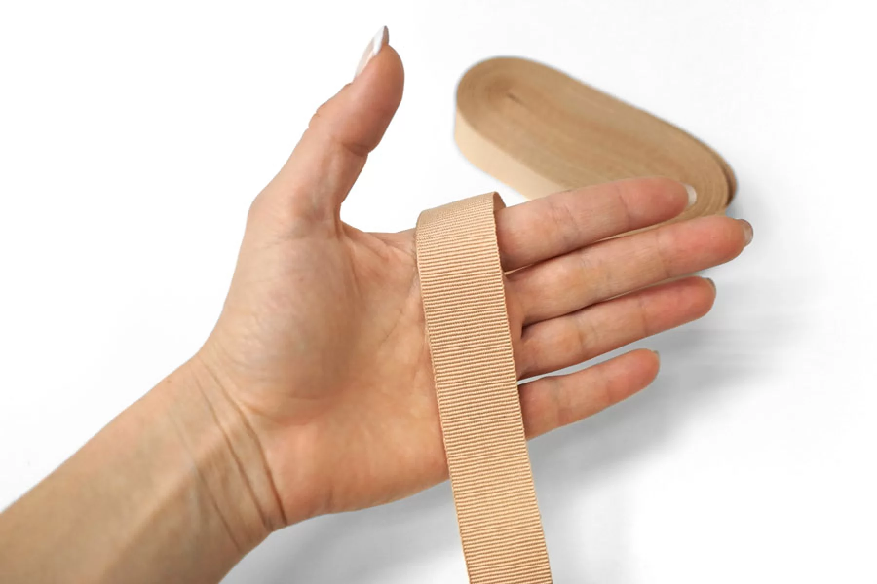 Репсовая лента из вискозы с хлопком в кофейно-бежевом оттенке от итальянского бренда Gros Grain. Плотная, гладкая наощупь. С красивым лоском. Ширина 2,5 см. Используется при пошиве и отделке одежды, а так же в декоре и рукоделии.