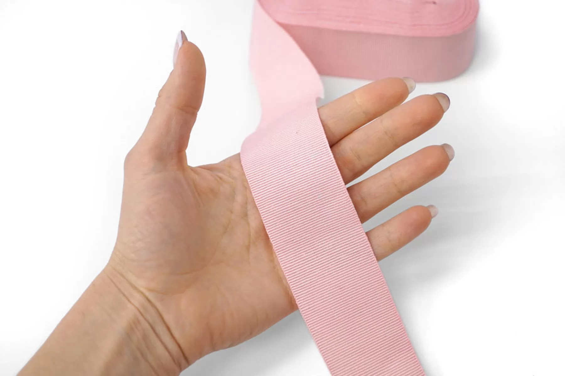 Репсовая лента из вискозы с хлопком в нежно-розовом цвете от итальянского бренда Gros Grain. Плотная, гладкая наощупь. С красивым лоском. Ширина 4 см. Используется при пошиве и отделке одежды, а так же в декоре и рукоделии.
