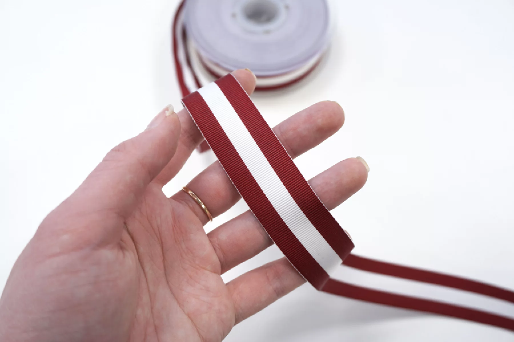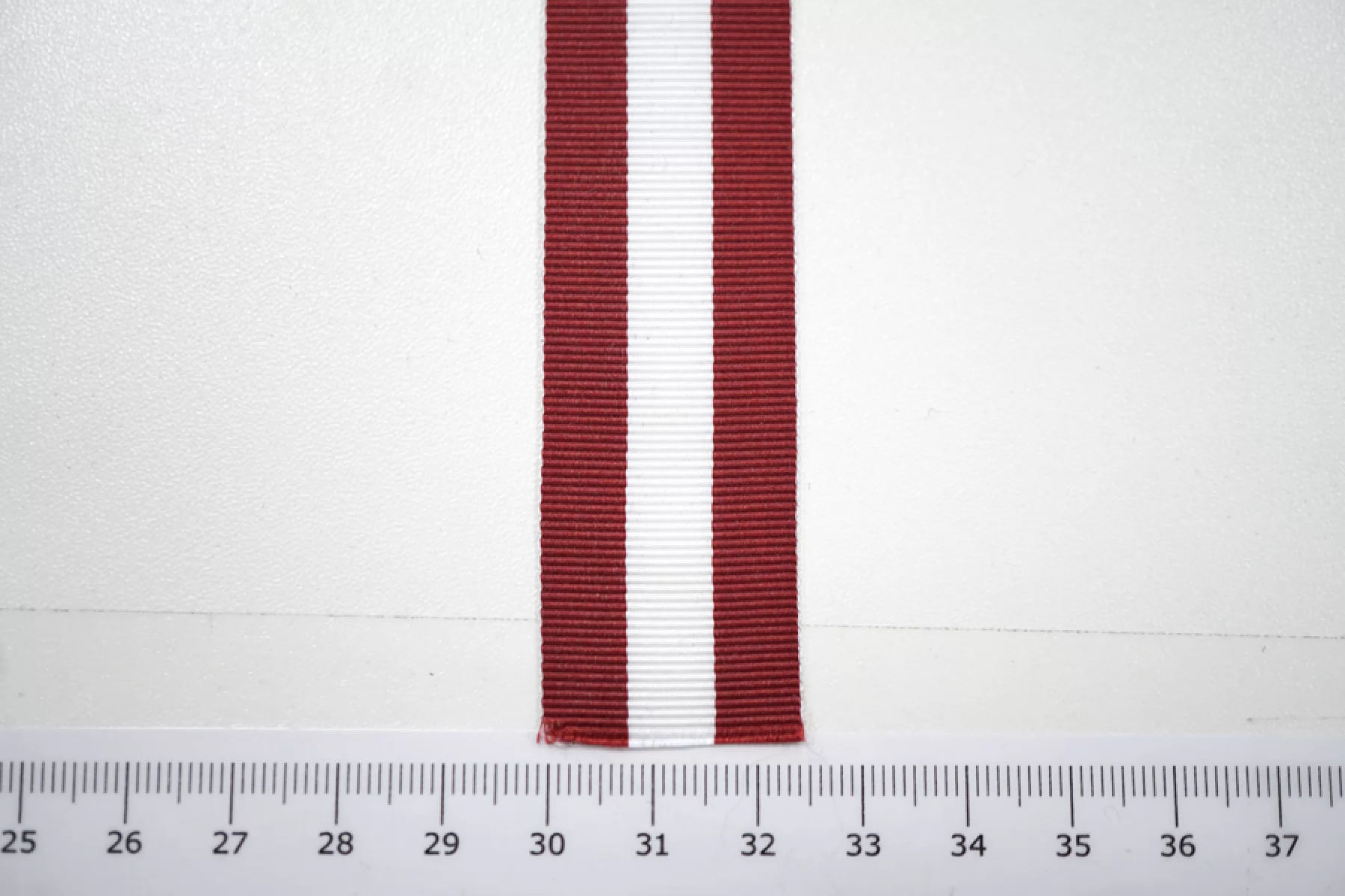 Бело-бордовая репсовая лента-лампас шириной 2,5 см.
