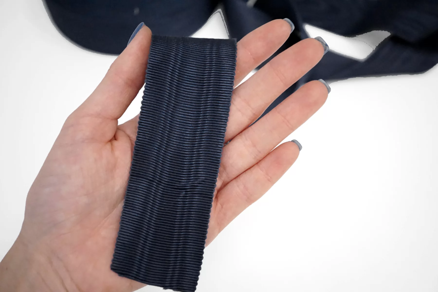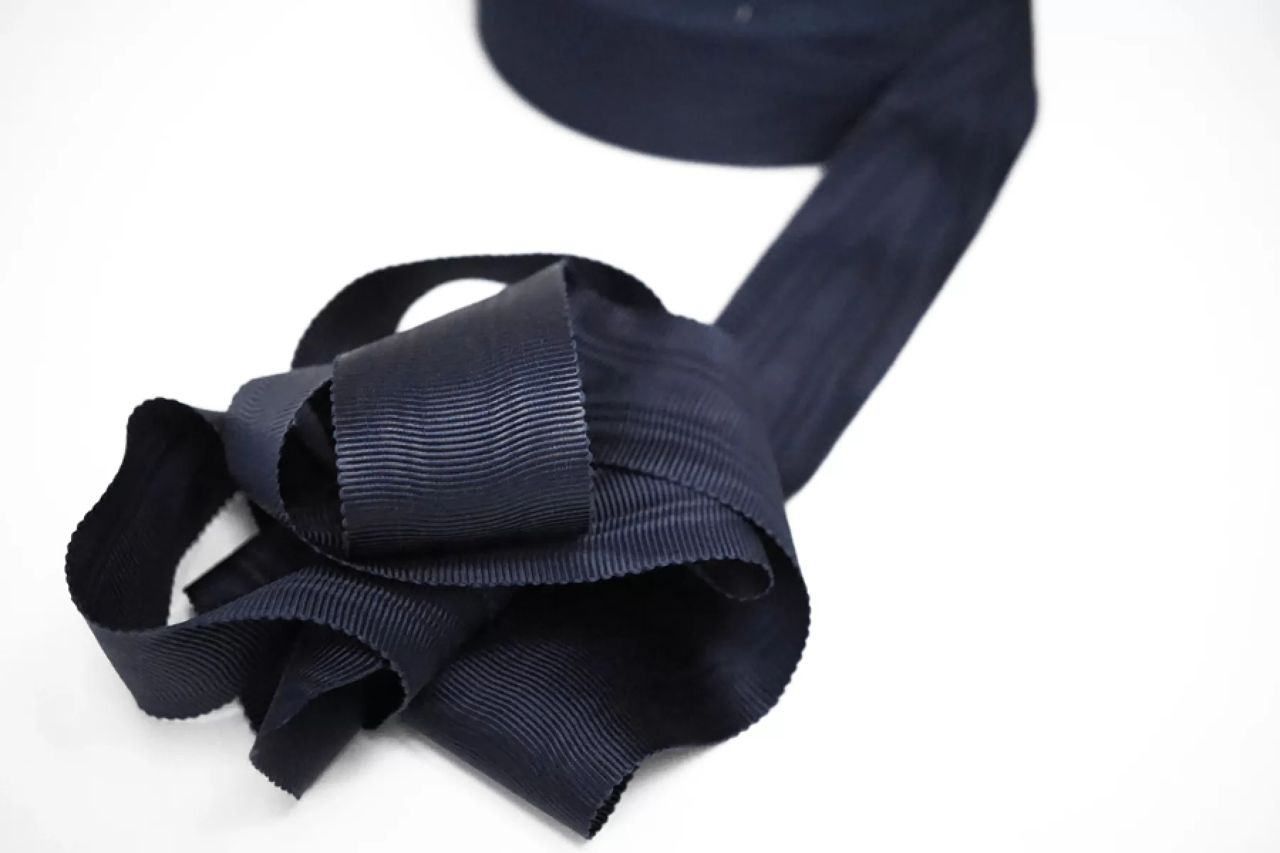 Репсовая лента из хлопка с вискозой темно-синего цвета. Мягкая, толстенькая, плотная. С красивым лоском. Муар. Ширина 4 см. Используется при пошиве и отделке одежды, а так же в декоре и рукоделии.