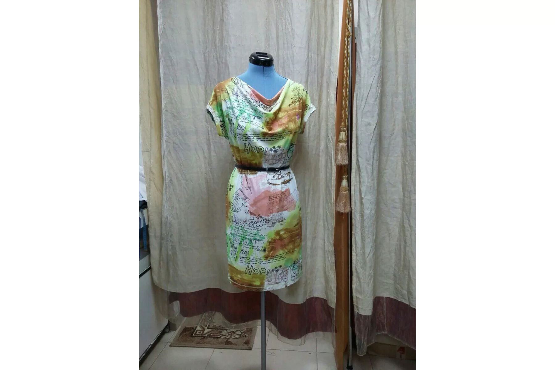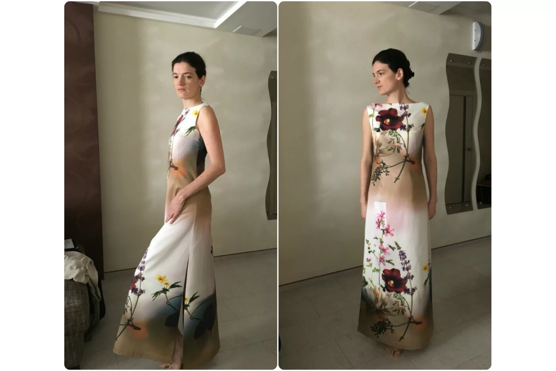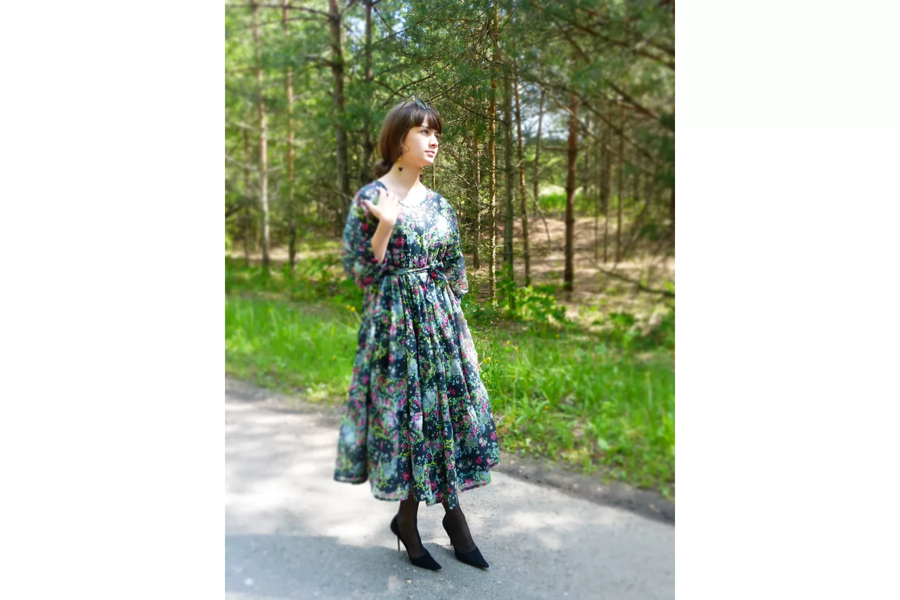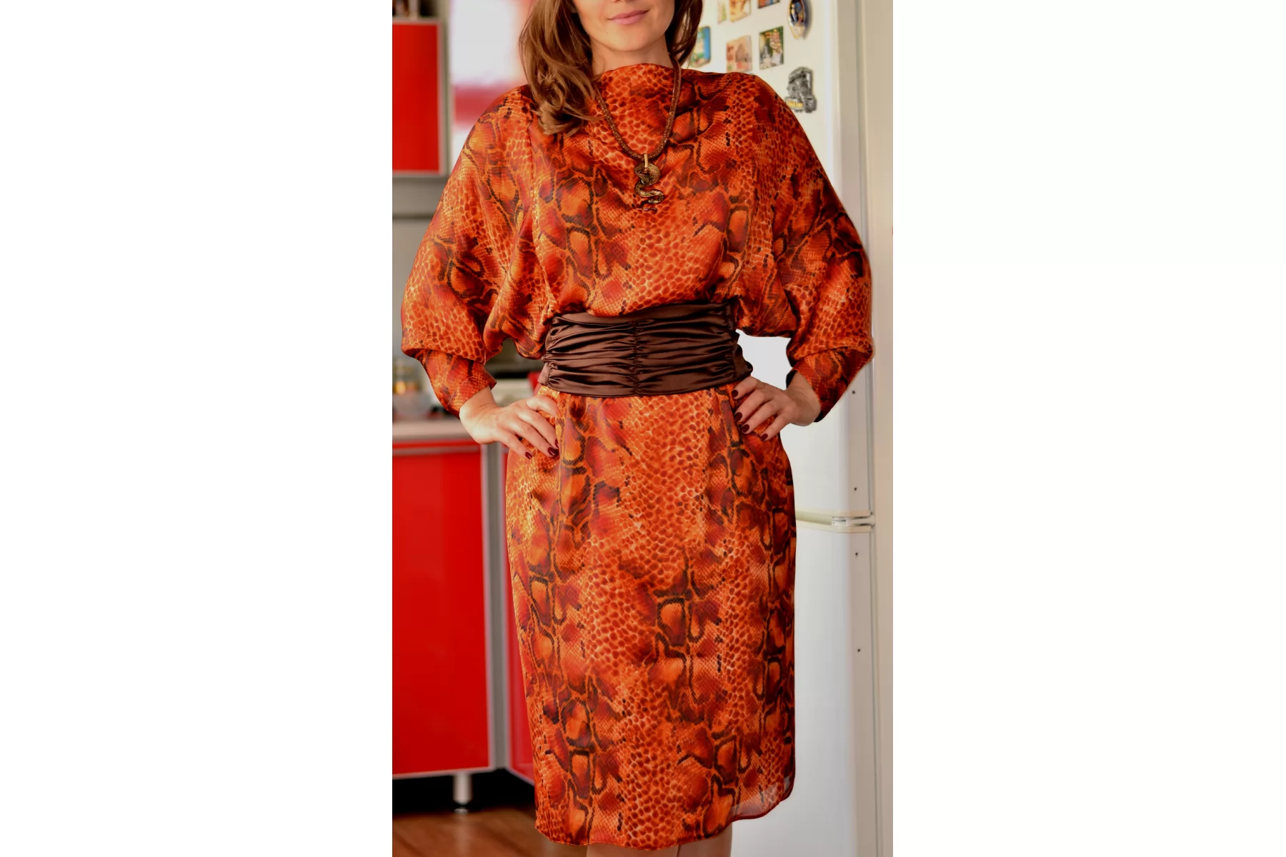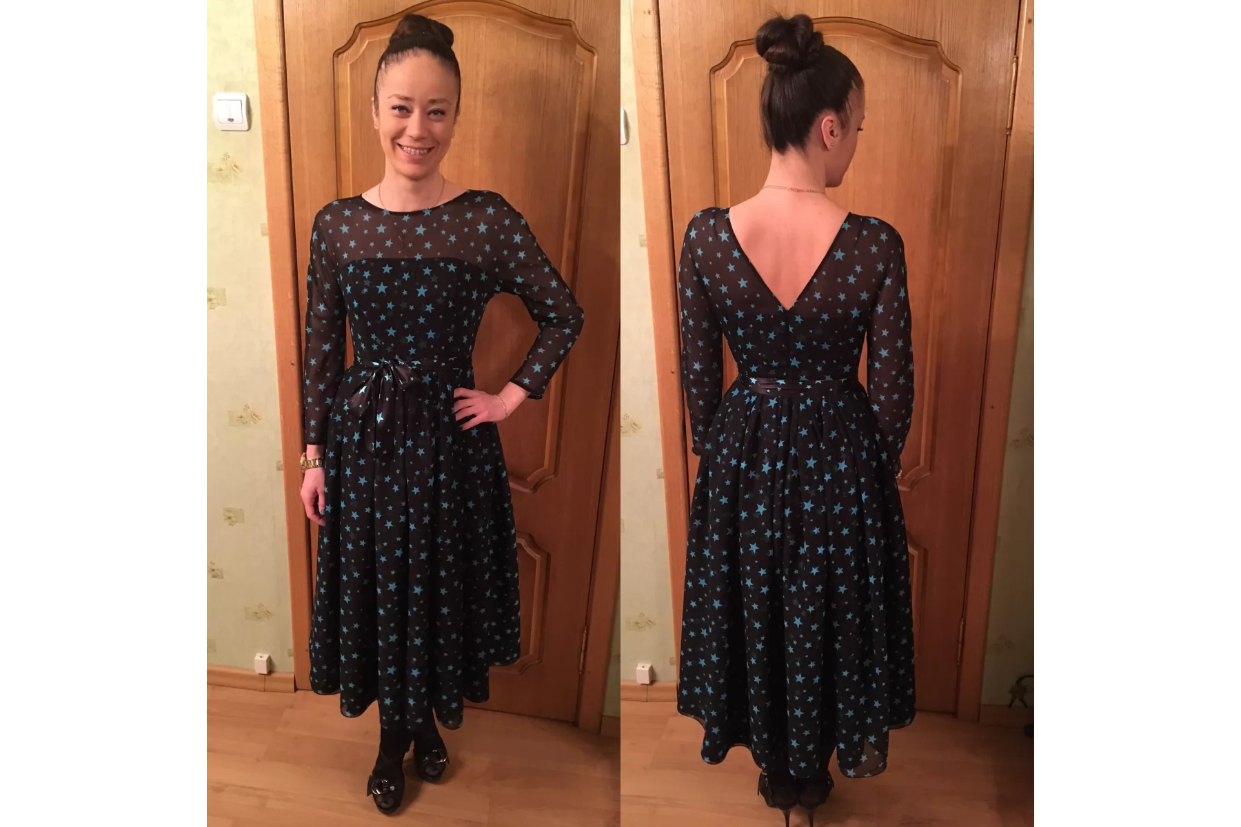 Вот такое у меня получилось платье из вашей ткани. Огромное вам спасибо за оперативную доставку и шикарную ткань.
