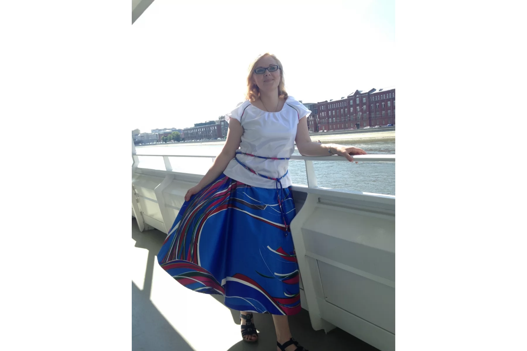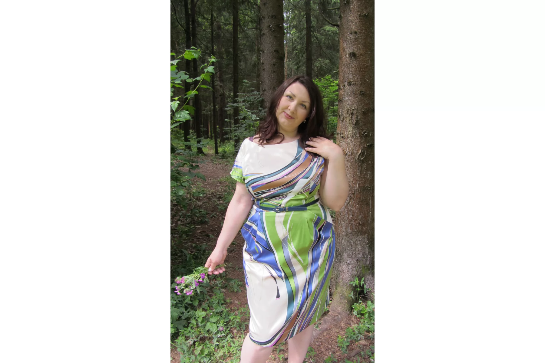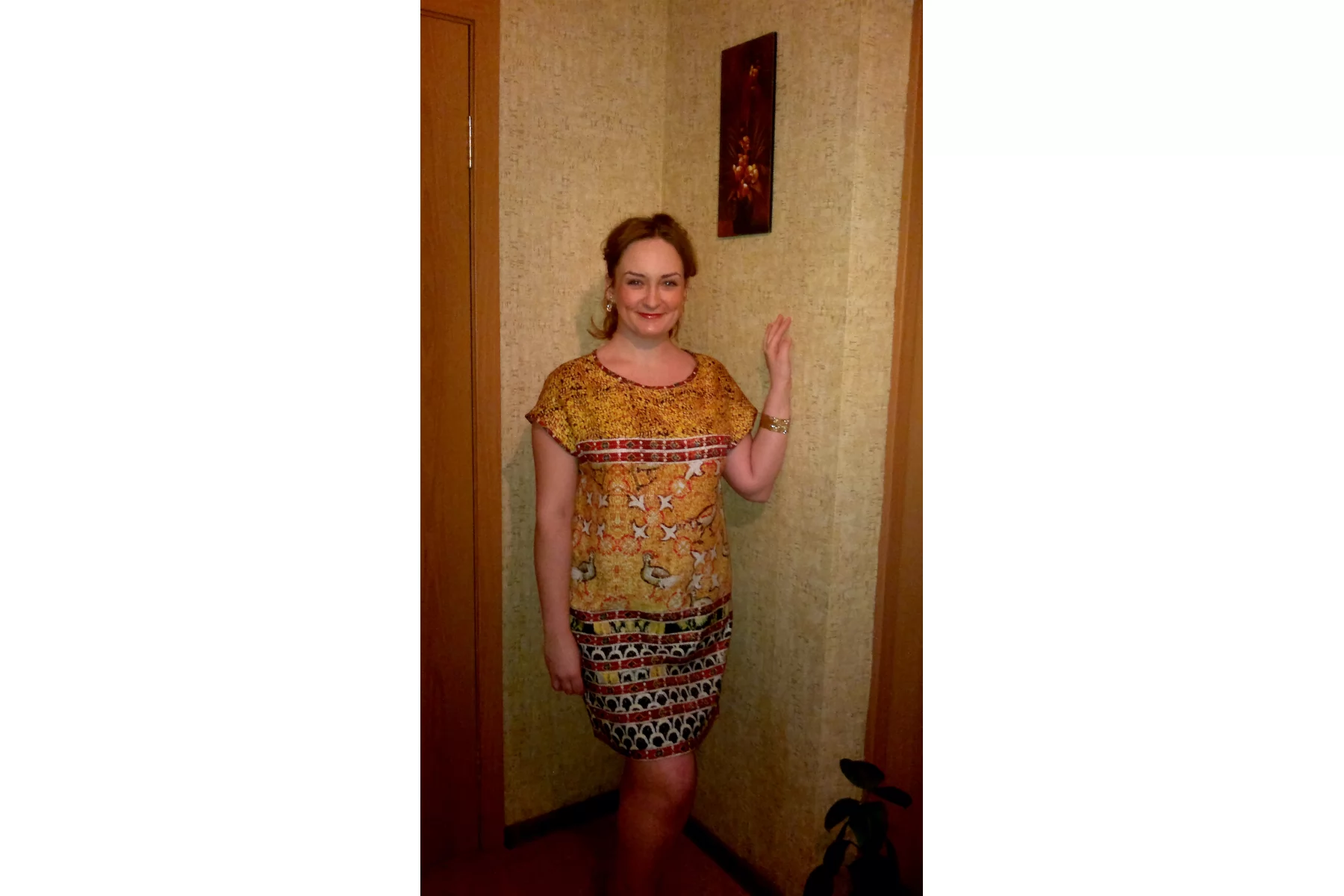Моя очередная обновка, сшитая из ткани вашего магазина. Лида, спасибо за ассортимент и деликатное обслуживание.