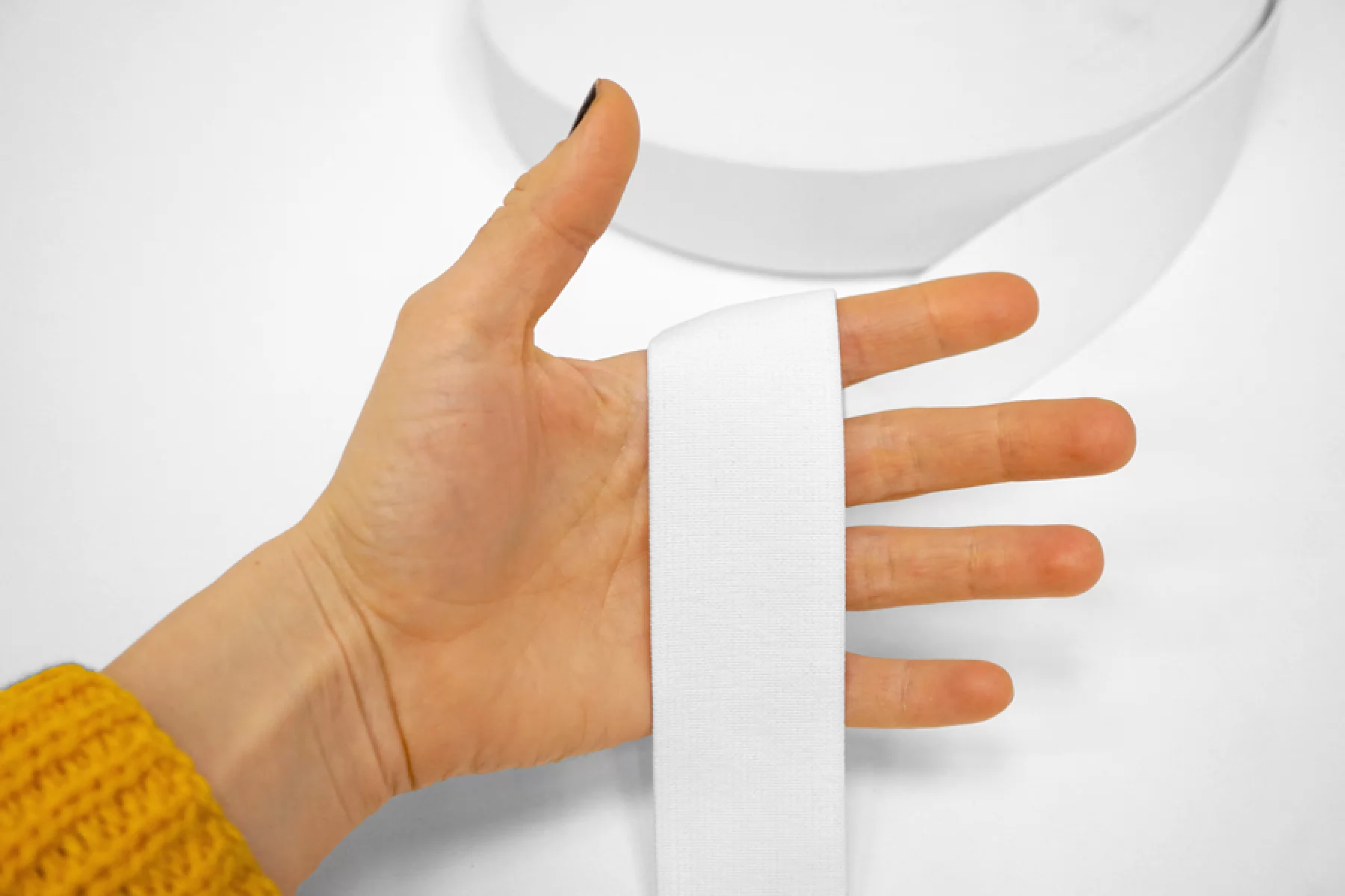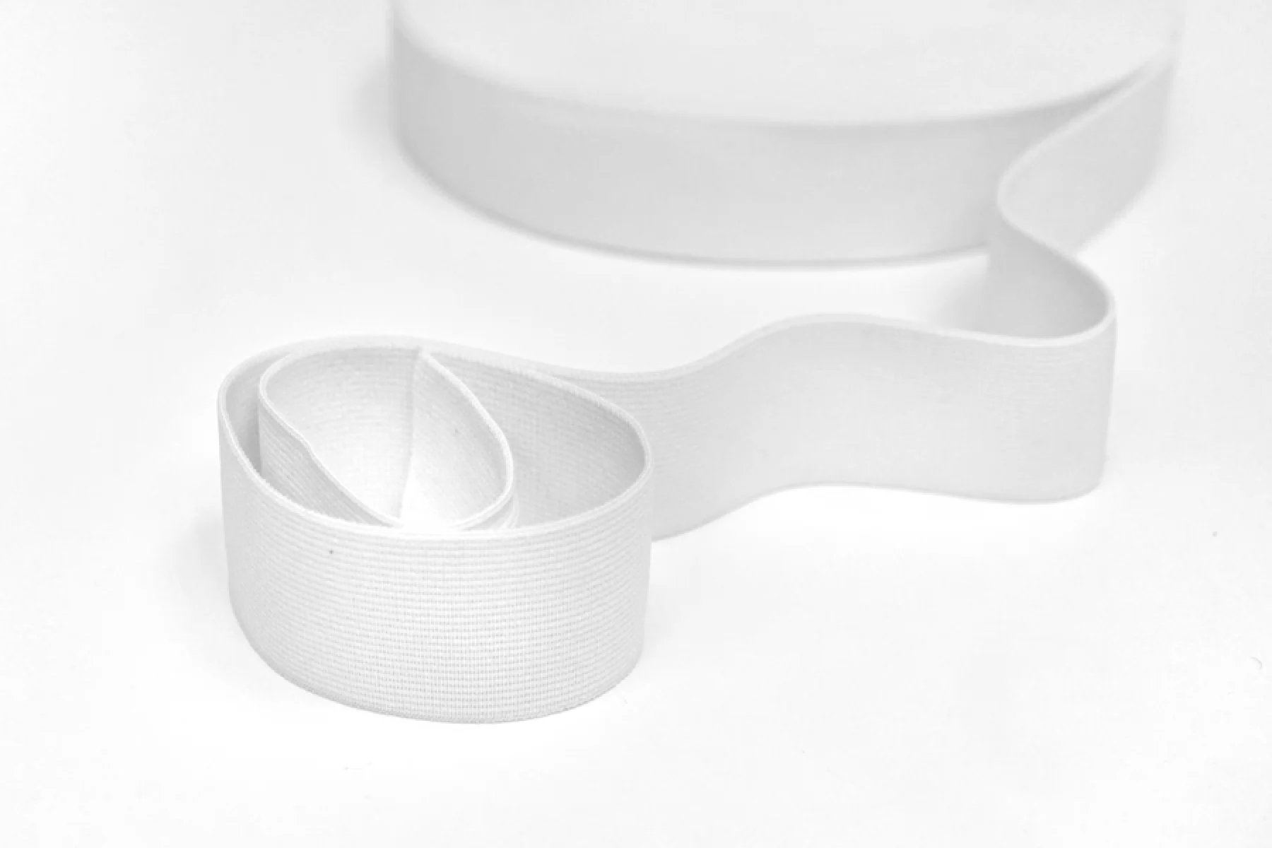 Тканная белая резинка шириной 4 см, упругая. Для использования в поясе брюк, юбок, и т.д. Цена за метр.