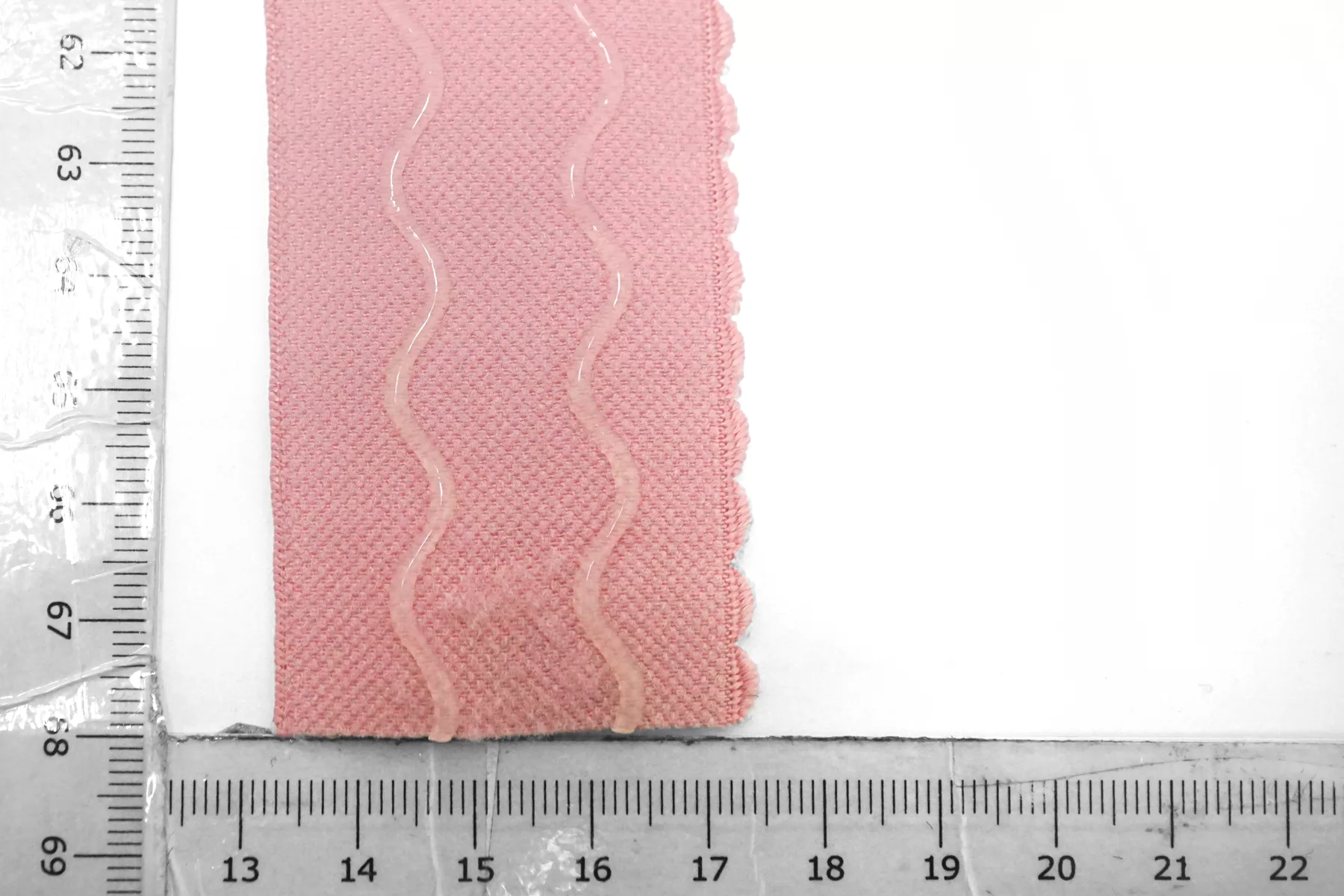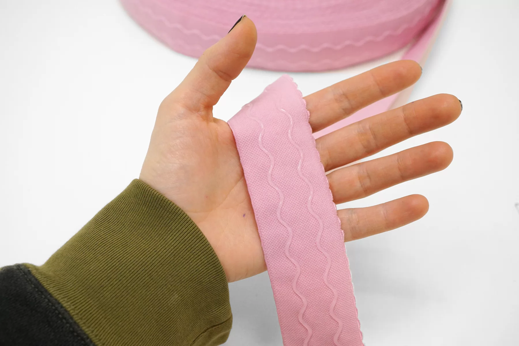 Эластичная резинка розового цвета с силиконом , ширина 4 см , хорошо тянется.