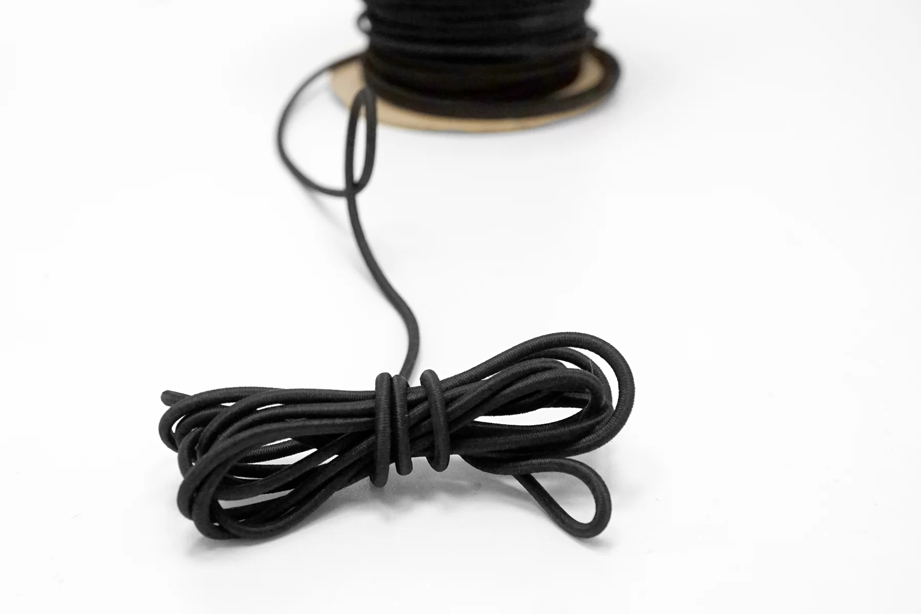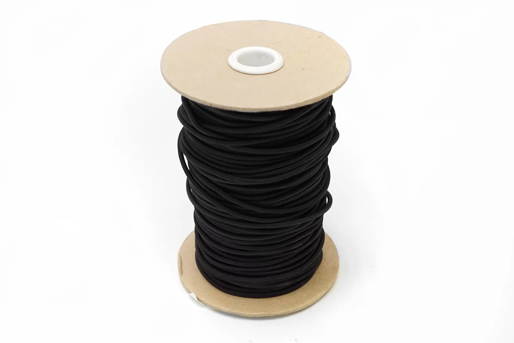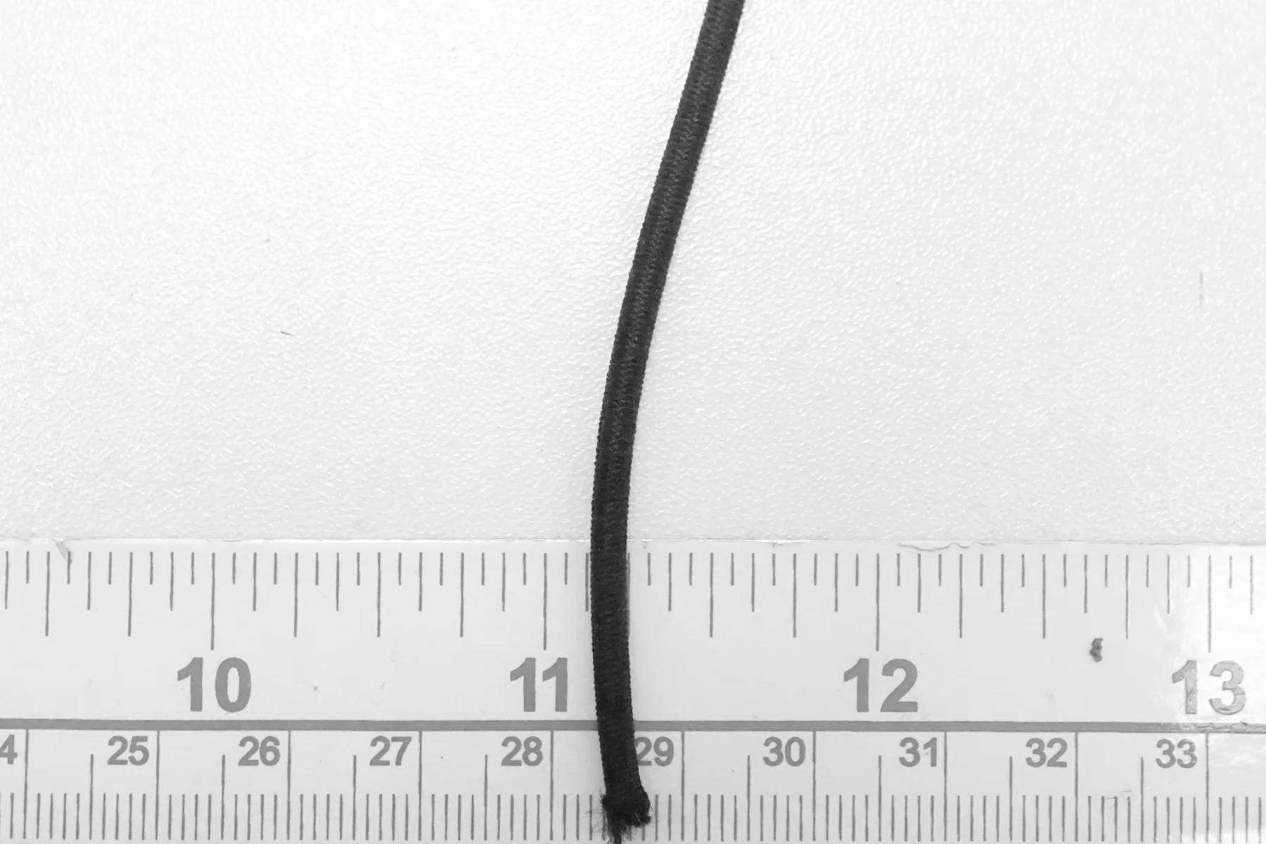 Классическая шляпная резинка черного цвета . Размер - 3 мм. Используется при пошиве масок, головных уборов, одежды, сумок и т.д.