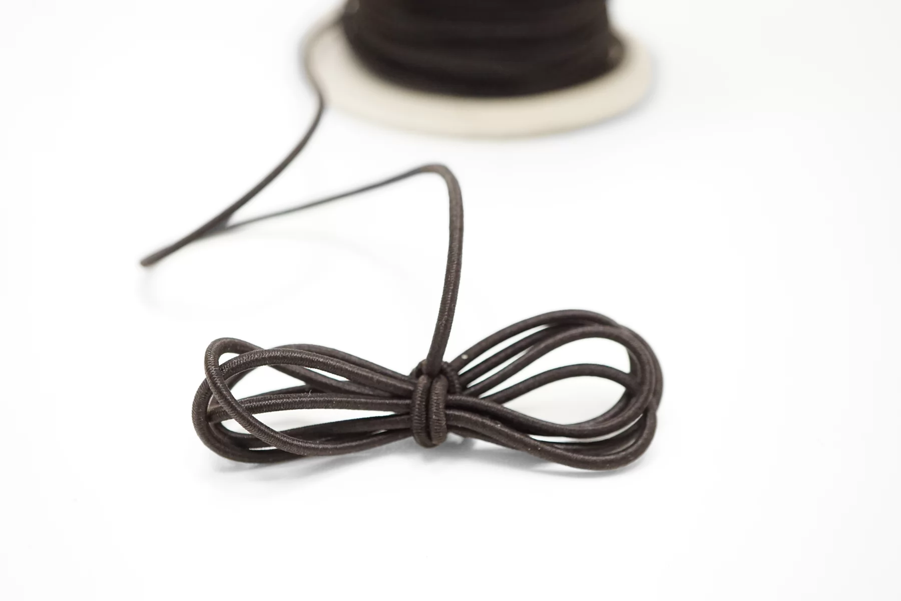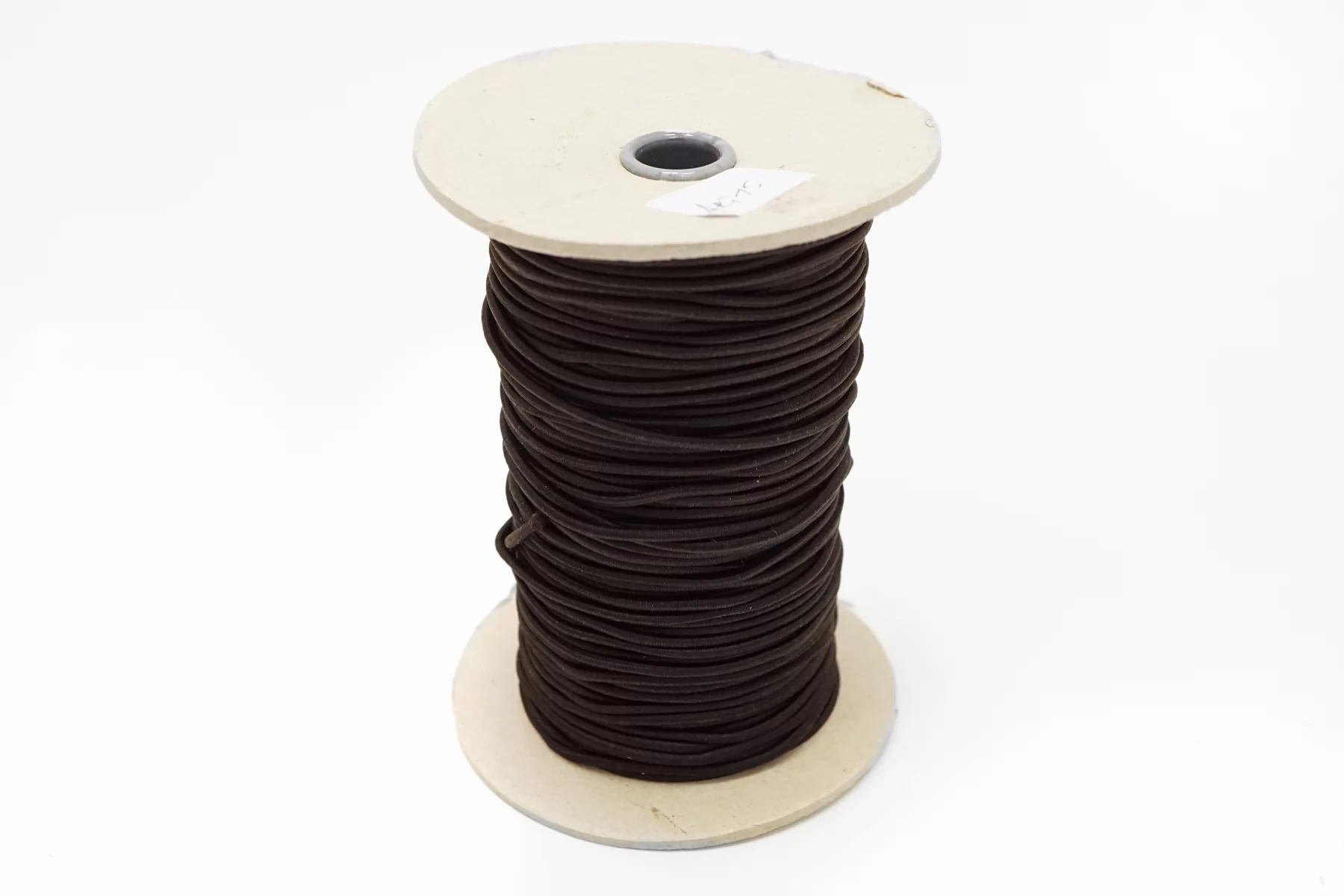Классическая шляпная резинка темно-коричневого цвета . Размер - 2 мм. Используется при пошиве масок, головных уборов, одежды, сумок и т.д.