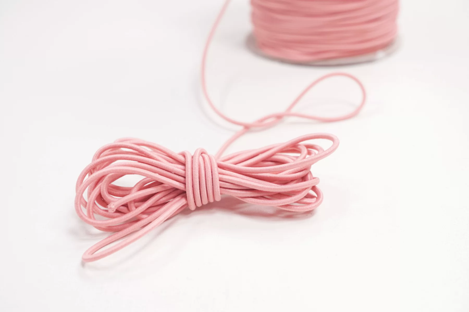 Классическая шляпная резинка нежно-розового цвета. Размер - 2 мм. Используется при пошиве масок, головных уборов, одежды, сумок и т.д.