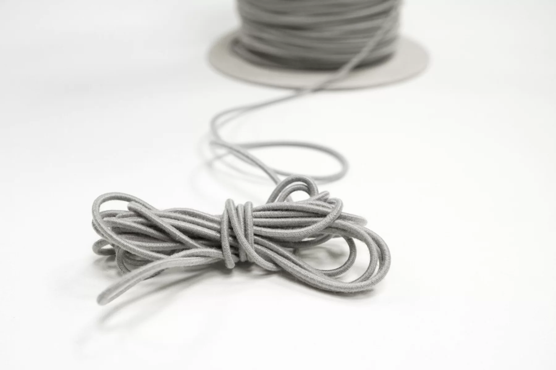 Классическая шляпная резинка серого цвета. Размер - 2 мм. Используется при пошиве масок, головных уборов, одежды, сумок и т.д.