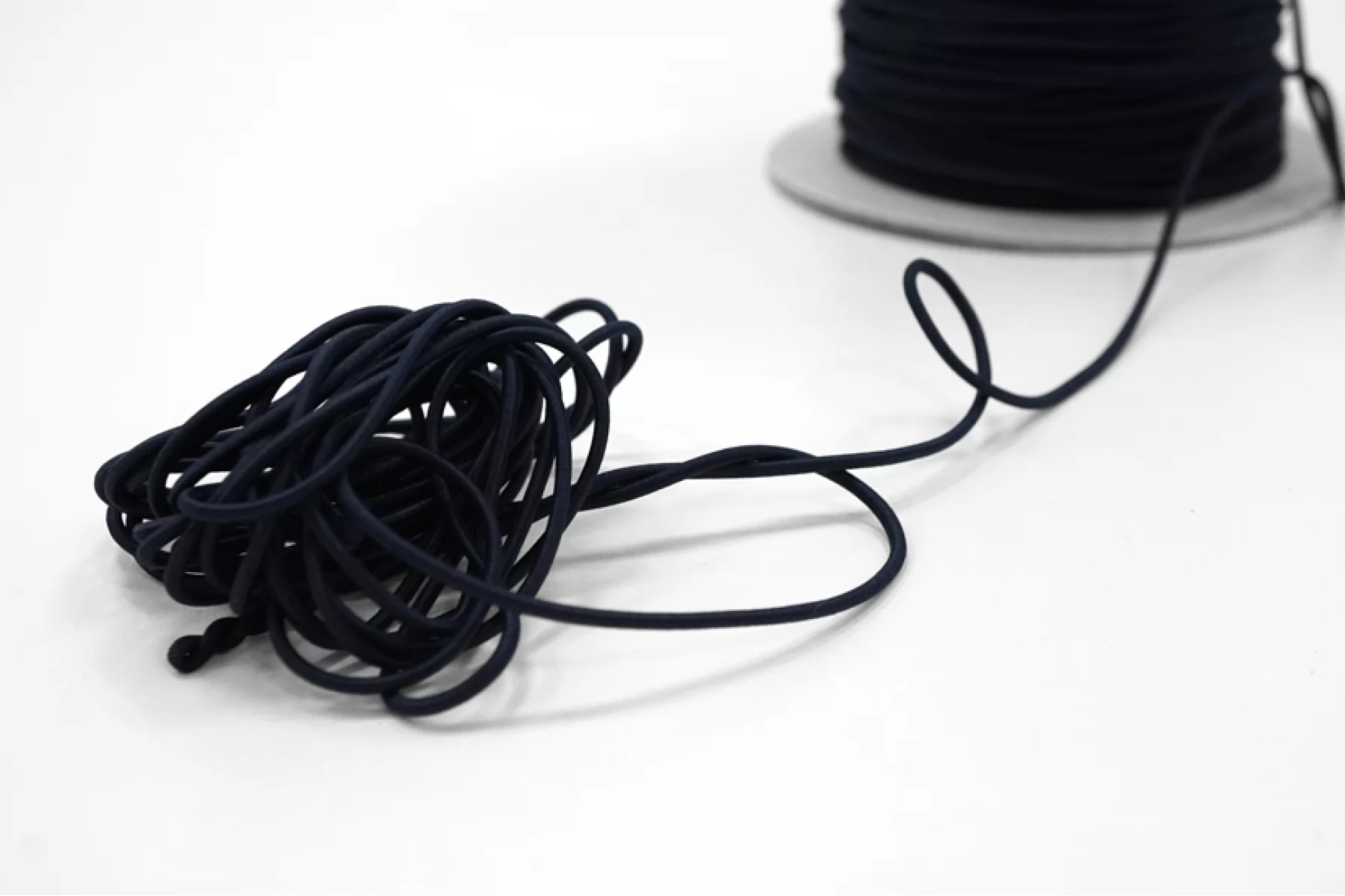 Классическая шляпная резинка темно-синего цвета. Размер - 3 мм. Используется при пошиве масок, головных уборов, одежды, сумок и т.д.