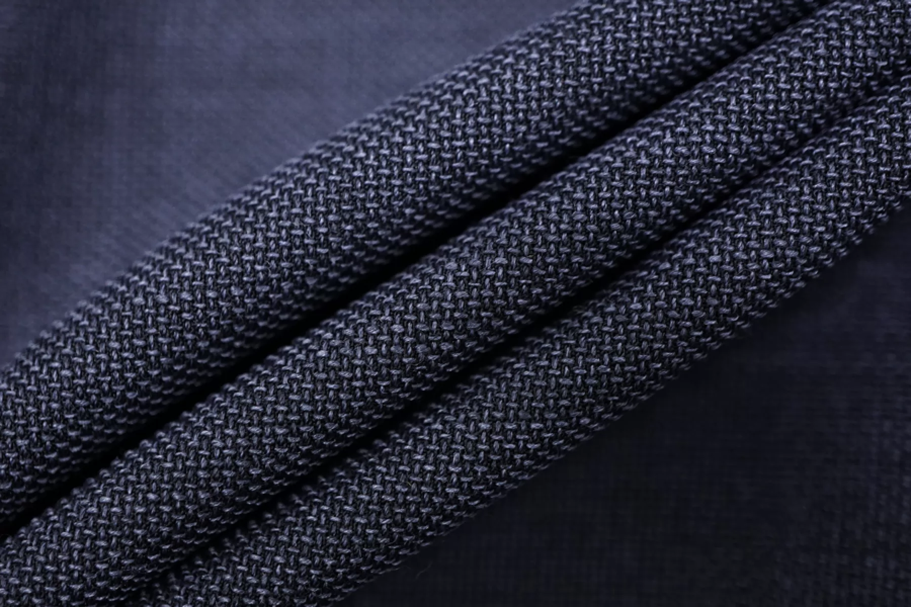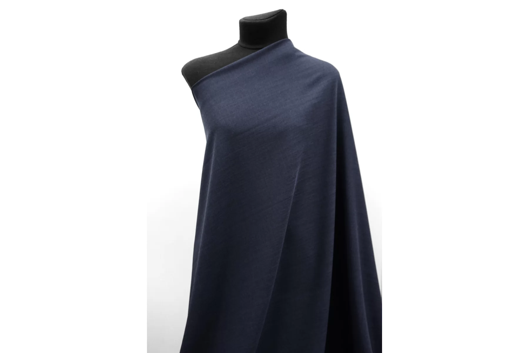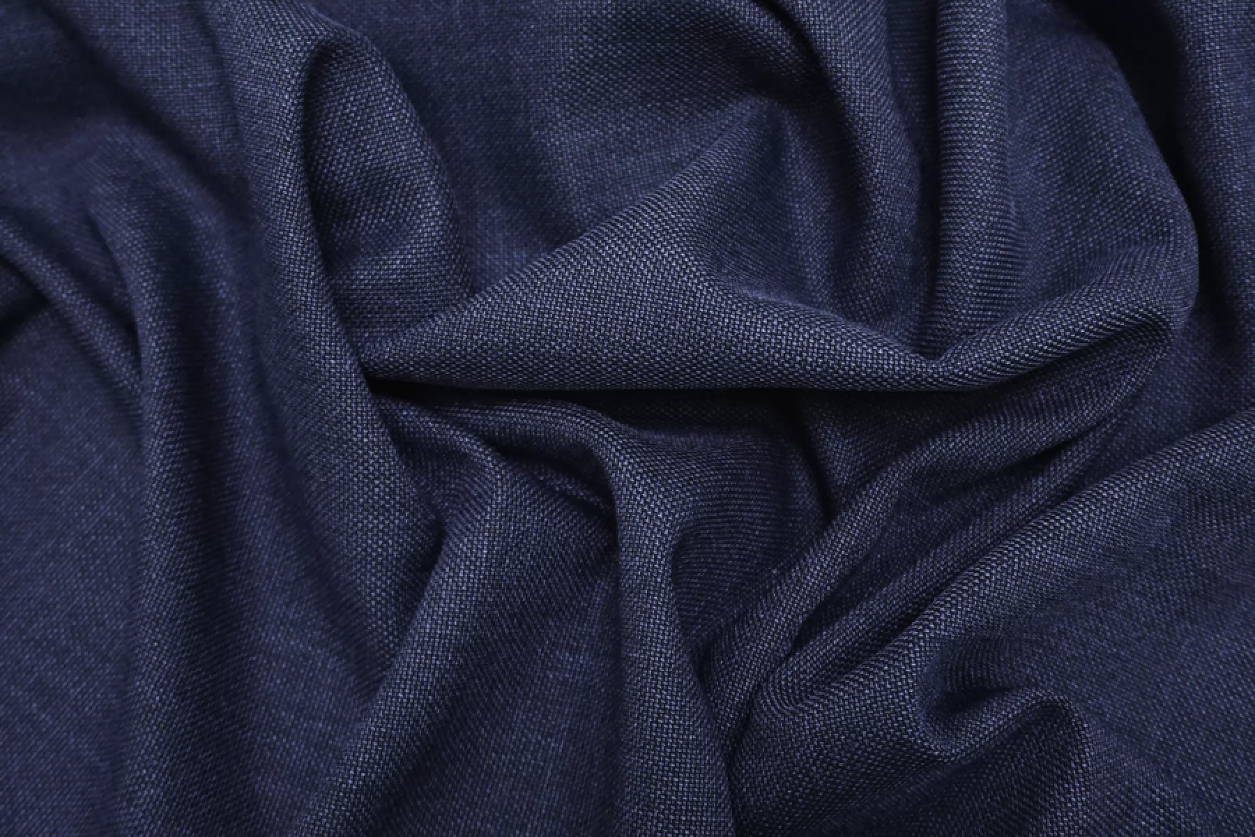 Костюмно-плательная вирджинская шерсть-рогожка из нитей тёмно-синего и синего цвета. Материал наощупь шероховатый, чувствуется фактурность. Форму не держит. С очень красивой пластикой, хорошо драпируется. Немного просвечивает. Отличный вариант на платья, брюки, греющие рубашки. При необходимости используйте подкладочный материал. Уход деликатный. Учитывайте усадску.