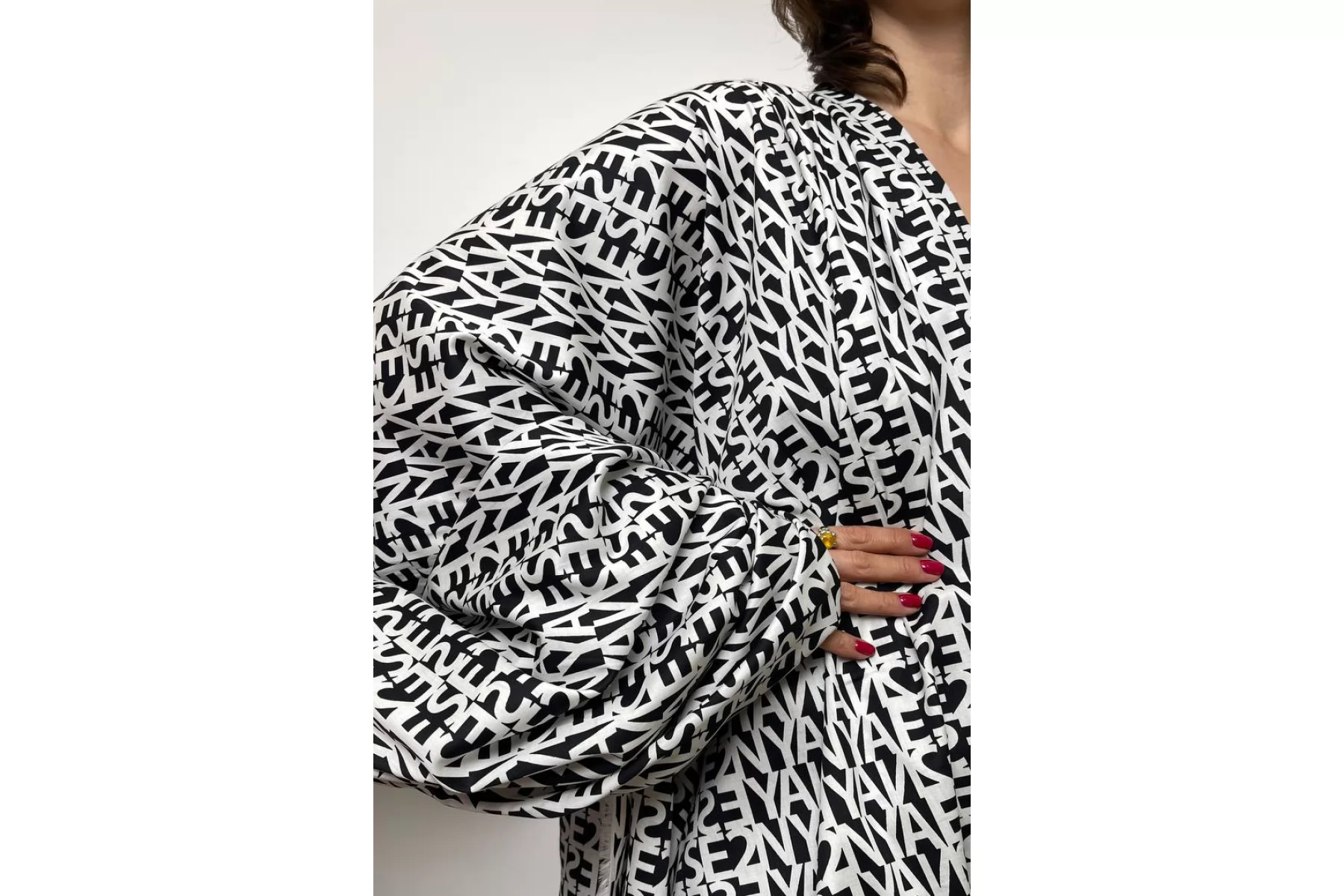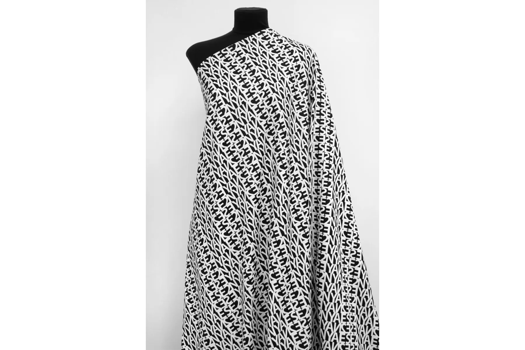Итальянский рубашечный хлопок с абстрактным, буквенным принтом черно-белого цвета. Материал гладкий, мягкий, тонкий. Мнется. Немного просвечивает силуэт, если смотреть на просвет. Не тянется. Отлично драпируется и хорошо держит форму. Прекрасный вариант на яркие, эффектные рубашки, платья, юбки и не только. Материал дает усадку.