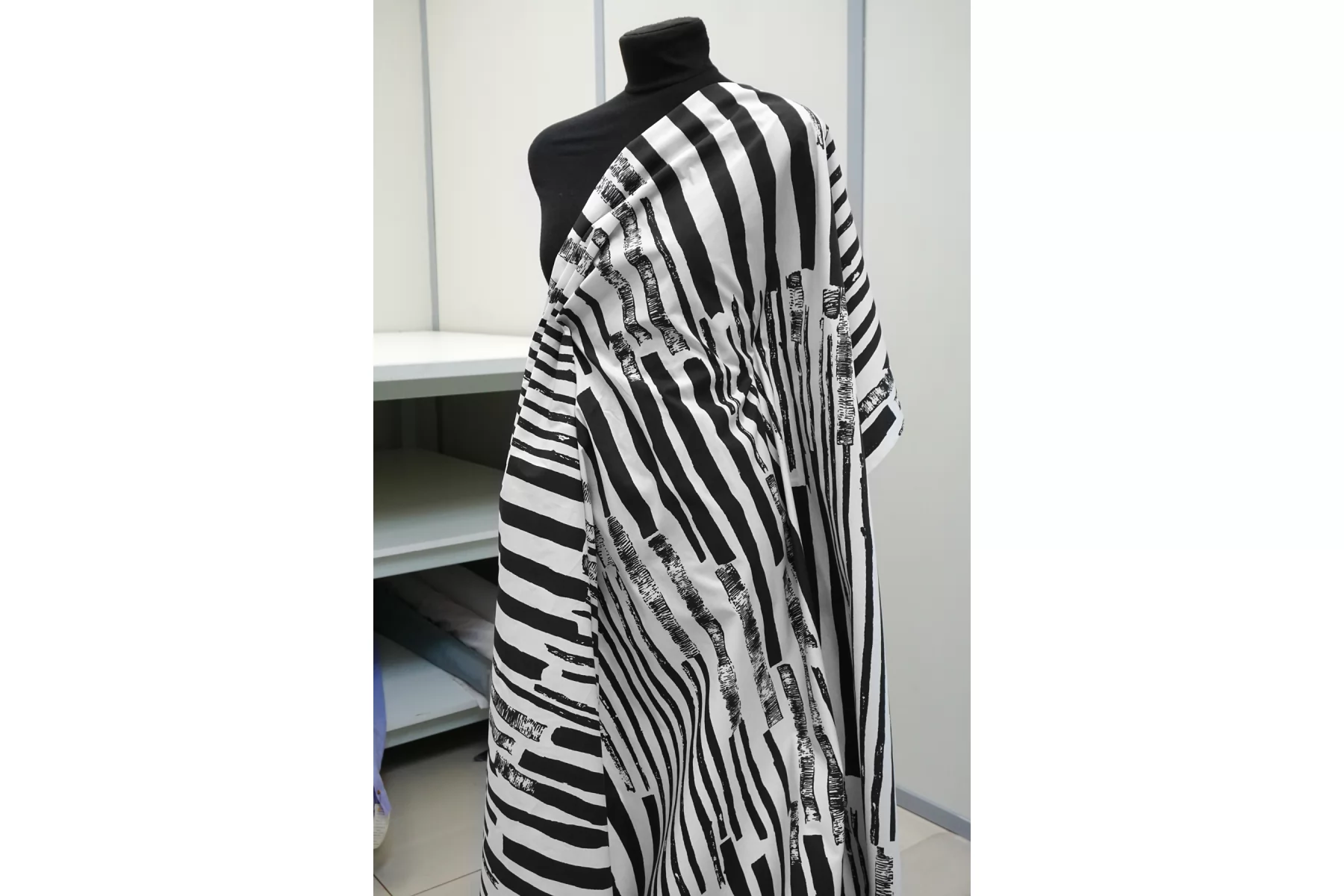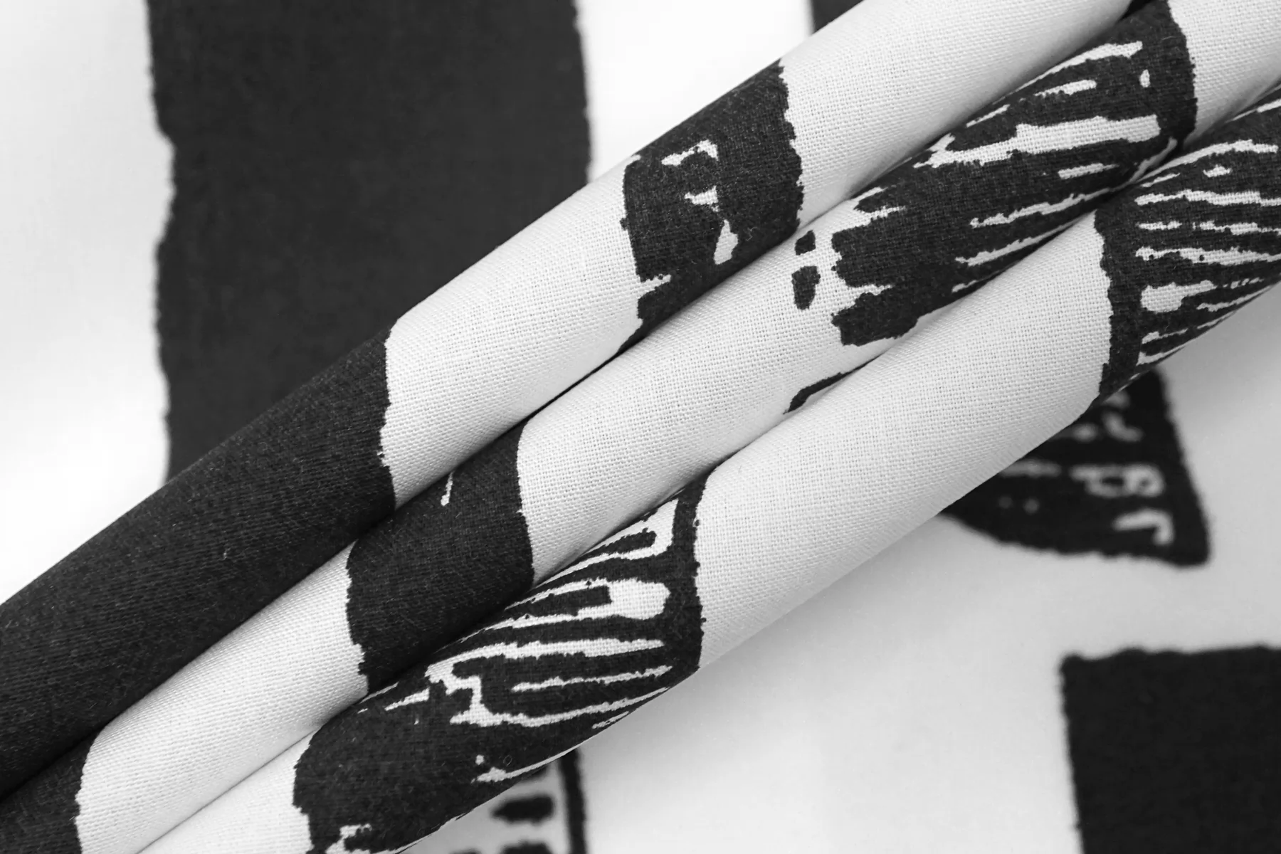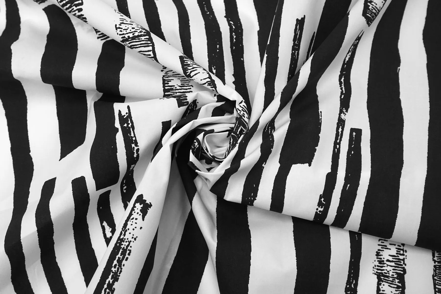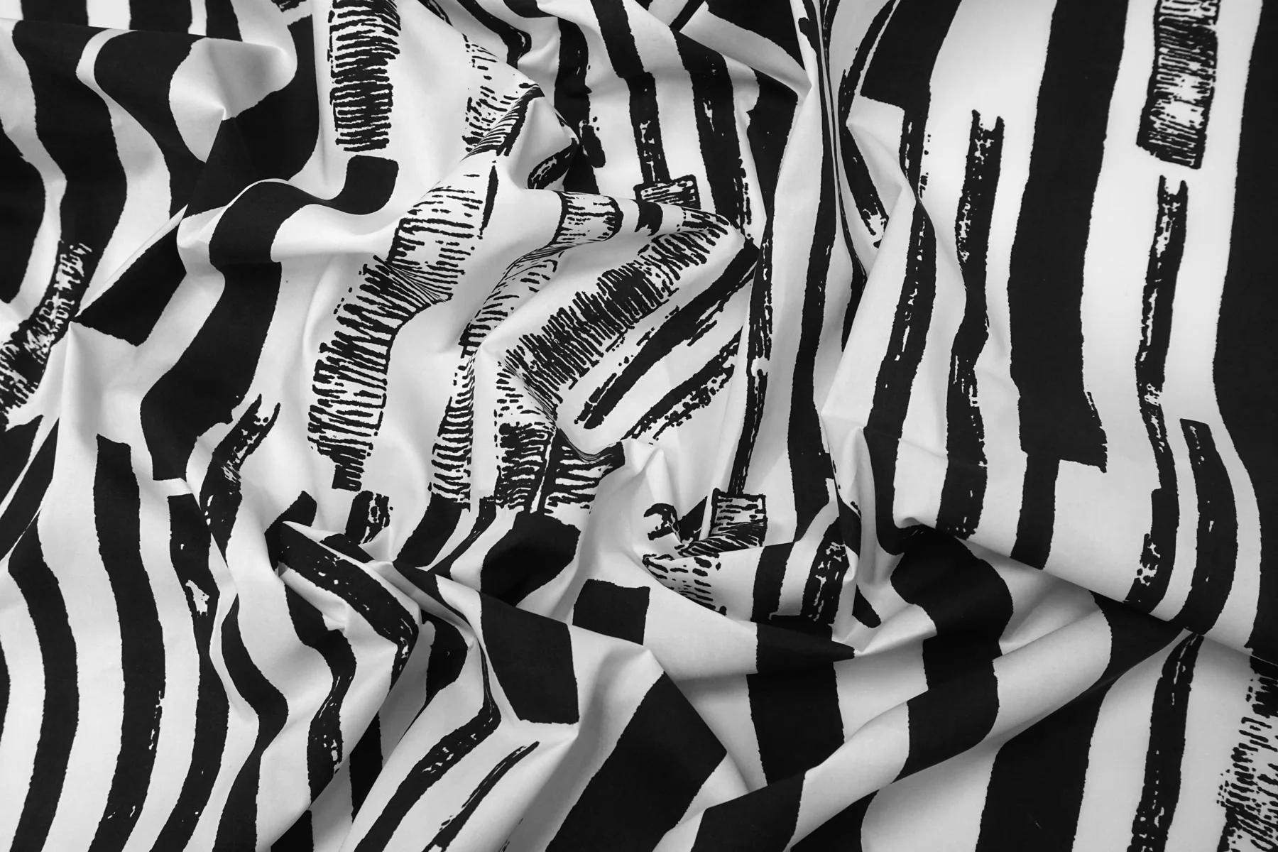 Рубашечно-плательный хлопок с чёрно-белым принтом. Плетение полотняное. Тактильно мягкий, гладкий. Шуршащий и похрустывающий. Пластичный. Хорошо драпируется, при этом держит форму. Просвечивает немного. Не тянется. Сминается. Прекрасный вариант на рубашки, юбки, платья. При необходимости используйте подкладочный материал.