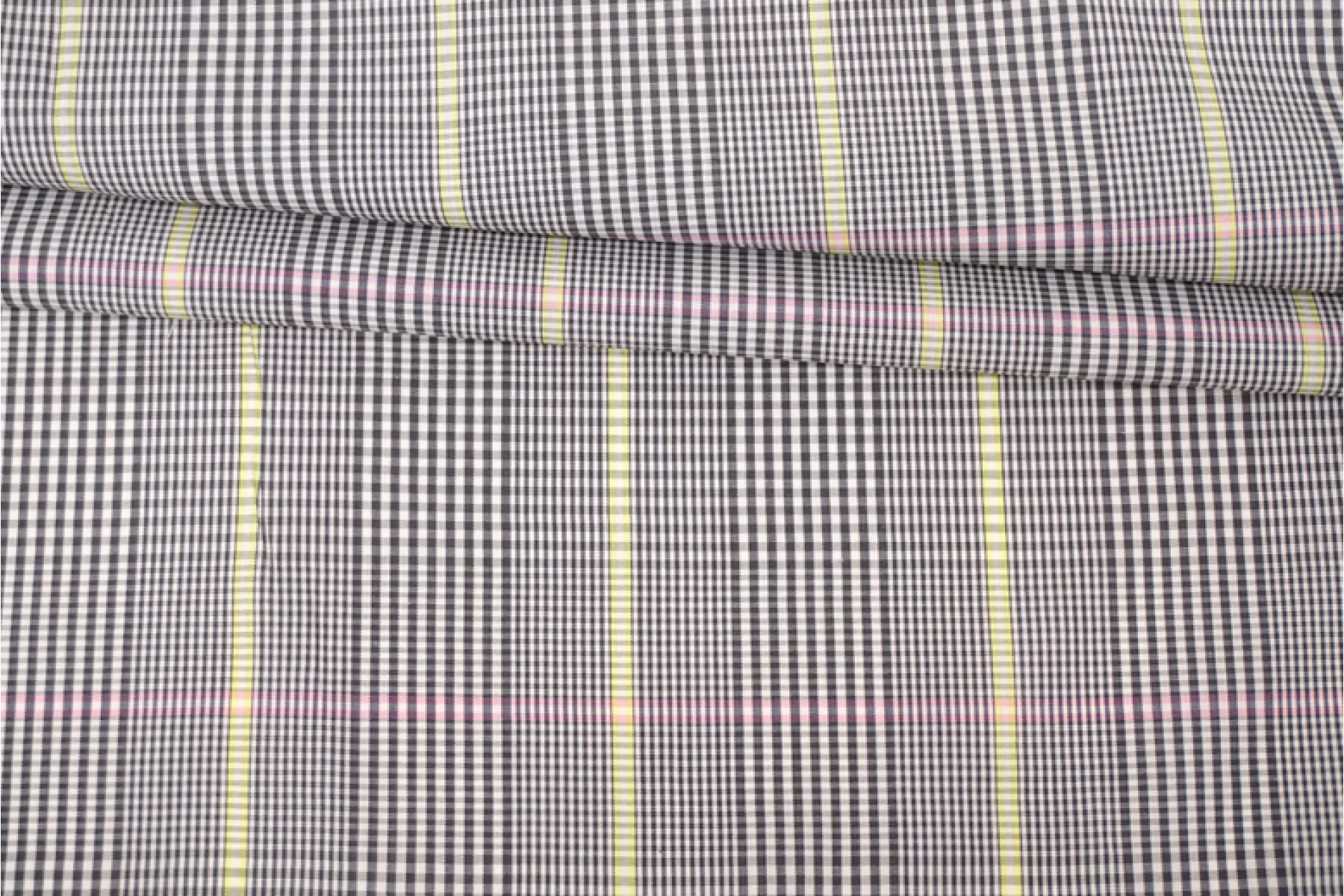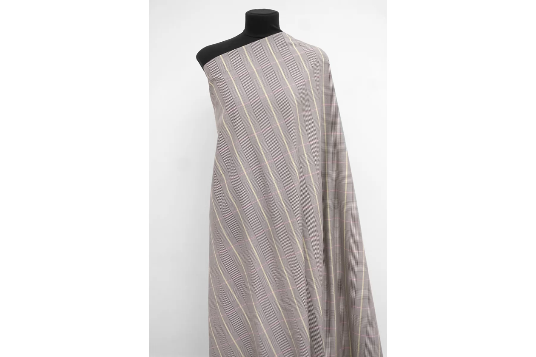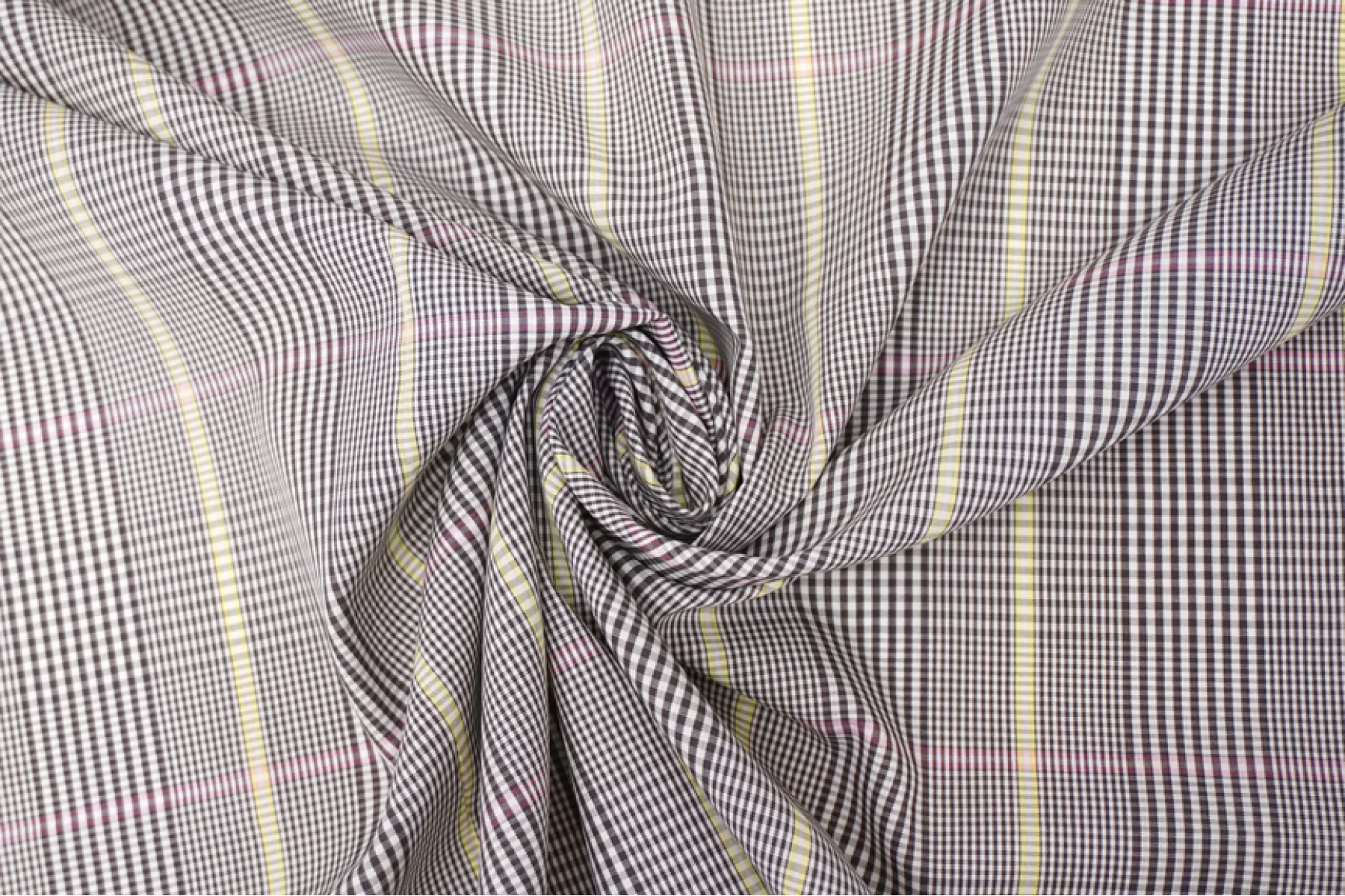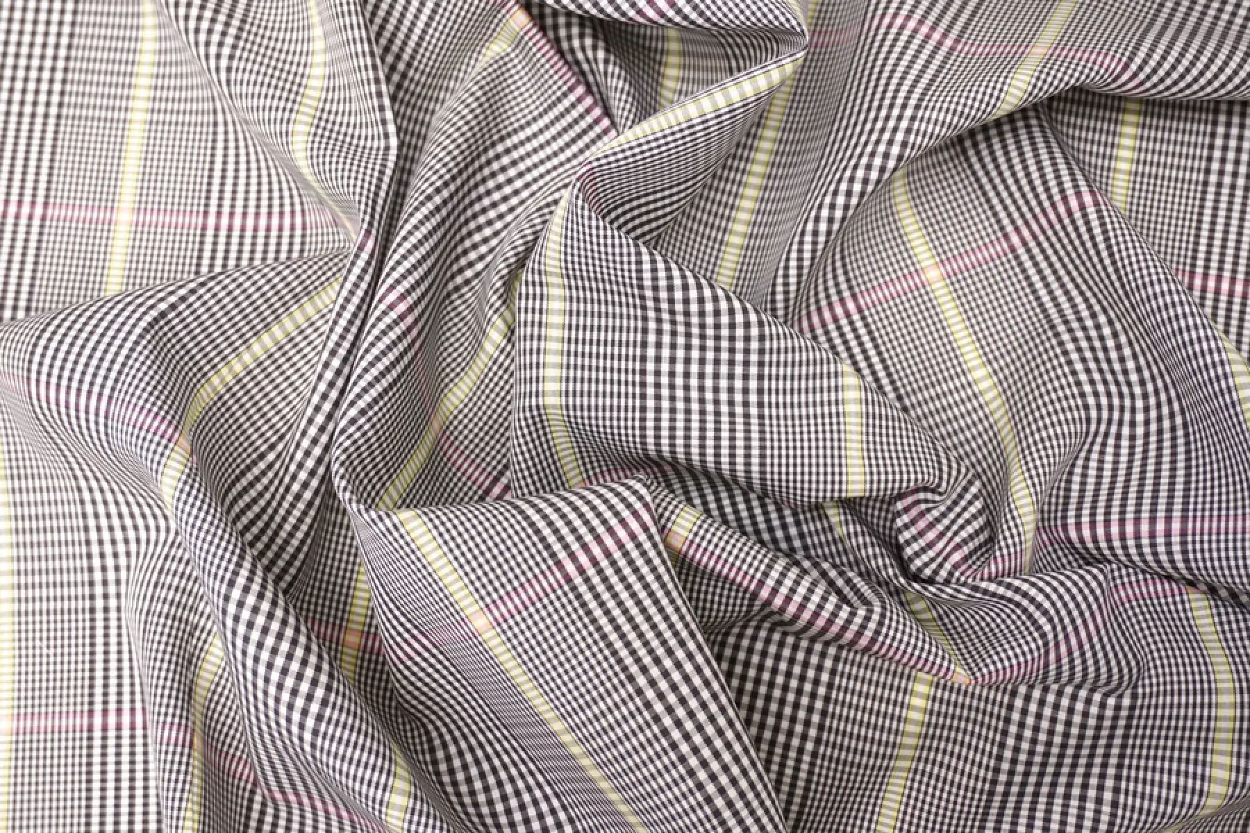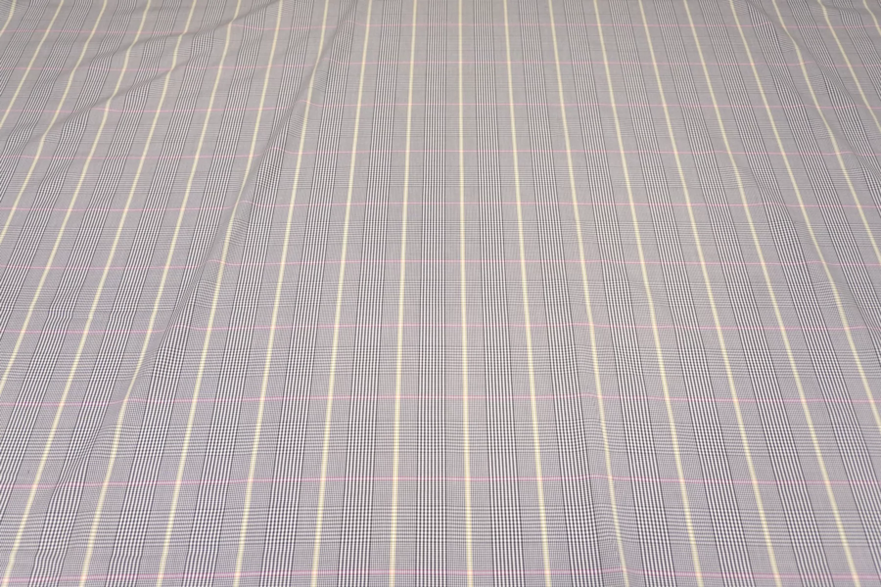 Итальянский рубашечный хлопок ETRO серого цвета с желтыми и розовыми полосами. Материал гладкий, мягкий, тонкий, чувствуется плетение наощупь. Немного мнется. Не просвечивает. Не тянется. Отлично драпируется и хорошо держит форму. Прекрасный вариант на рубашки, юбки, платья и не только. Материал дает усадку.