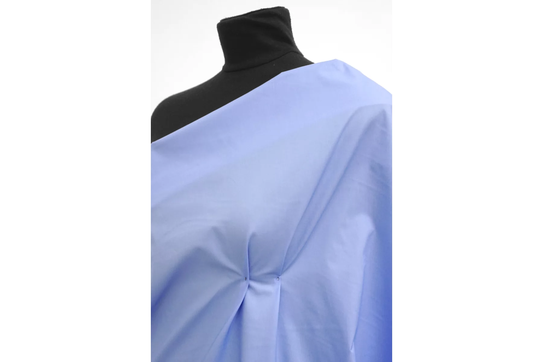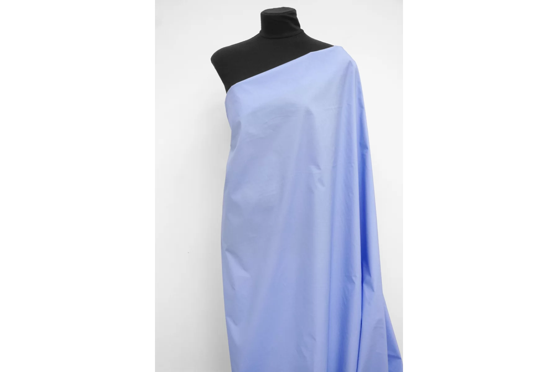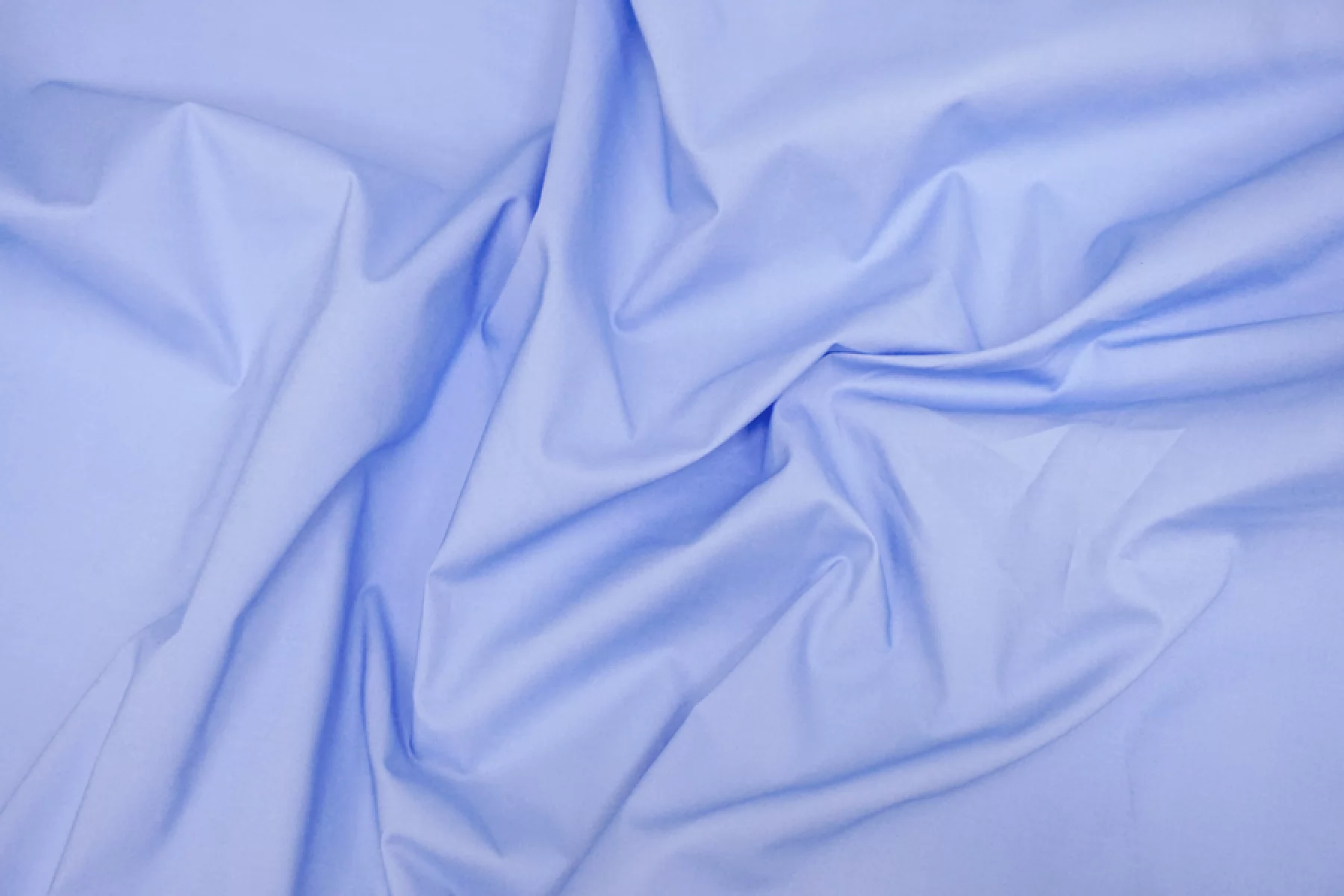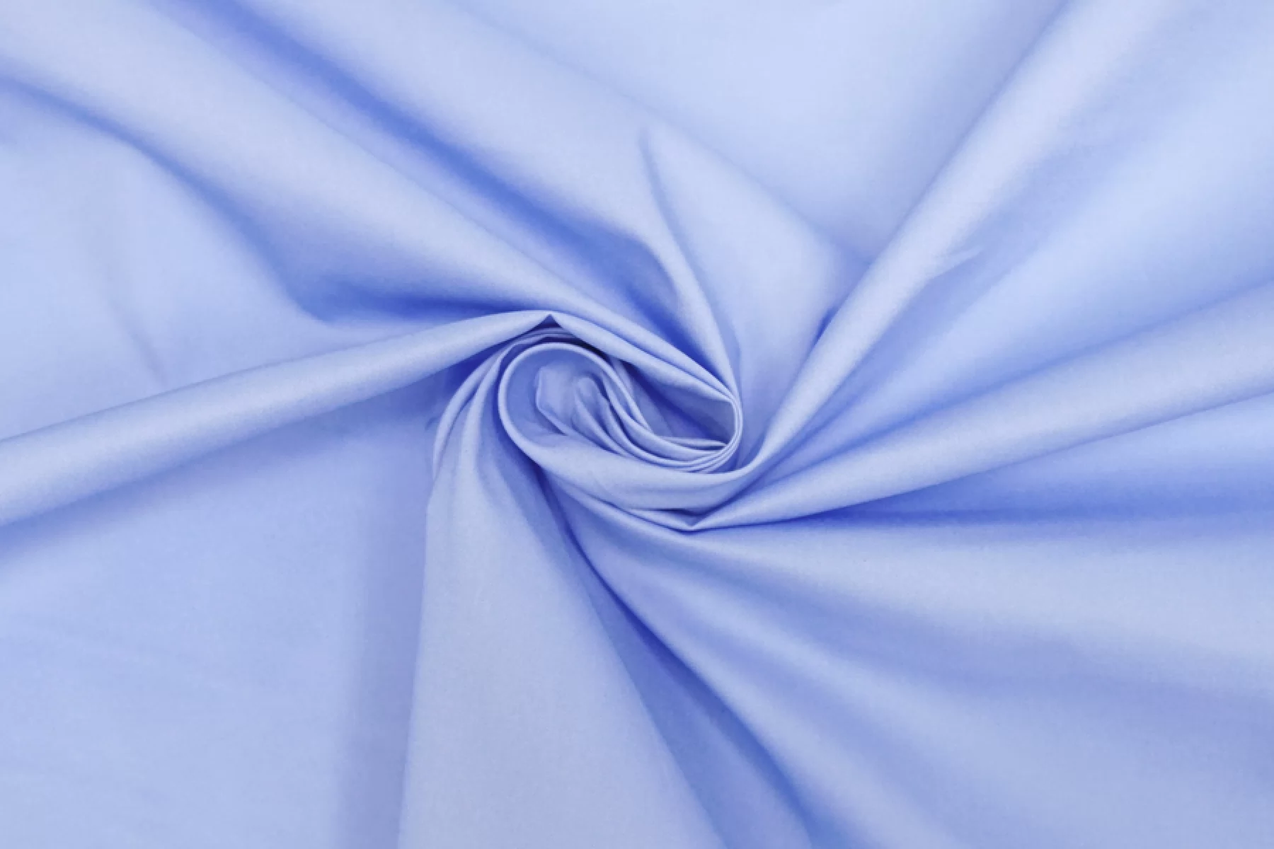 Рубашечный хлопок полотняного плетения в голубом оттенке. Гладкий, тонкий и приятный наощупь. С легким лоском. Не тянется. Просвечивает. Хорошо держит форму. Мнется. Шьем платья, юбки, рубашки и не только. При необходимости используйте подкладочный материал.