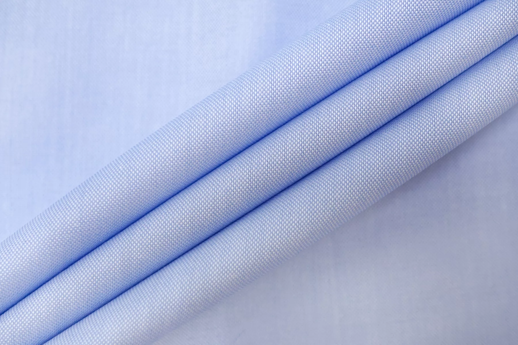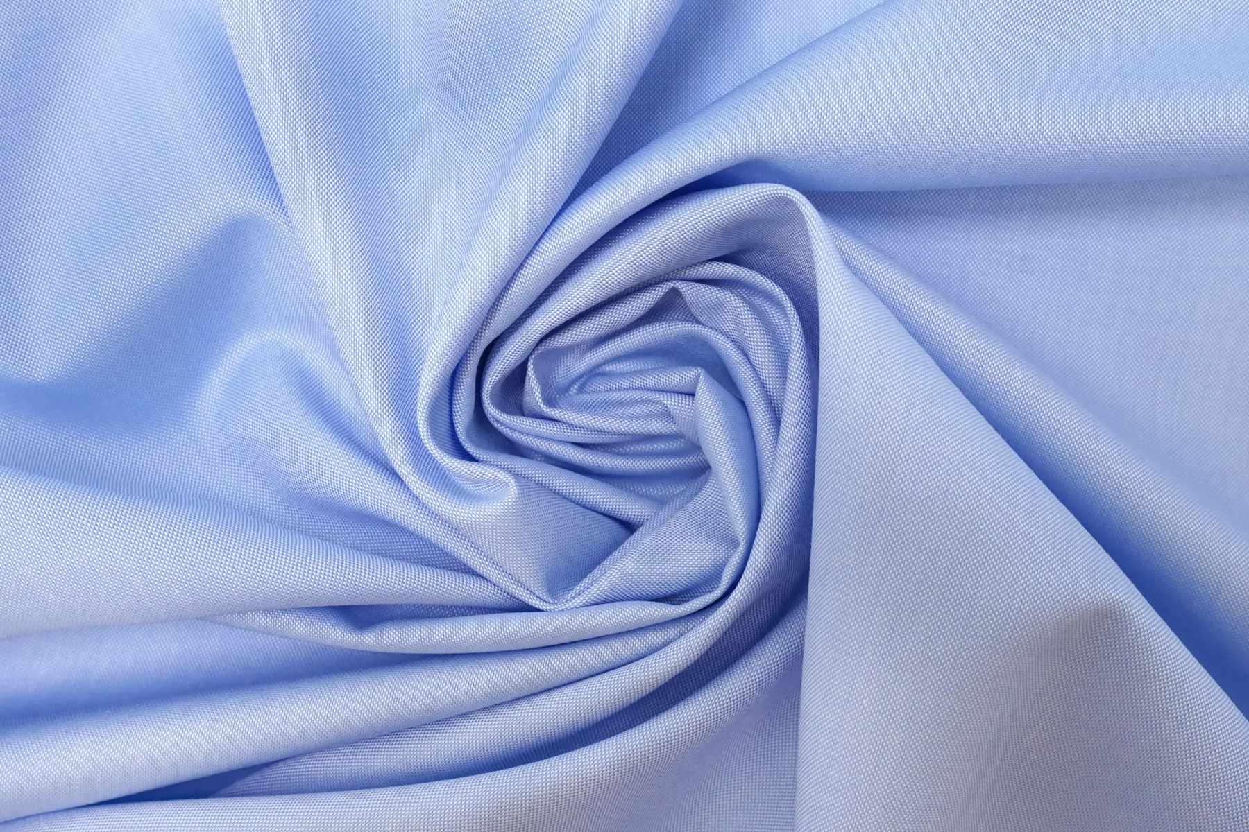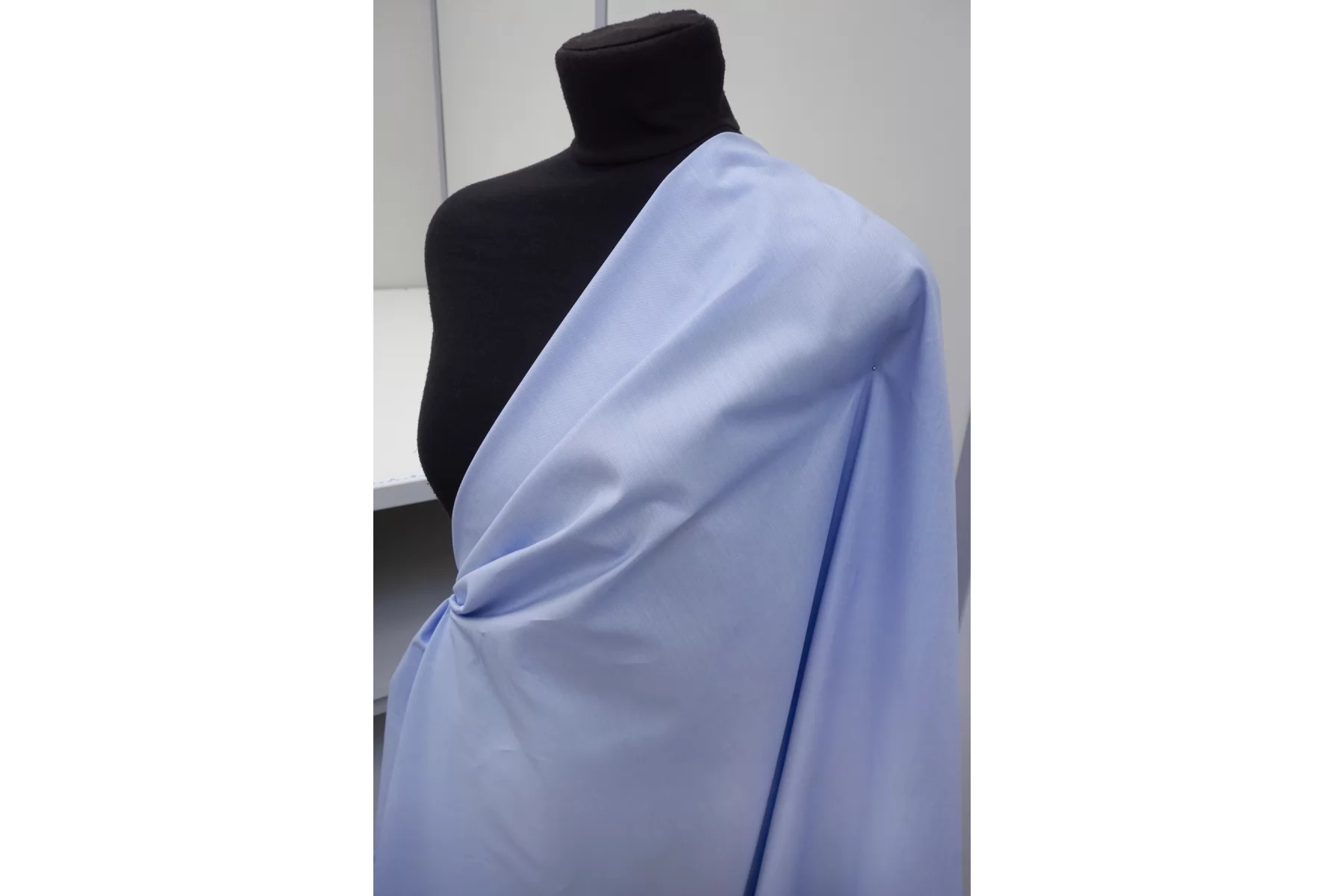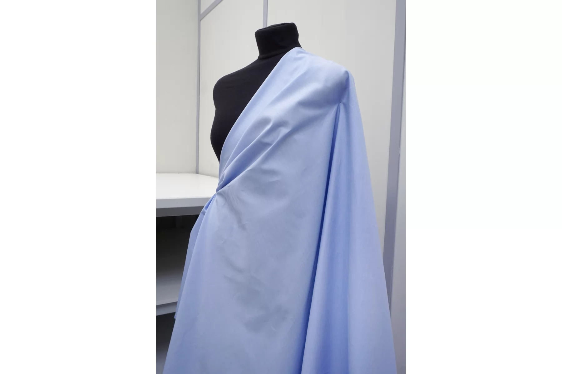 Прекрасный рубашечный хлопок переплетения нитей голубого и белого цвета. Гладкий, приятный. С красивым легким лоском. Немного тянется. Сминается. Слегка светит силуэт на просвет. Хорошо драпируется и немного держит форму. Прекрасный вариант на рубашки, платья, детскую одежду и не только. Учитывайте возможную усадку.