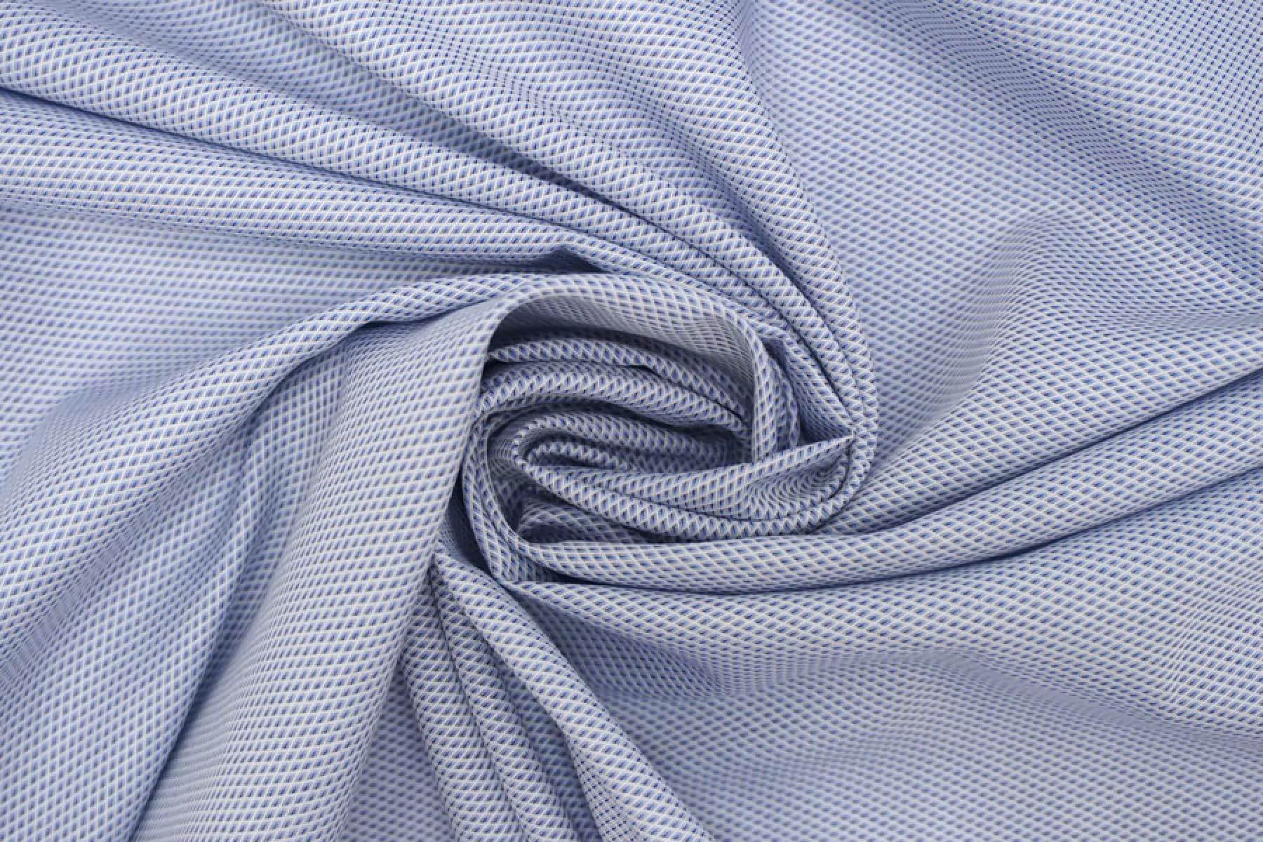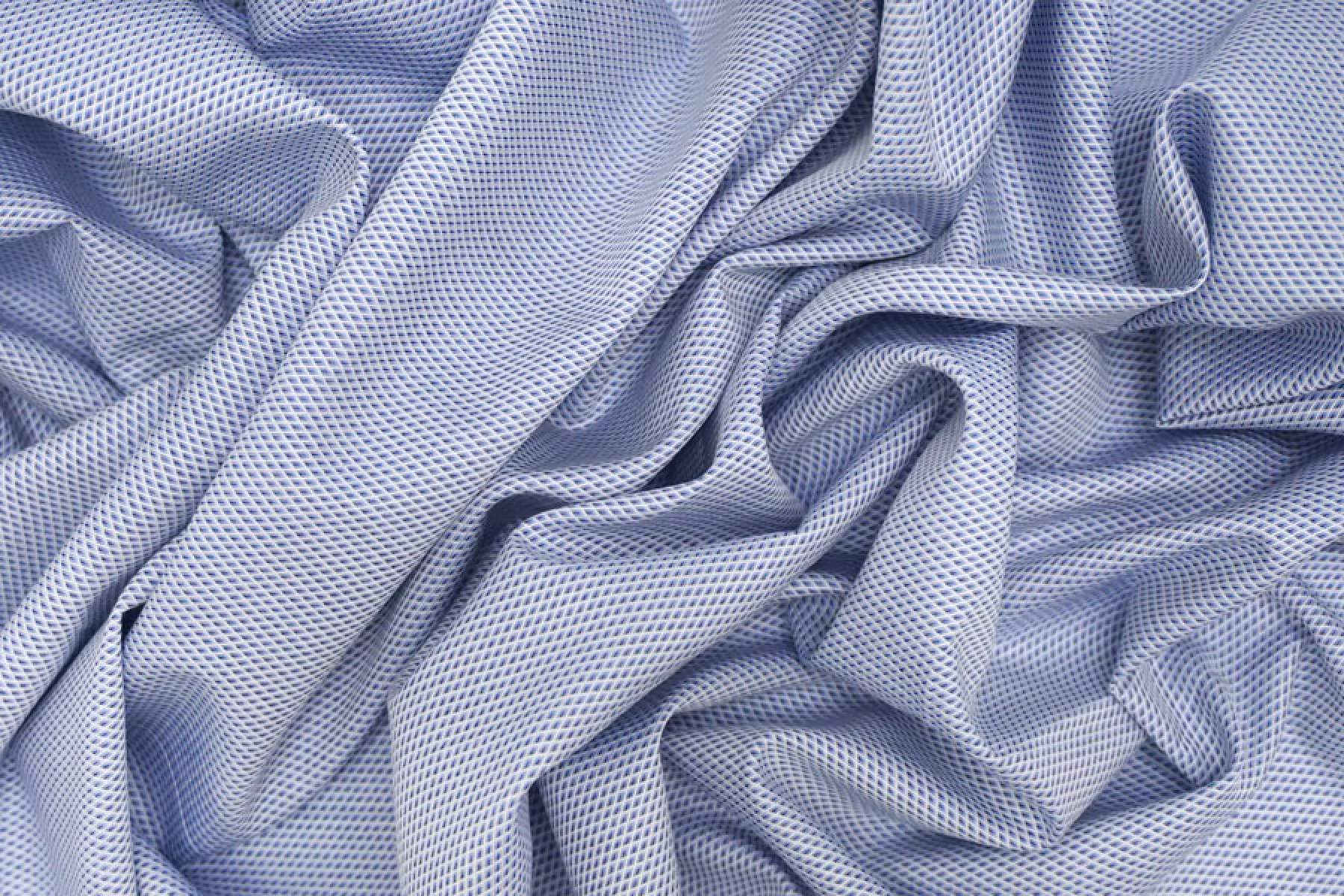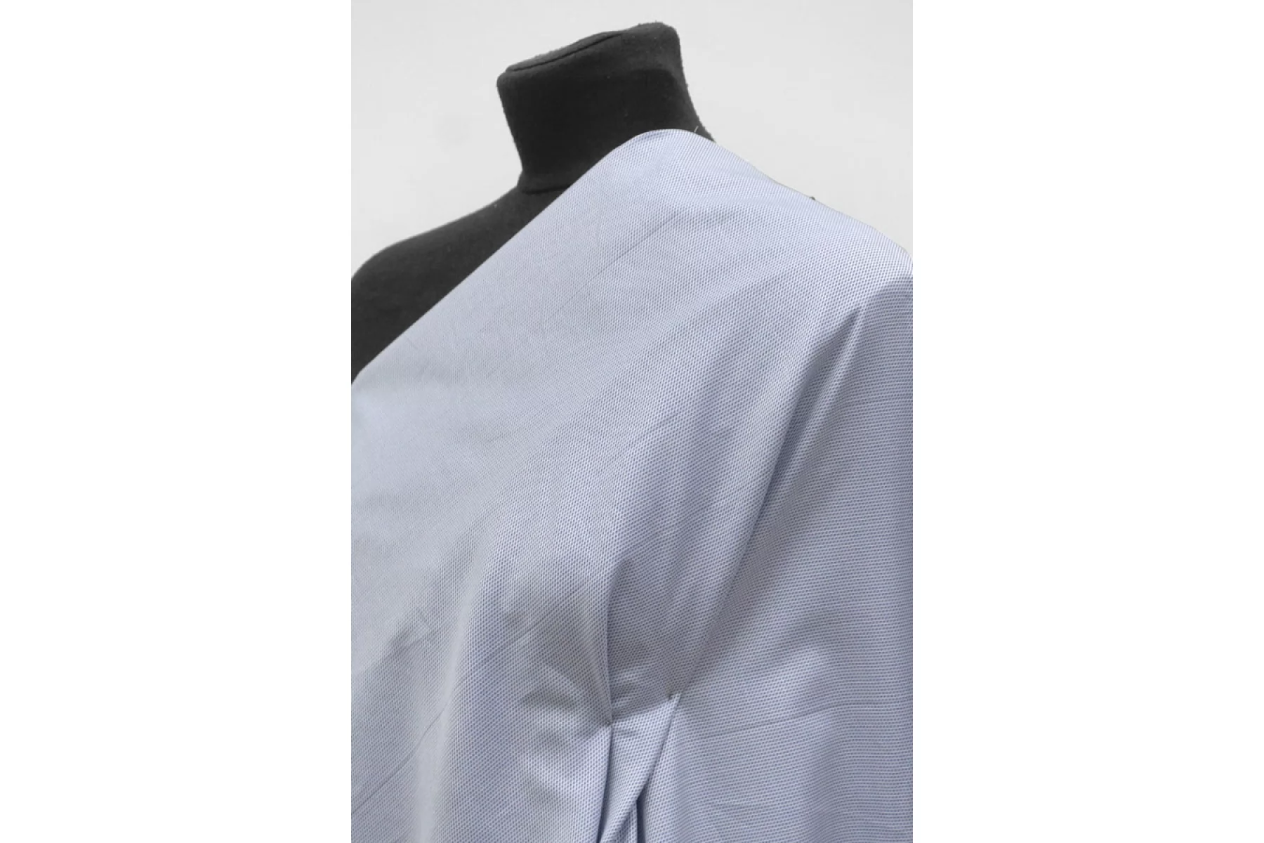 ВНИМАНИЕ!! Полоса 57 см от кромки см. фото. Итальянский рубашечный хлопок Gucci, нити синего и белого цвета, создают мелкий узор. Материал тонкий, мягкий, слегка фактурный тактильно. Мнется,слегка просвечивает силуэт. Немного шурщащий. Не тянется, пластичный, немного держит форму. Прекрасный вариант на рубашки, юбки, платья. Материал дает усадку.