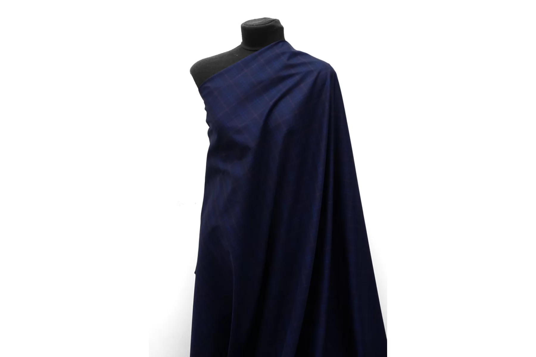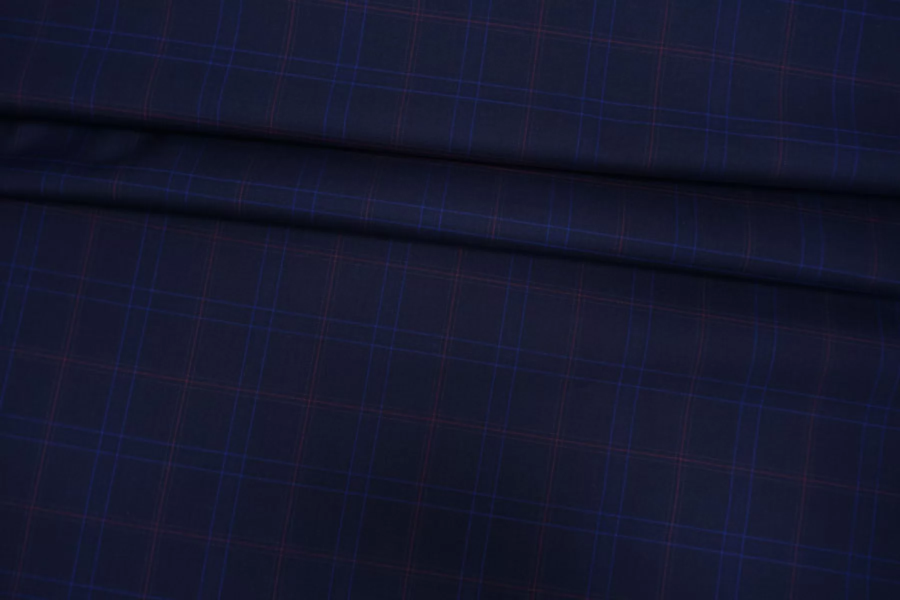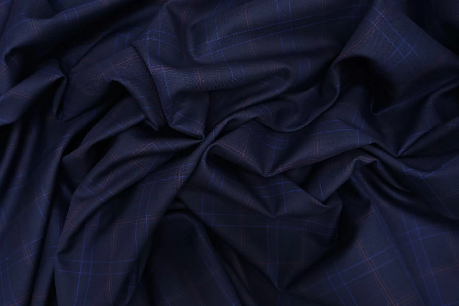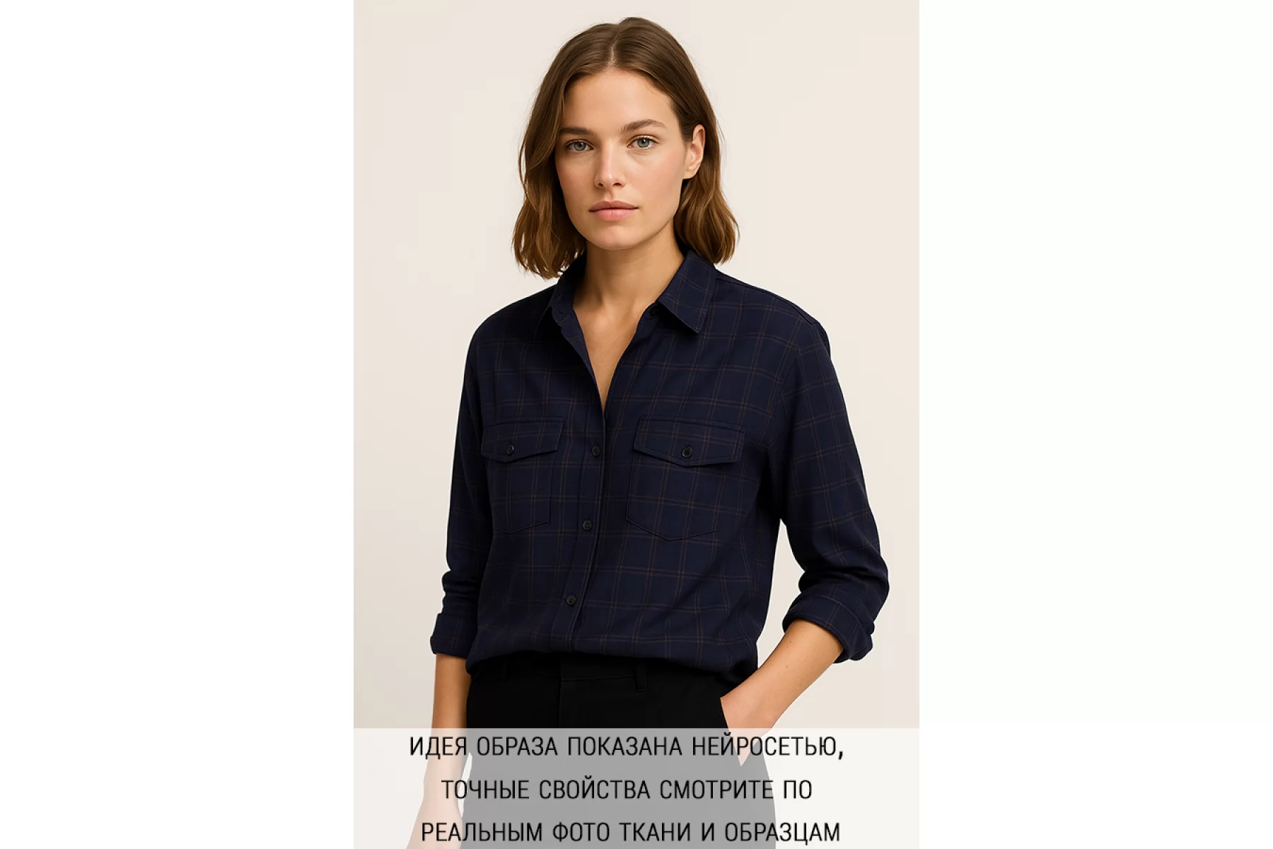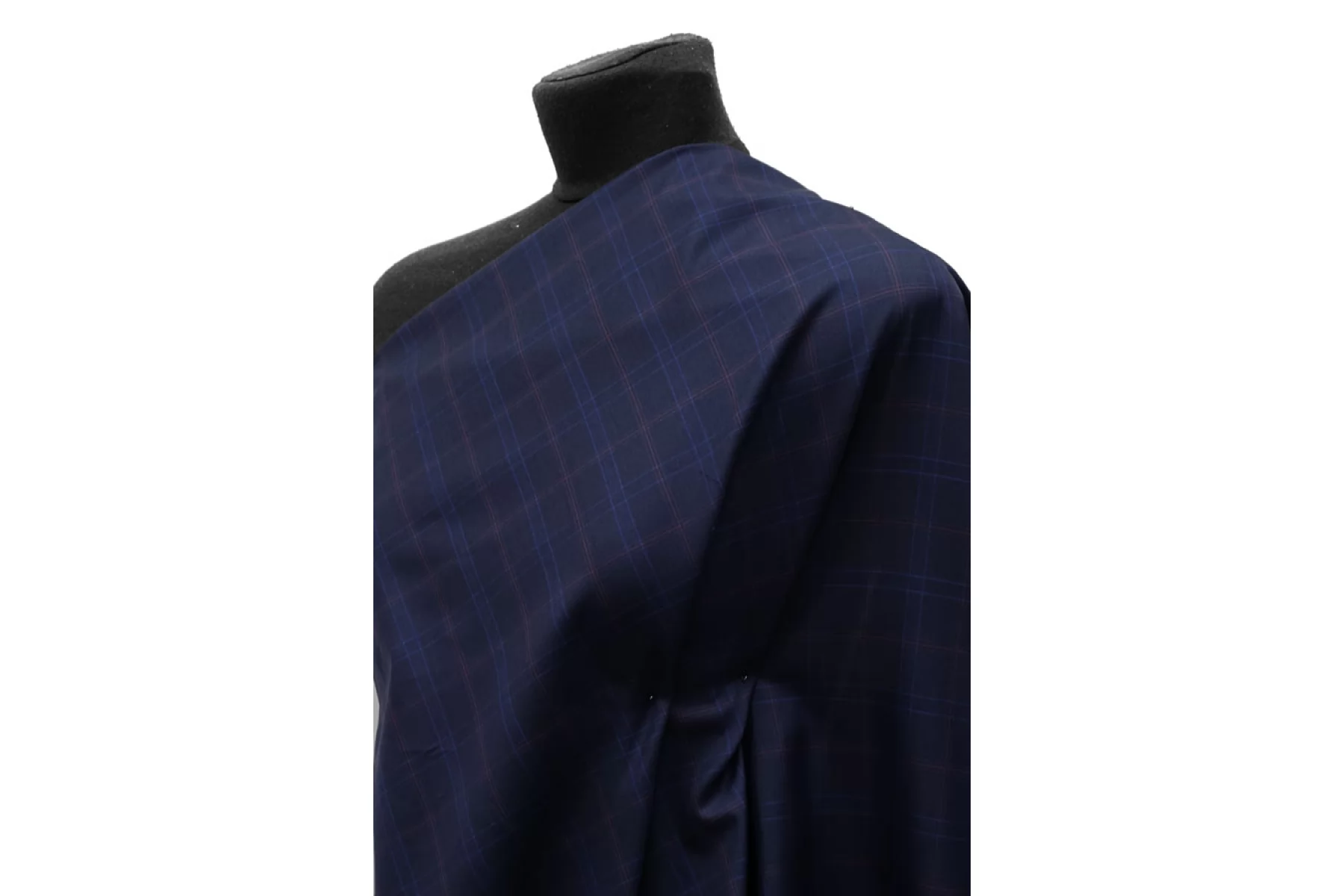 Итальянский рубашечный хлопок от Gucci, узор-клетка из нитей синего и ягодного цвета на темно-синем фоне. Материал гладкий, мягкий, тонкий, легкий. Немного мнется, просвечивает в один слой. Не тянется, очень пластичный, форму практически не держит. Прекрасный вариант на рубашки, юбки, платья. Материал дает усадку.