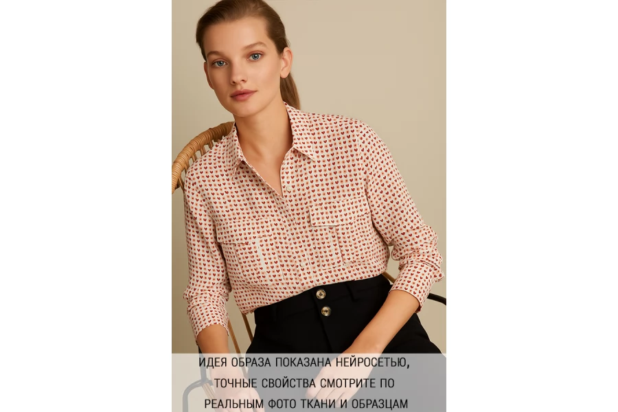 Итальянский рубашечный хлопок с мелким ритмичным принтом, напоминающим стилизованные листики (красный и голубой цвет), на белом фоне (с розоватым, тёплым подтоном). Материал мягкий, легкий, гладкий. Немного мнется. Слегка просвечивает силуэт. Не тянется. Отлично драпируется и немного держит форму. Прекрасный вариант на рубашки, юбки, платья. При необходимости используйте подкладку. Материал дает усадку.