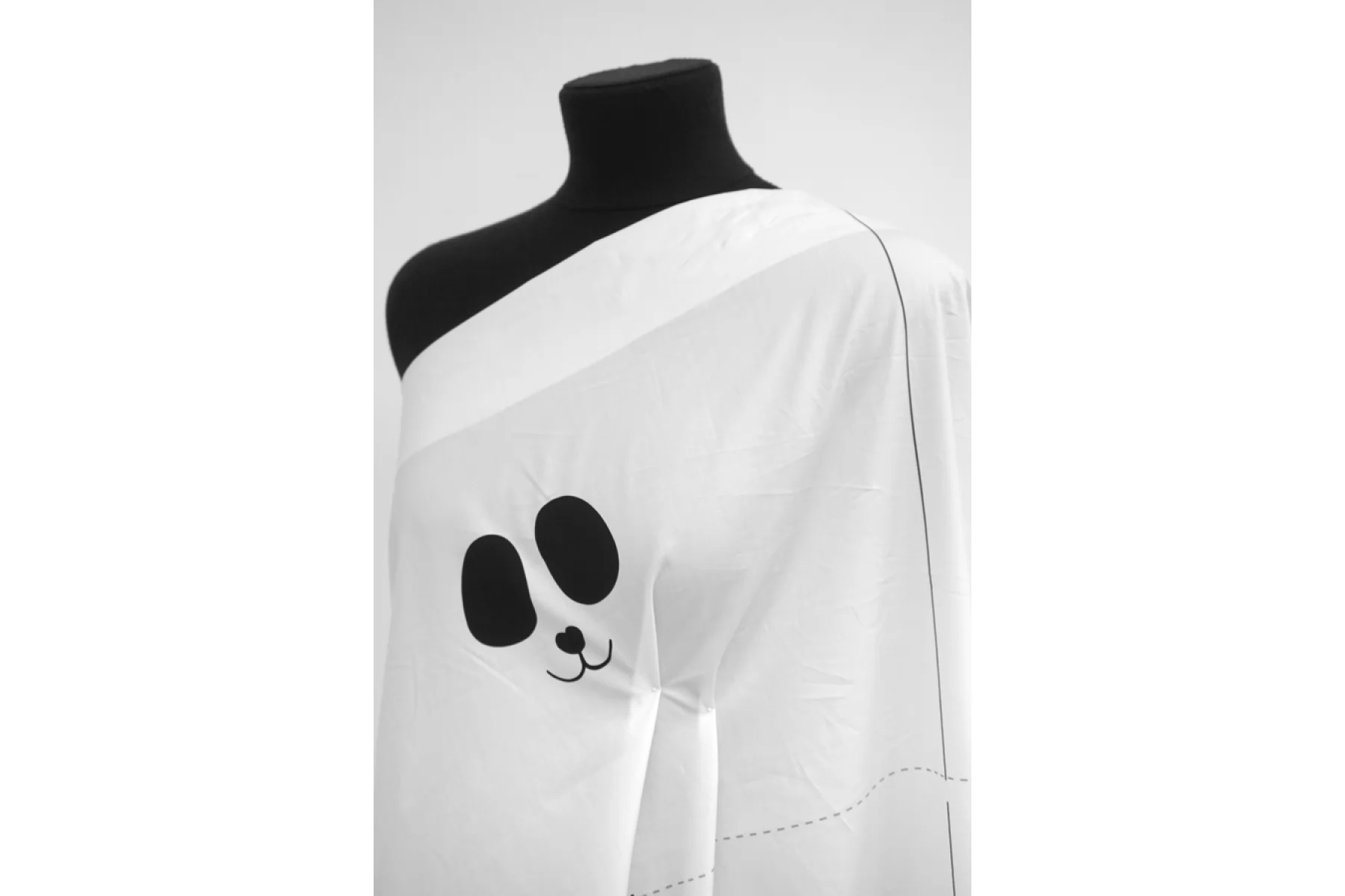 ВНИМАНИЕ! Ткань купонная, длина купона 39 см, цена за купон - 581 руб. Необычный рубашечный хлопок, который можно использовать на карманы. Сам материал белого цвета, принт нанесен черным цветом в виде мордочки панды. Ширина материала делится на 3 ячейки: 2 с мордочками, 1 - пустая. Тактильно материал тонкий, но плотный, мягкий и приятный. Слегка просвечивает силуэт. Не тянется, но отлично драпируется. Неплохо держит форму. Классно будет смотреться в вариантах отделки изделий на карманы и на любые творческие задумки.