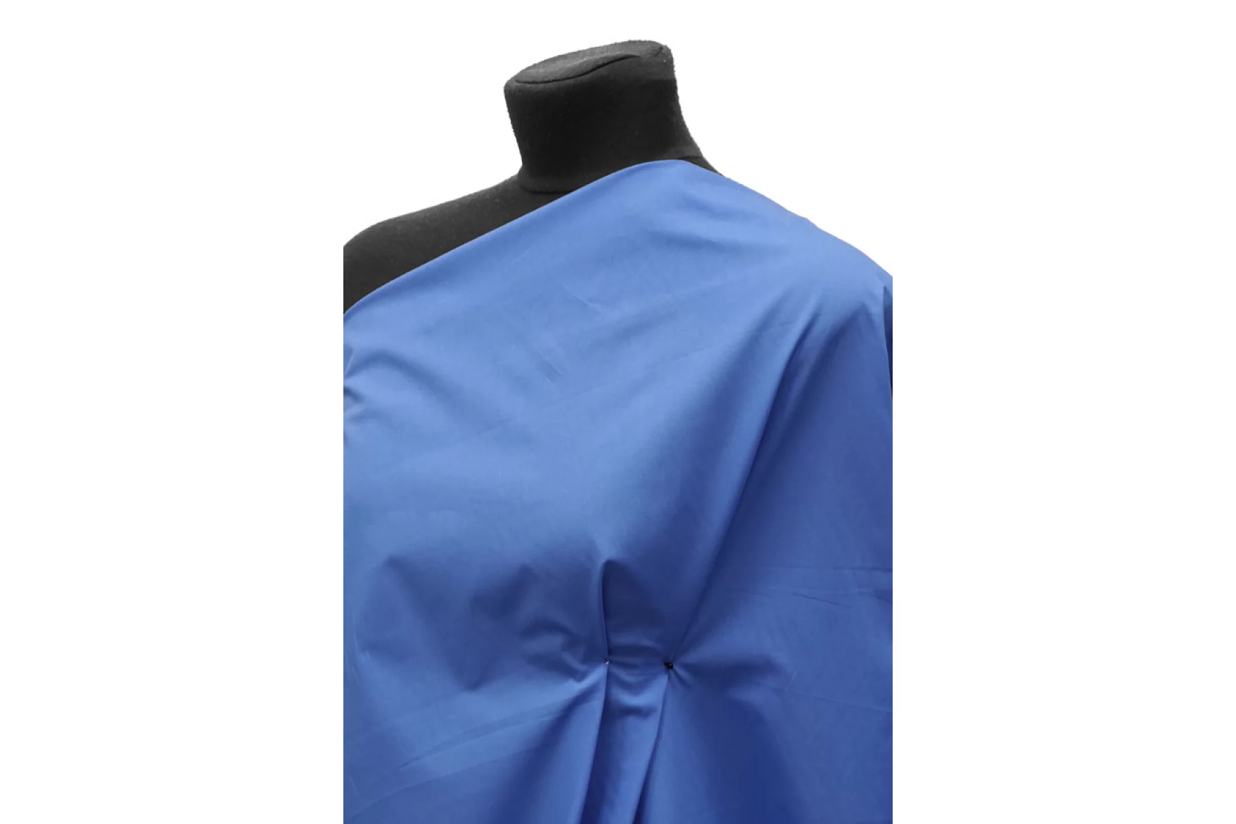 Итальянский рубашечный хлопок от бренда Max Mara, в сине-голубом цвете. Материал гладкий, мягкий, тонкий, легкий. Слегка шуршащий. Немного мнется и немного просвечивает силуэт. Не тянется, очень пластичный но при этом держит форму. Прекрасный вариант на рубашки, юбки, платья. Материал дает усадку.