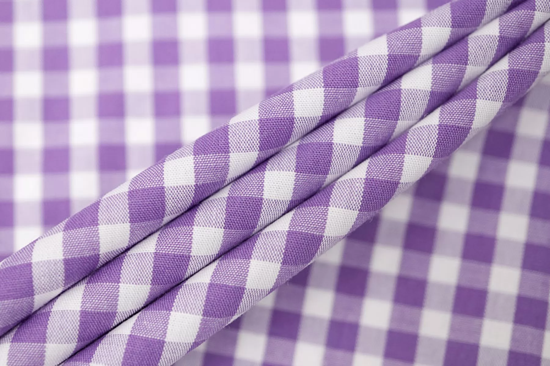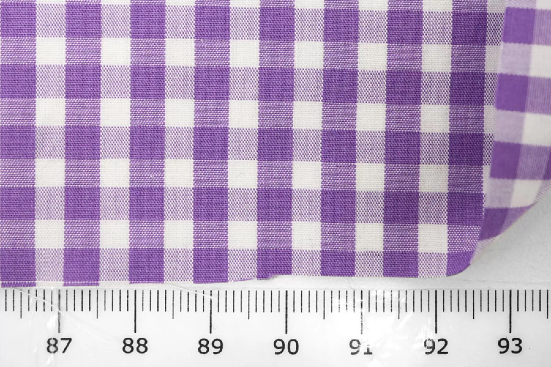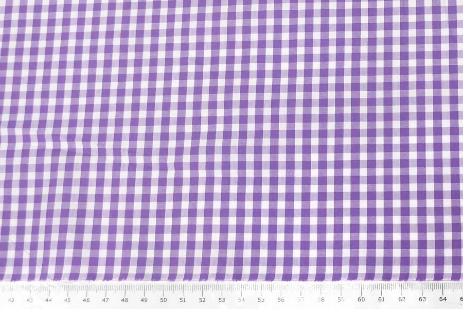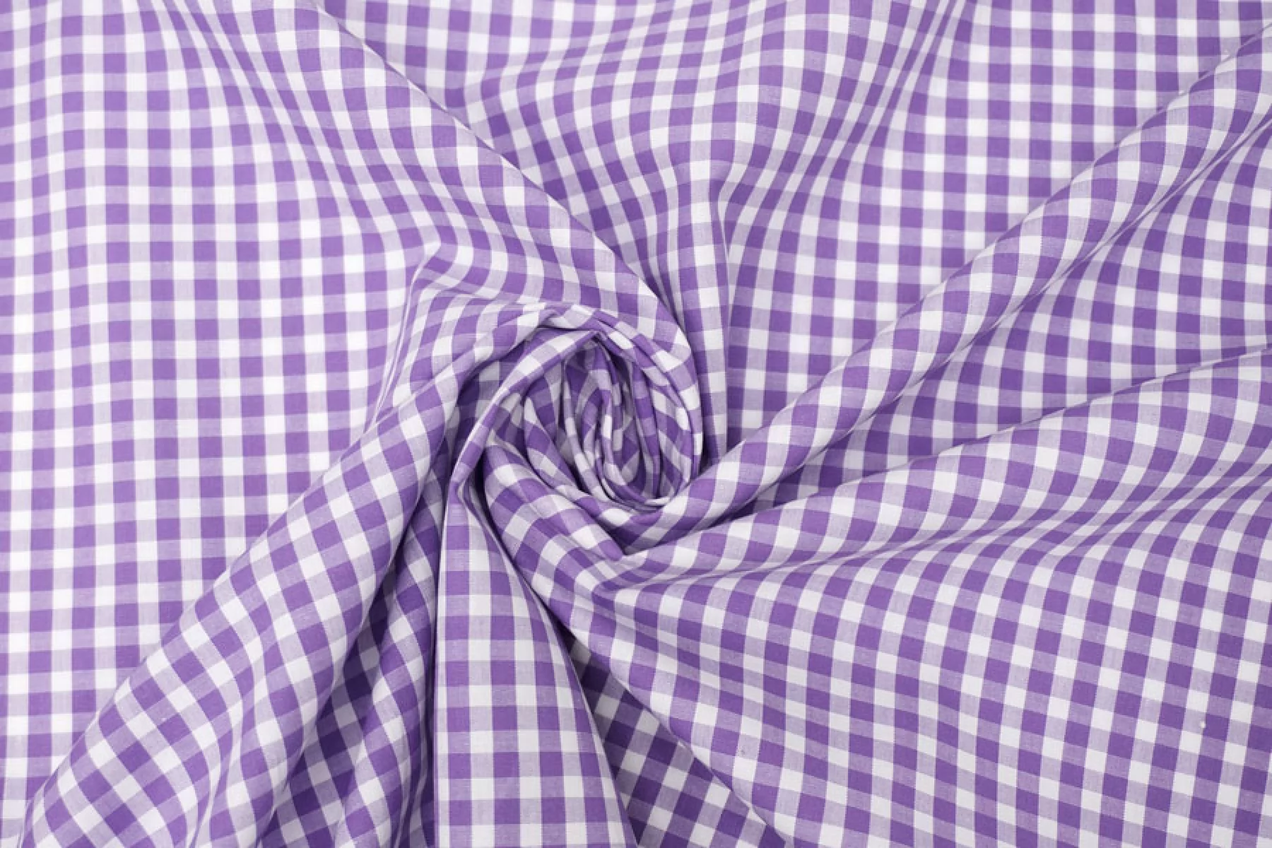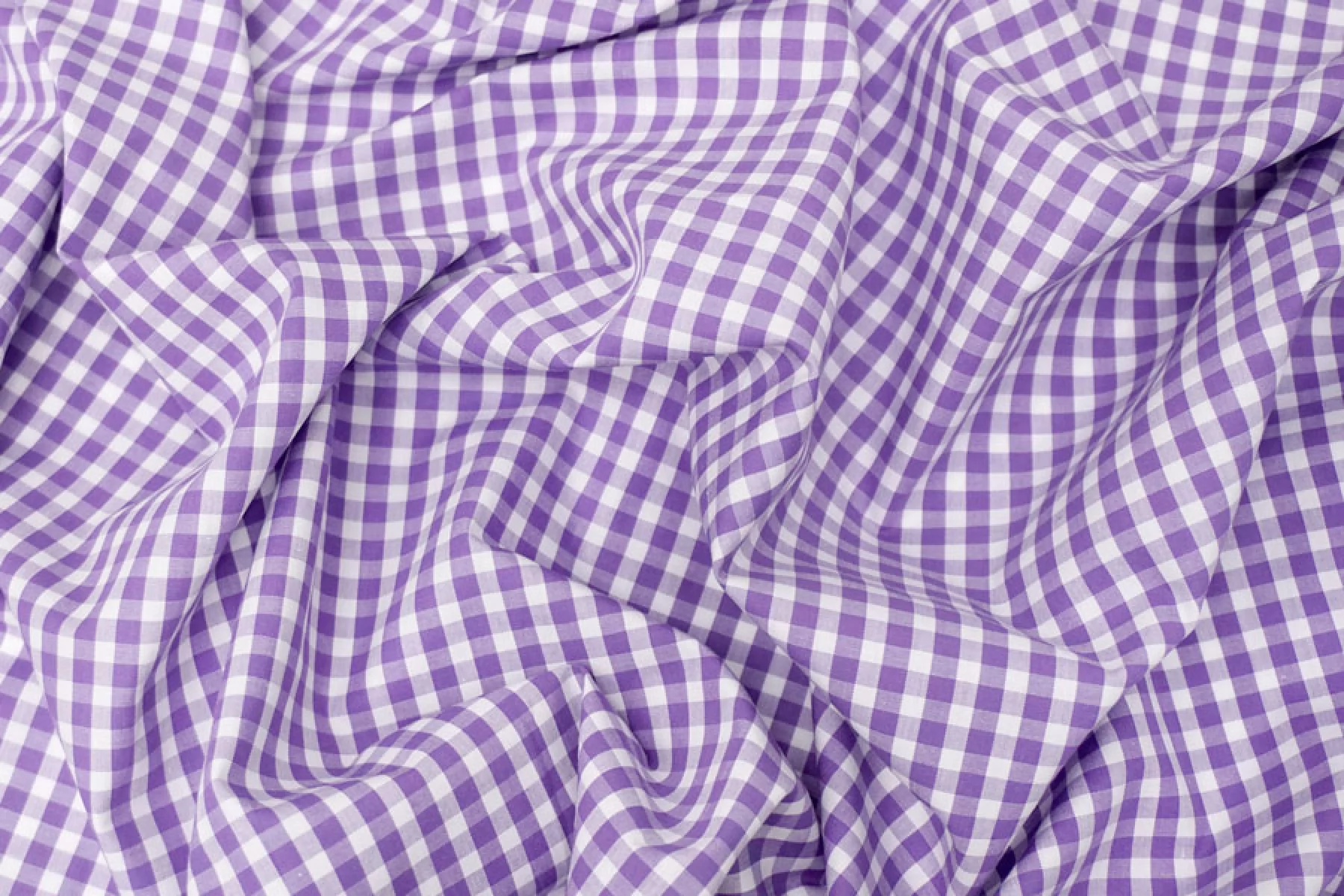 Отличный рубашечный хлопок в мелкую клетку. Полотняное переплетение белых и сиреневых нитей. Приятный тактильно. Хорошо драпируется и неплохо держит форму. Практически не просвечивает. Мнется. Не тянется, но совсем слегка и упруго пружинит за счет плетения. Шьем рубашки, платья, сарафаны и не только.