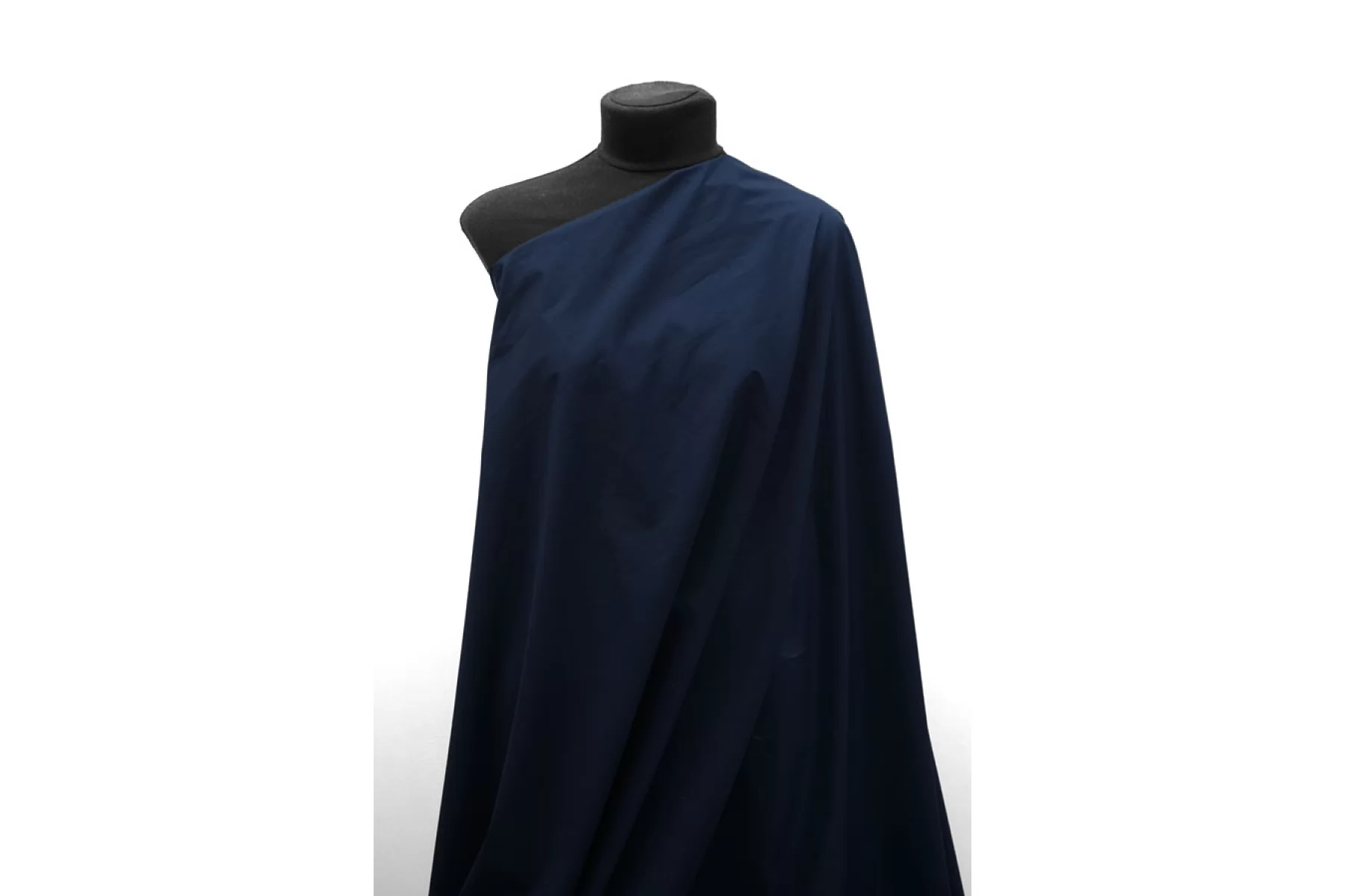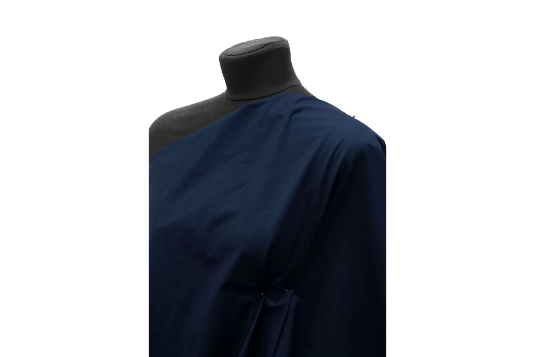 ВНИМАНИЕ!! По центру встречаются вкрапления белых нитей см. на фото. Итальянский рубашечный хлопок от бренда Max Mara, в тёмно-синем цвете цвете. Материал гладкий, мягкий, тонкий, легкий. Слегка шуршащий. Немного мнется и немного просвечивает силуэт. Не тянется, очень пластичный но при этом немного держит форму. Прекрасный вариант на рубашки, юбки, платья. Материал дает усадку.