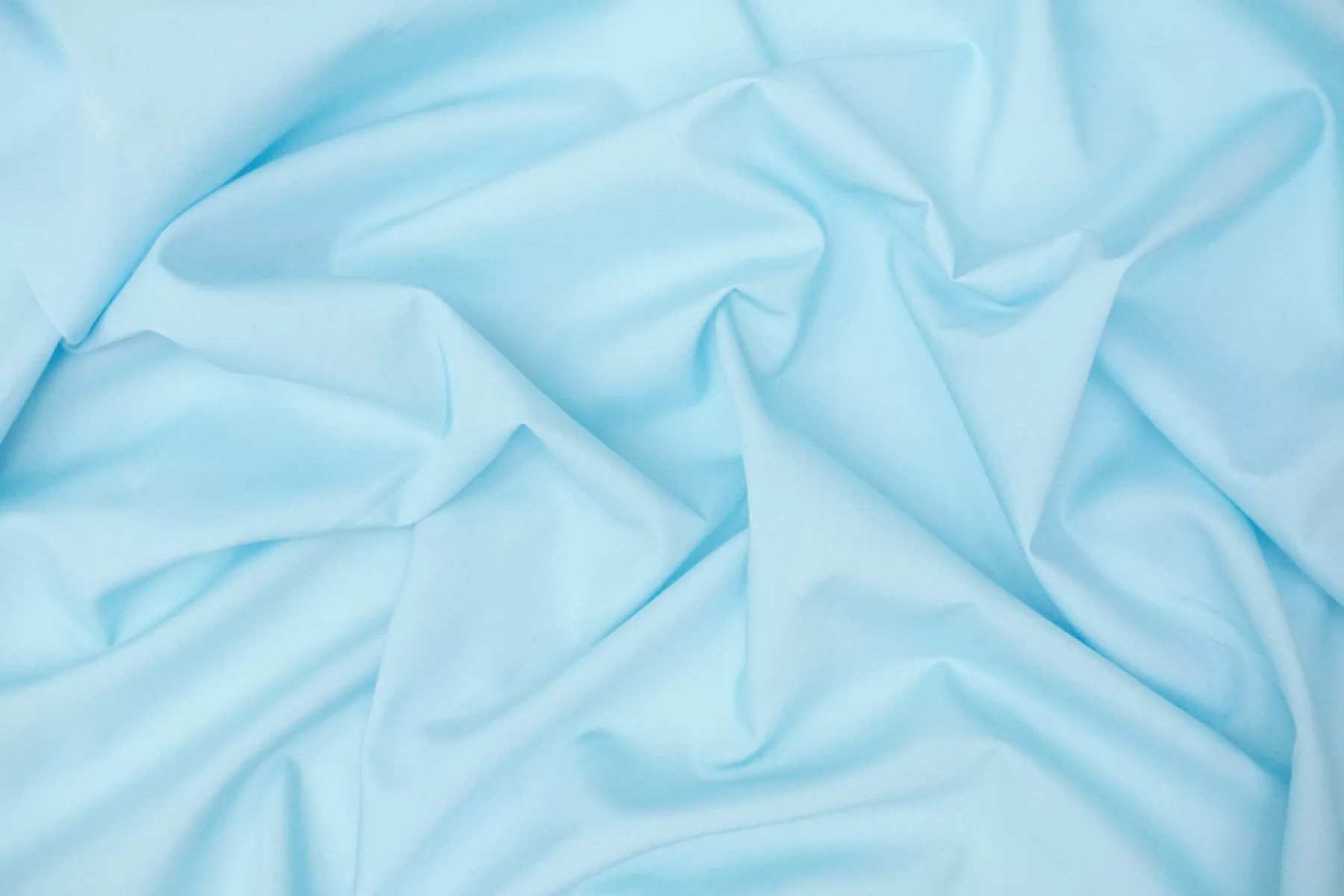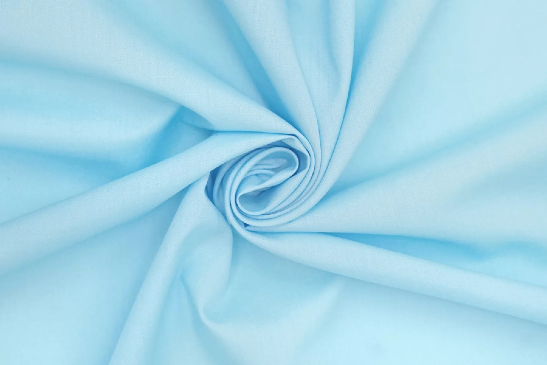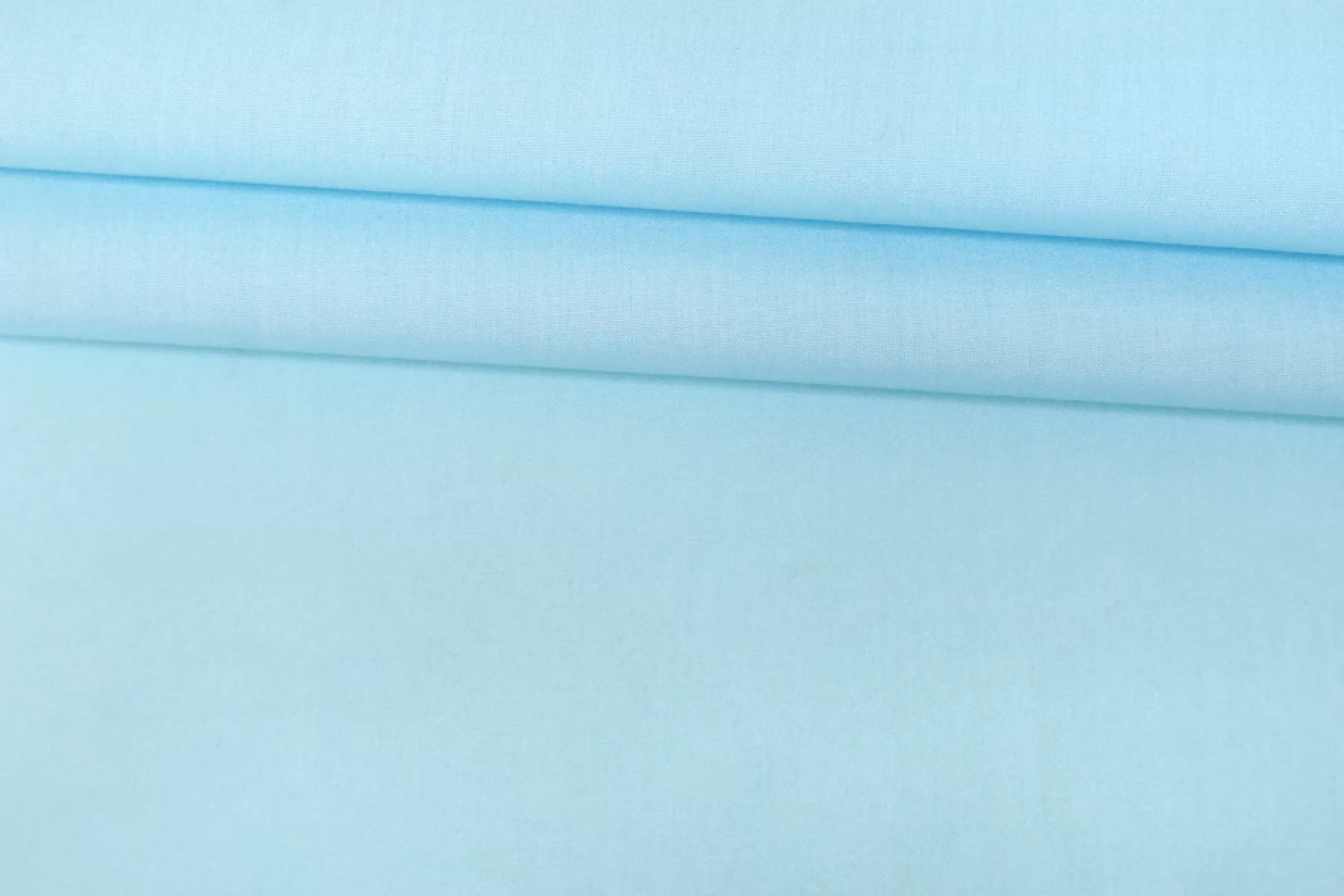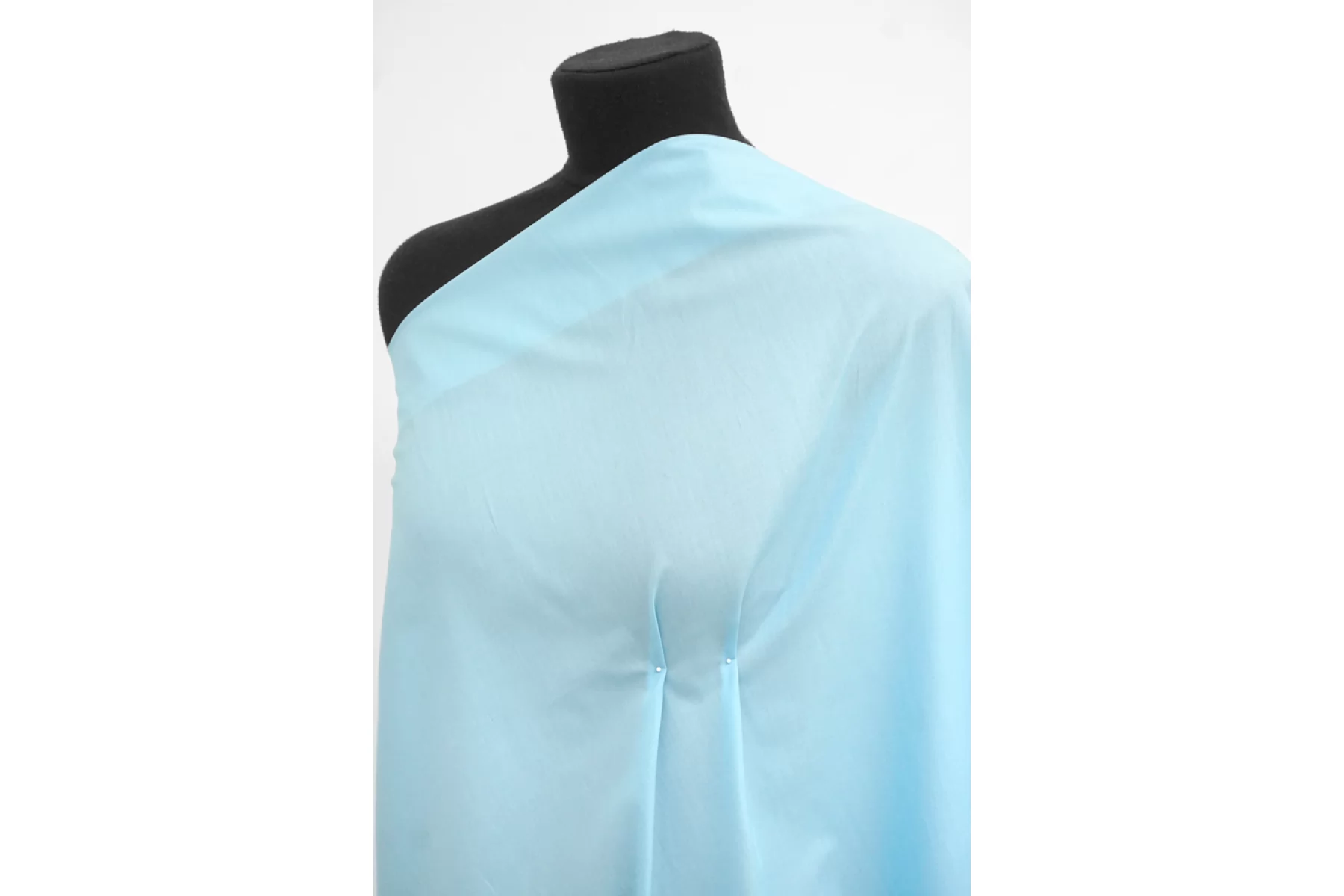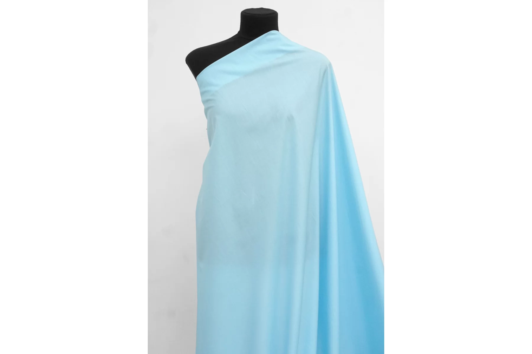 Хлопковый мерсеризированный рубашечный хлопок небесно-голубого оттенка. Тактильно очень приятный и мягкий. С легким лоском. Мнется, но частично восстанавливается. Не тянется. Слегка просвечивает силуэт на просвет. Хорошо драпируется и немного держит форму. Прекрасный вариант на рубашки, платья, юбки и не только.
