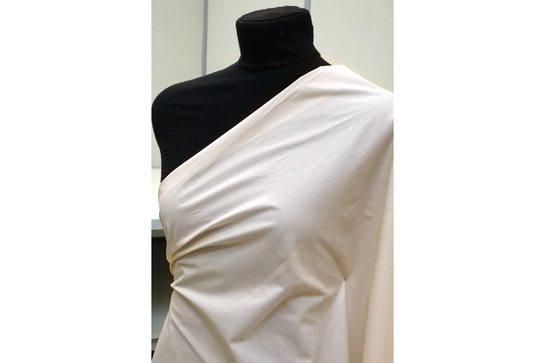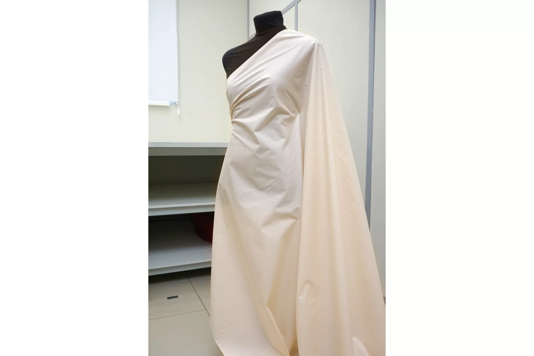 Рубашечный мерсеризированный хлопок в светлом бежевом цвете. Материал тактильно приятный, гладкий и мягкий. Плотный по плетению. Немного просвечивает. Отлично драпируется и красиво смотрится в складке. Умеренно держит форму. Не тянется. Мнется. Шьем платья, рубашки, сарафаны и юбки. Учитывайте возможную усадку.