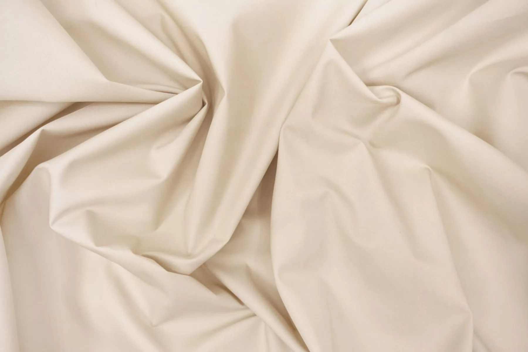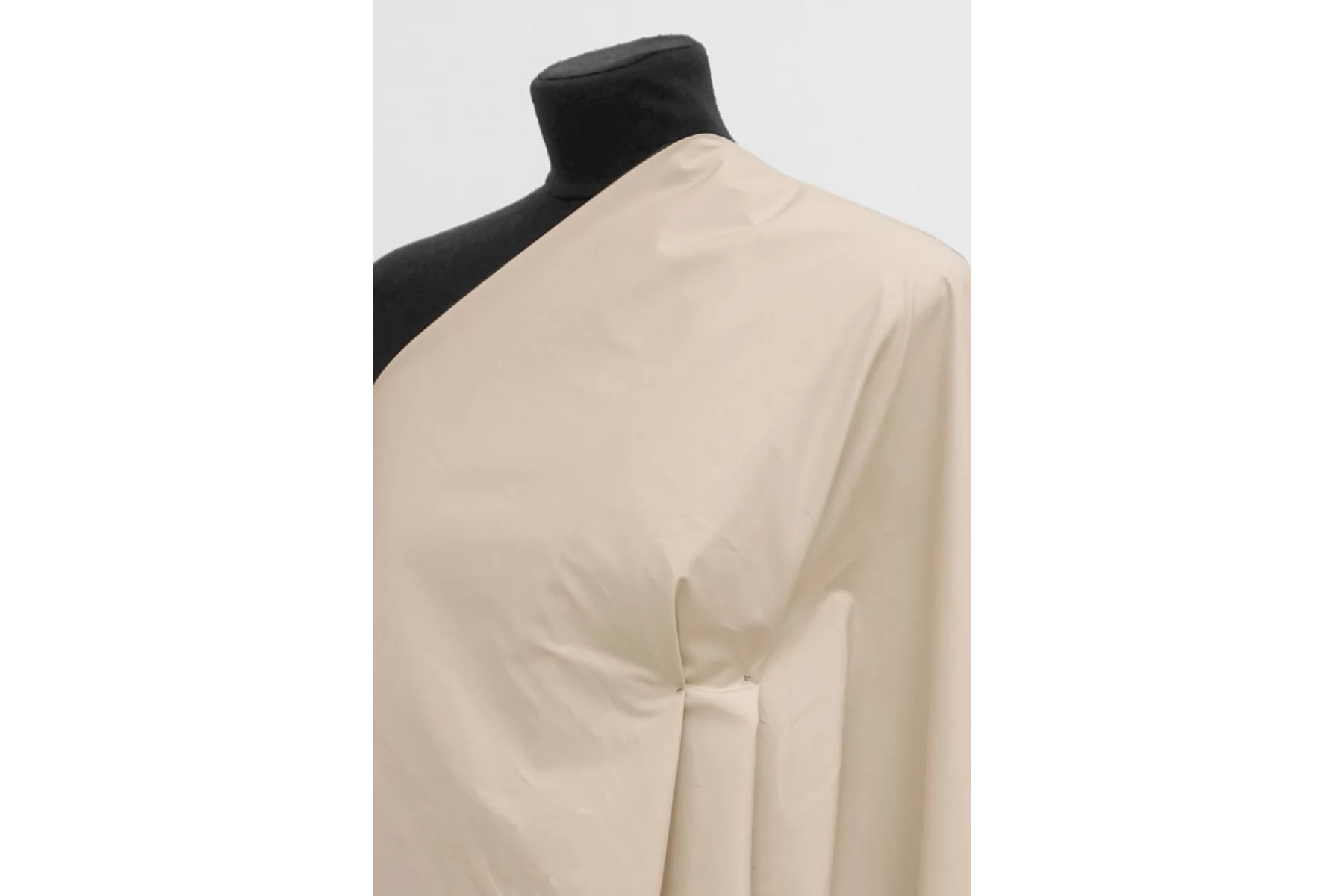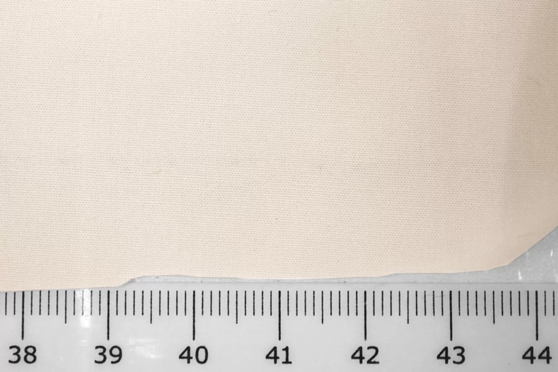 Рубашечный хлопок светло-бежевого оттенка полотняного плетения. Тактильно очень приятный и гладкий. Плотный. Не тянется. Немного просвечивает силуэт. Хорошо держит форму. Шьем рубашки, платья, юбки и не только. Учитывайте возможную усадку.