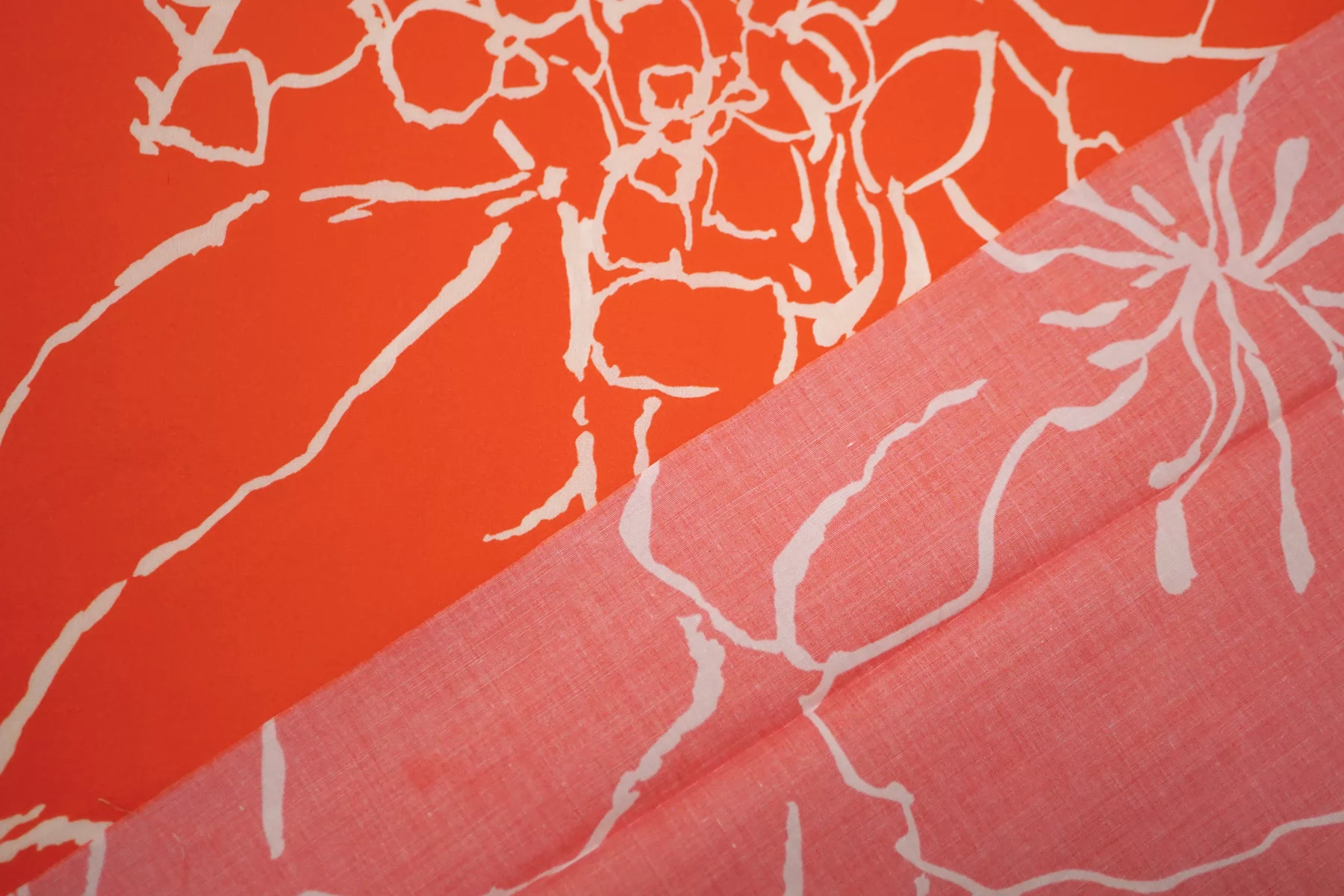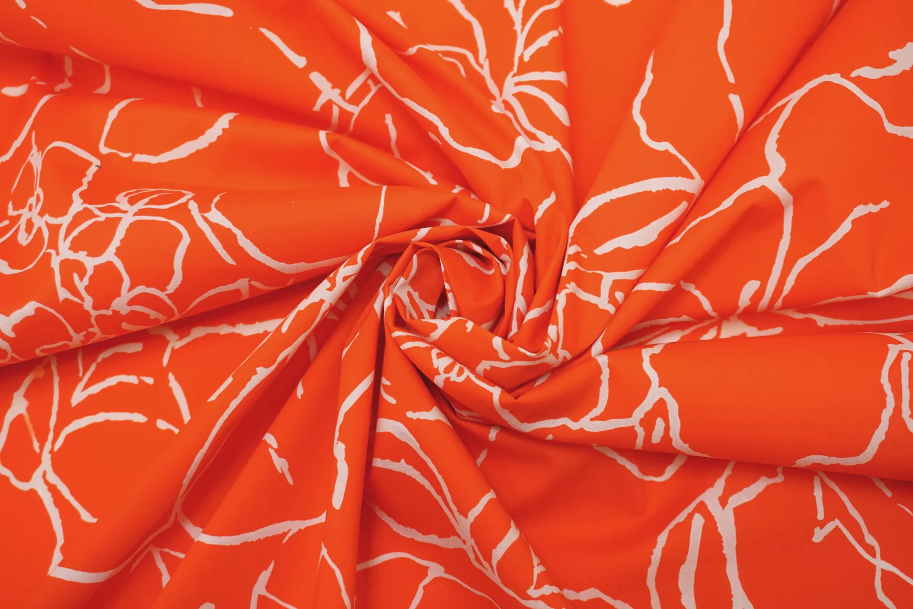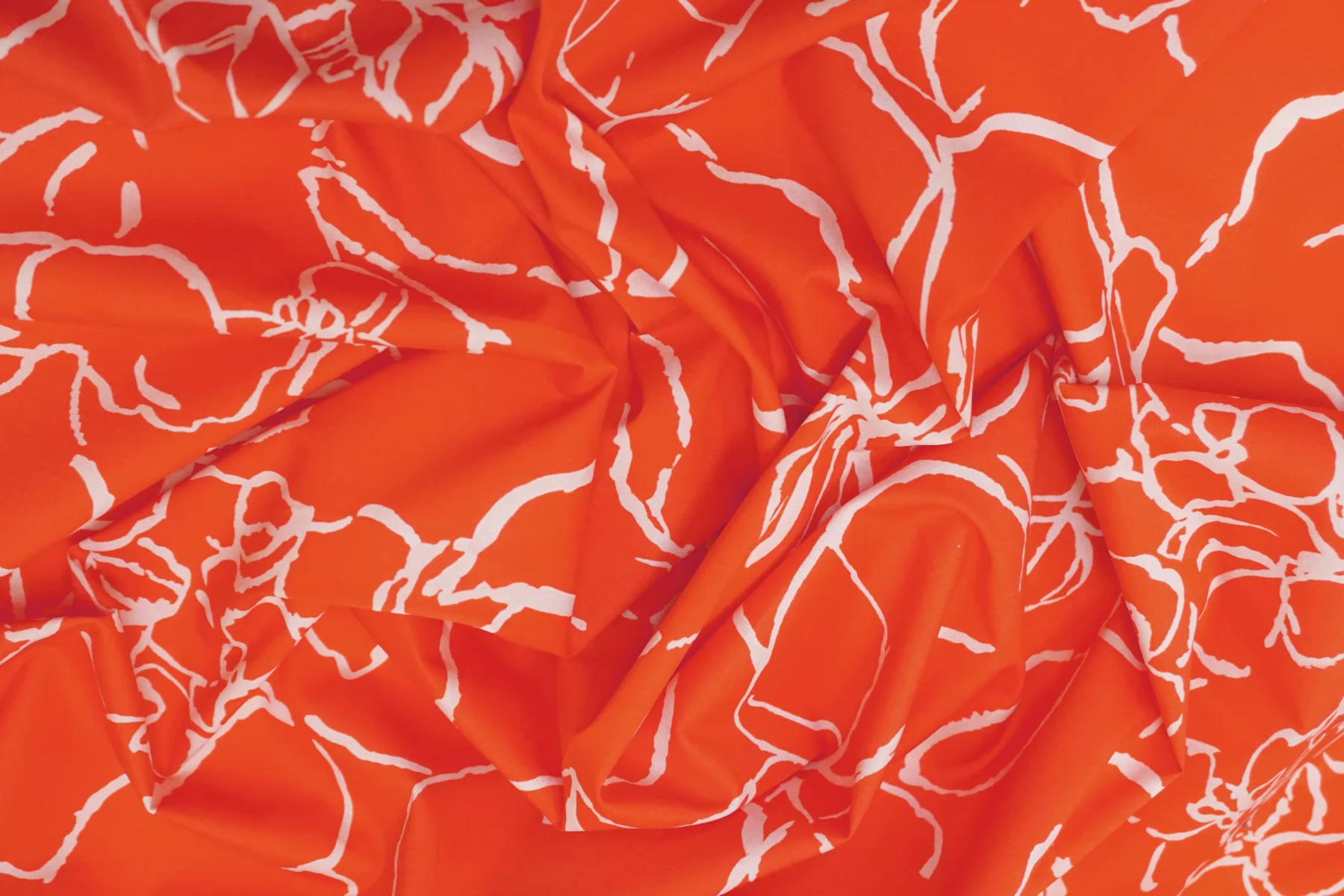ВНИМАНИЕ!! Брак принта маленькие белые точки непрокраса хаотично по всему полотну 20 - 50 см. см. фото. Итальянский хлопок рубашечной плотности, яркого красно-оранжевого цвета с абстрактным принтом. Материал гладкий, мягкий, тонкий. Мнется. Минимально просвечивает силуэт в один слой, тянется. Пластичный, форму не держит. Прекрасный вариант на рубашки, юбки, платья. Материал дает усадку.