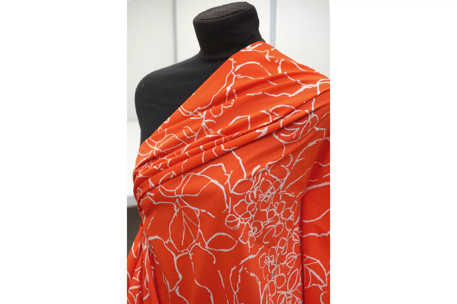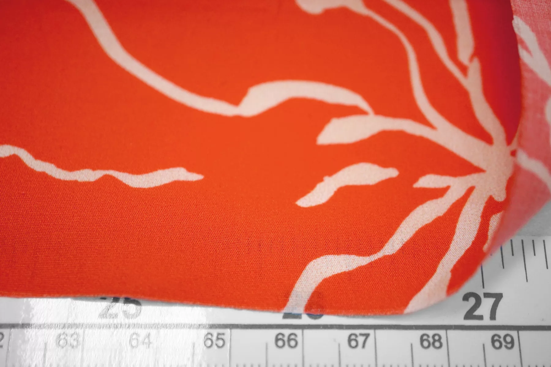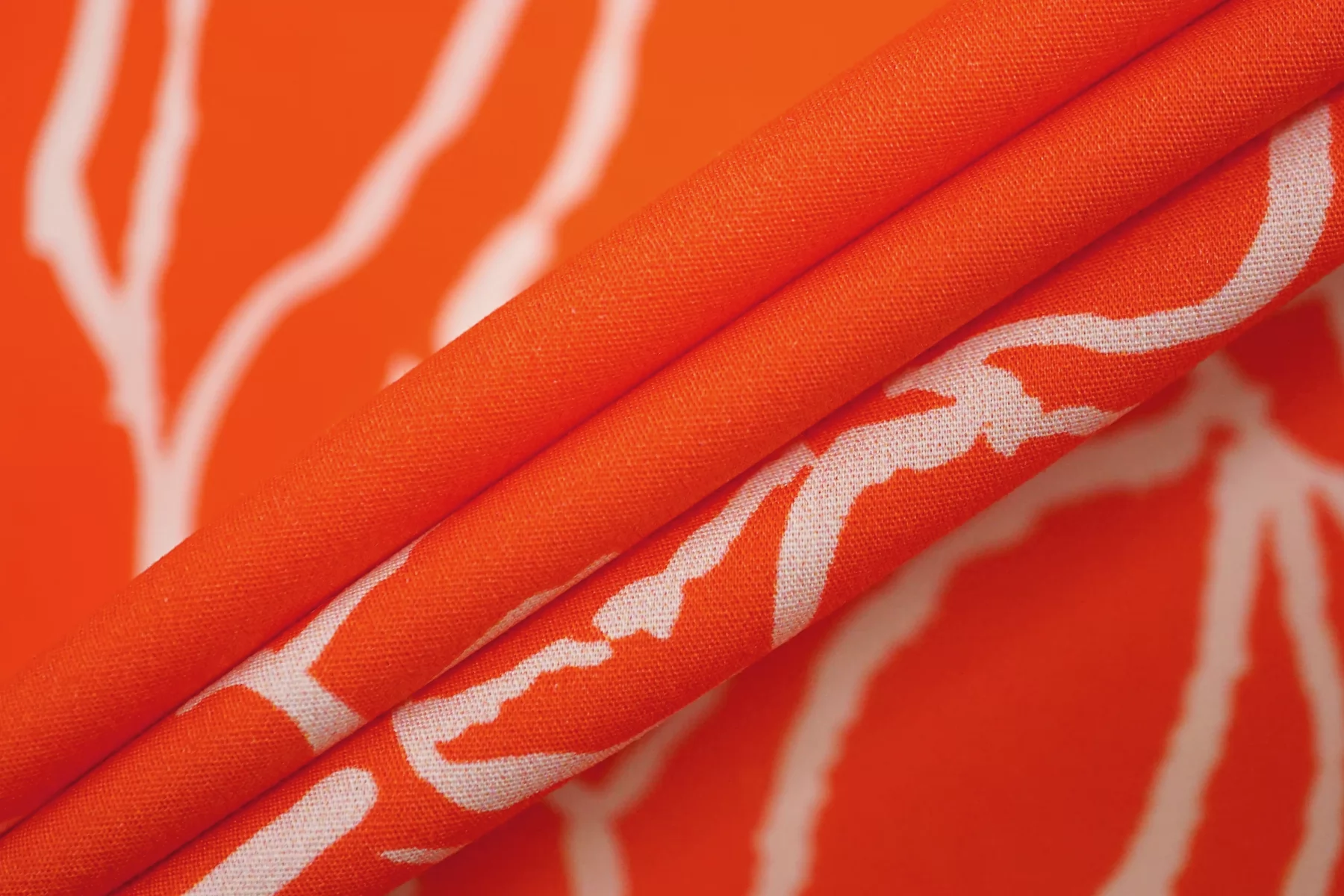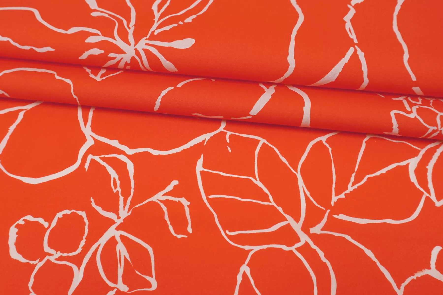 ВНИМАНИЕ!! Брак принта маленькие белые точки непрокраса хаотично по всему полотну 20 - 50 см. см. фото. Итальянский хлопок рубашечной плотности, яркого красно-оранжевого цвета с абстрактным принтом. Материал гладкий, мягкий, тонкий. Мнется. Минимально просвечивает силуэт в один слой, тянется. Пластичный, форму не держит. Прекрасный вариант на рубашки, юбки, платья. Материал дает усадку.