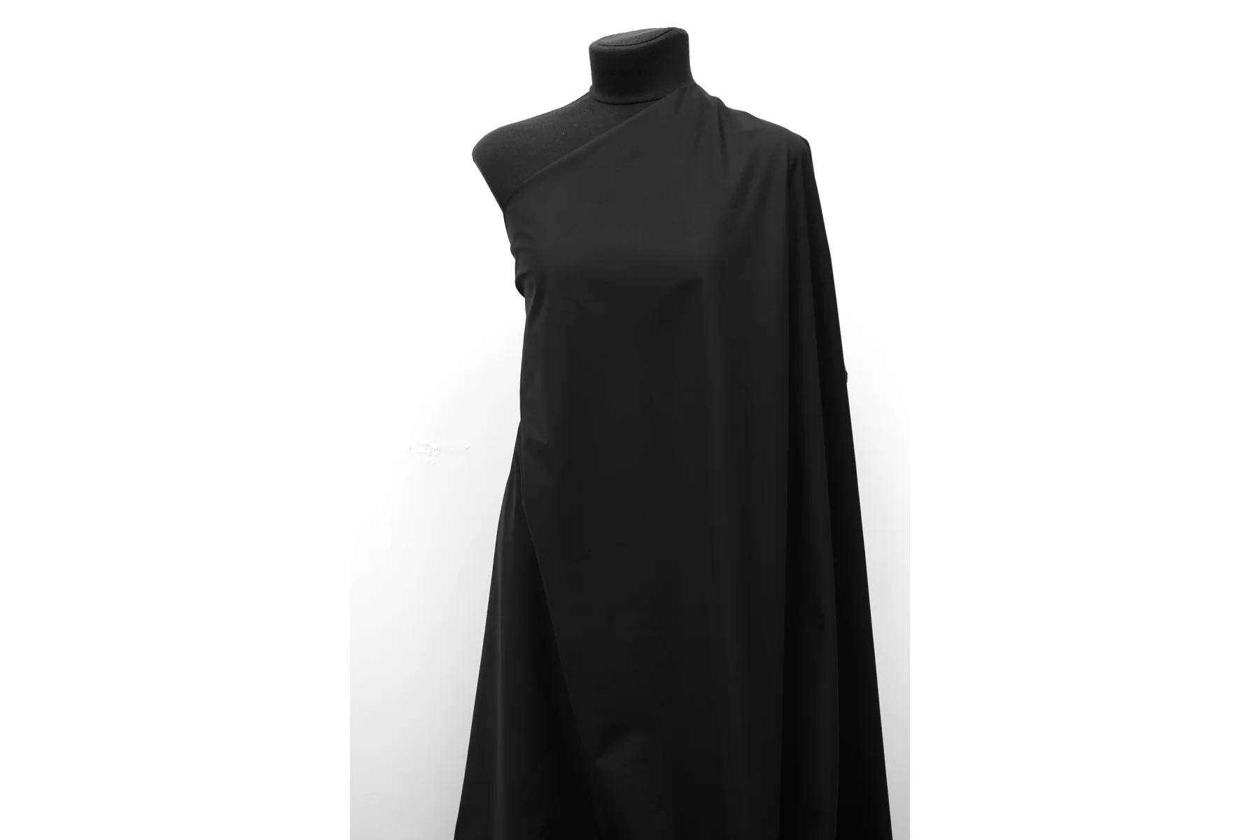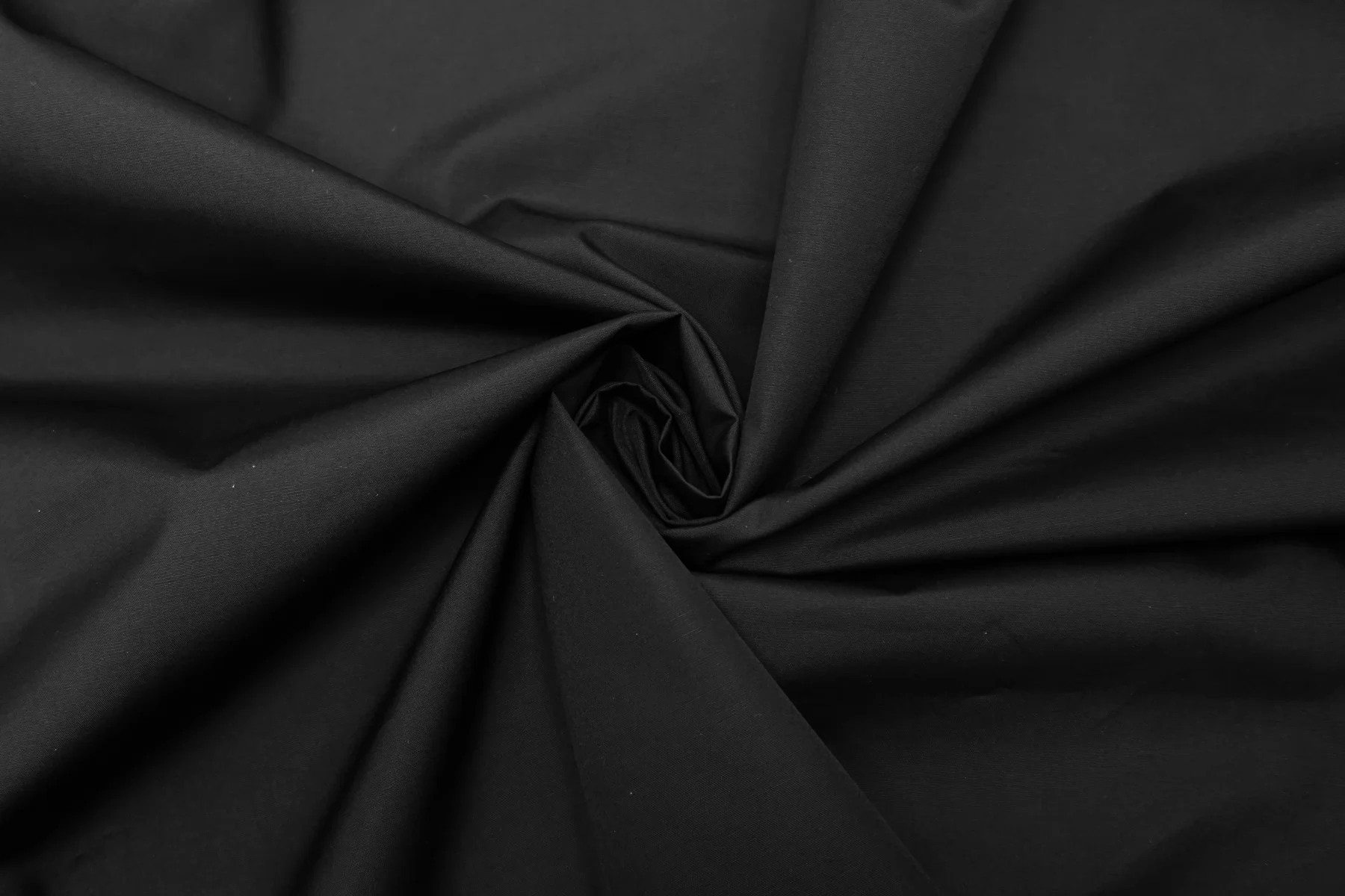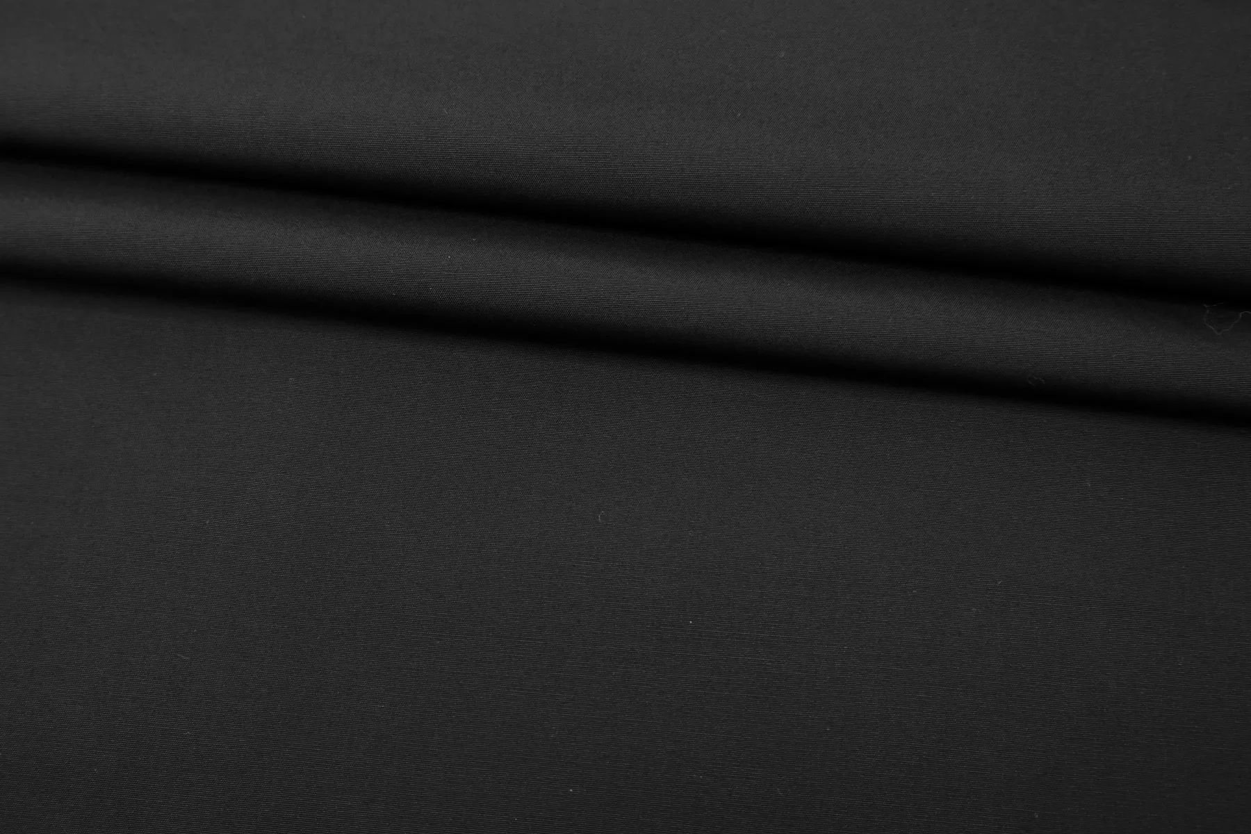 Итальянский рубашечный мерсеризованный хлопок от бренда Max Mara чёрного цвета. Материал гладкий, мягкий, тонкий, легкий. Слегка шуршащий. Немного мнется и немного просвечивает насквозь. Не тянется, очень пластичный но при этом держит форму. Прекрасный вариант на рубашки, юбки, платья. Материал дает усадку.