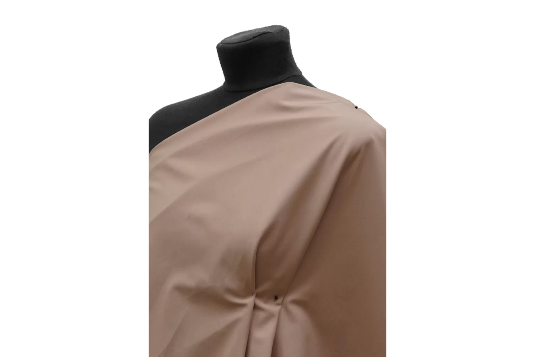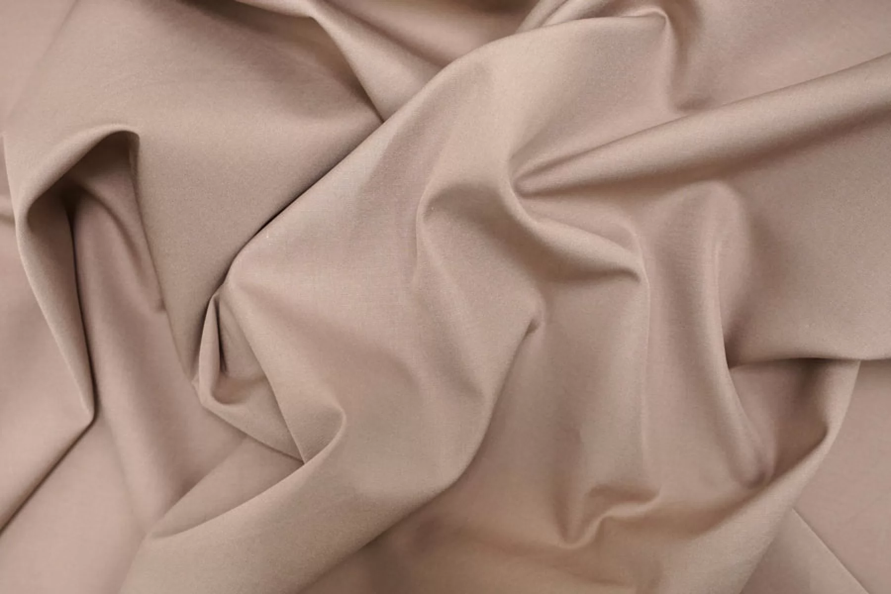 Итальянский рубашечный мерсеризованный хлопок от бренда Max Mara, в красивом, слегка разбелённом оттенке какао (бежевый с розовинкой). Материал гладкий, мягкий, тонкий, легкий. Слегка шуршащий. Немного мнется, минимально просвечивает силуэт. Не тянется, очень пластичный, форму немного держит. Прекрасный вариант на рубашки, юбки, платья. Материал дает усадку.