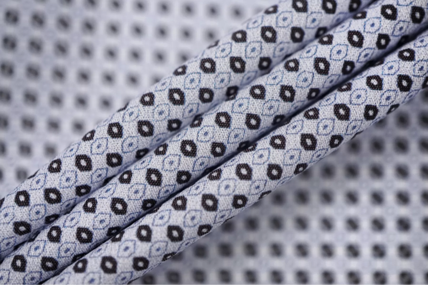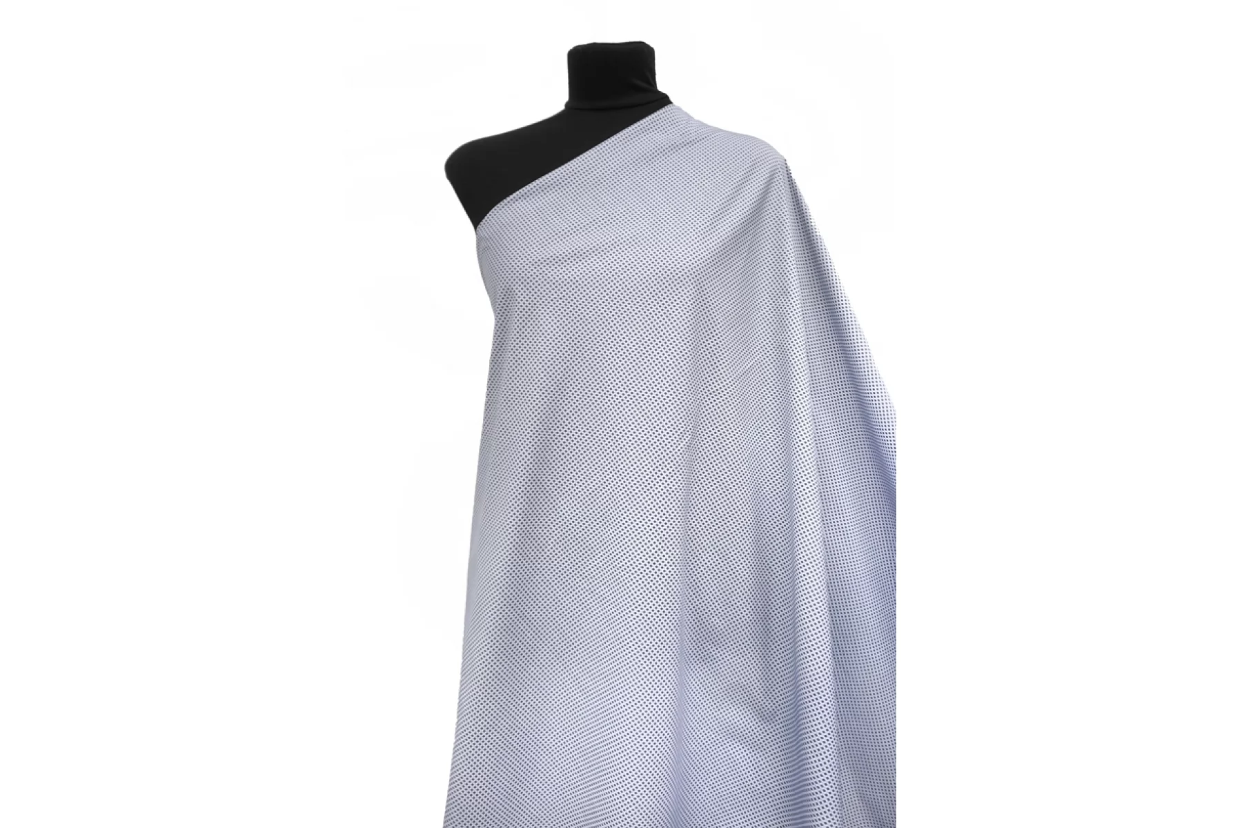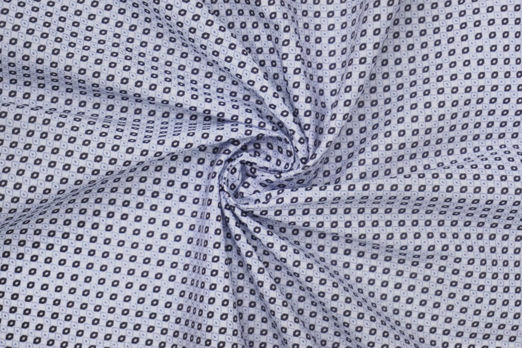 Рубашечный хлопок полотняного плетения с принтом в виде мелкой геометрии. Основа полотна в приглушенном серовато-синем оттенке, а принт в синем и коричнево-черном оттенке. Тонкий, пластичный. Гладкий и приятный. Отлично и упруго тянется. Слегка просвечивает силуэт на просвет. Несильно мнется, но частично восстанавливается, а также за счет принта это практически не заметно. Отлично драпируется и неплохо держит форму. Совсем слегка похрустывает. Вариант на рубашки, платья, юбки и не только. При необходимости используйте подкладочный материал.