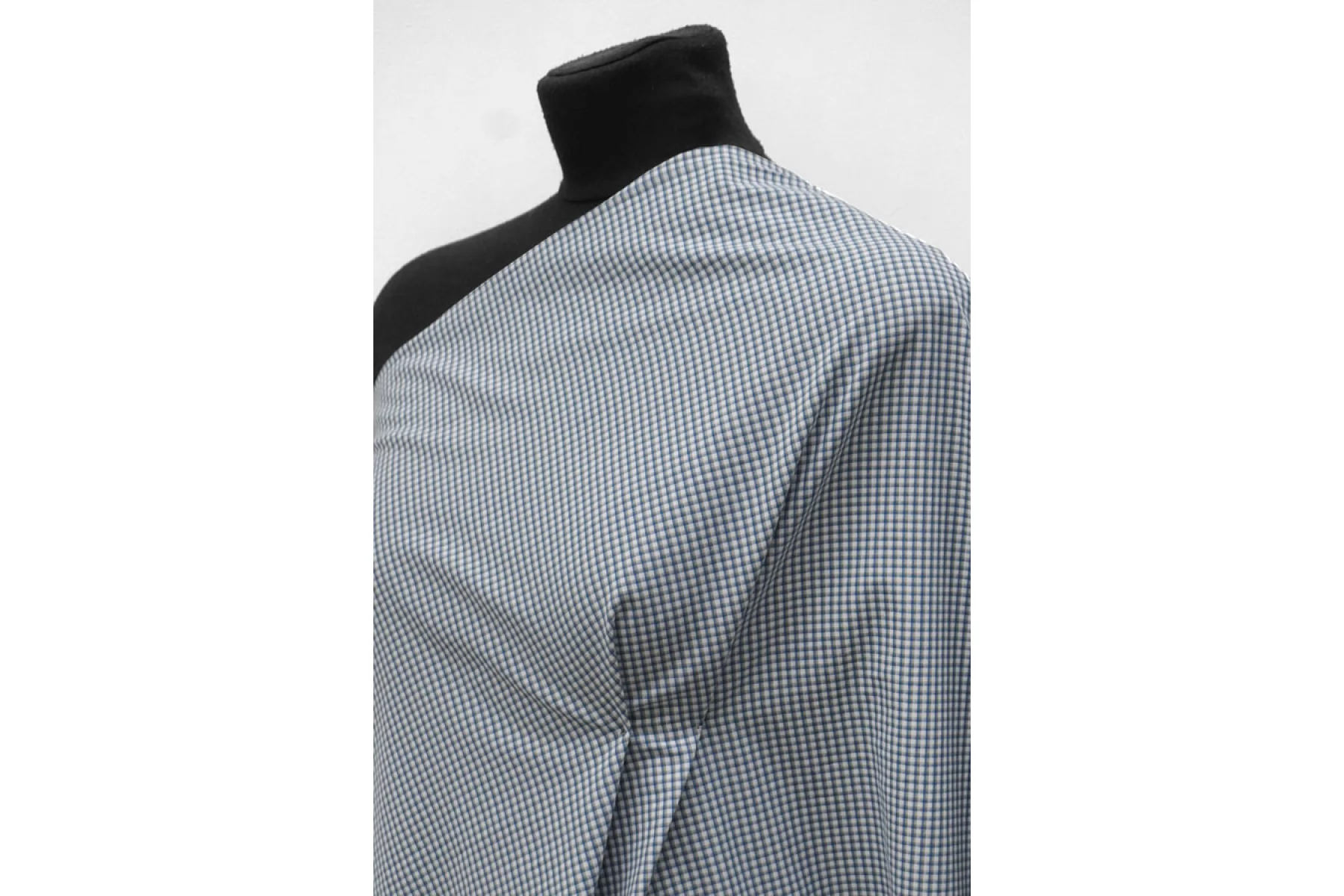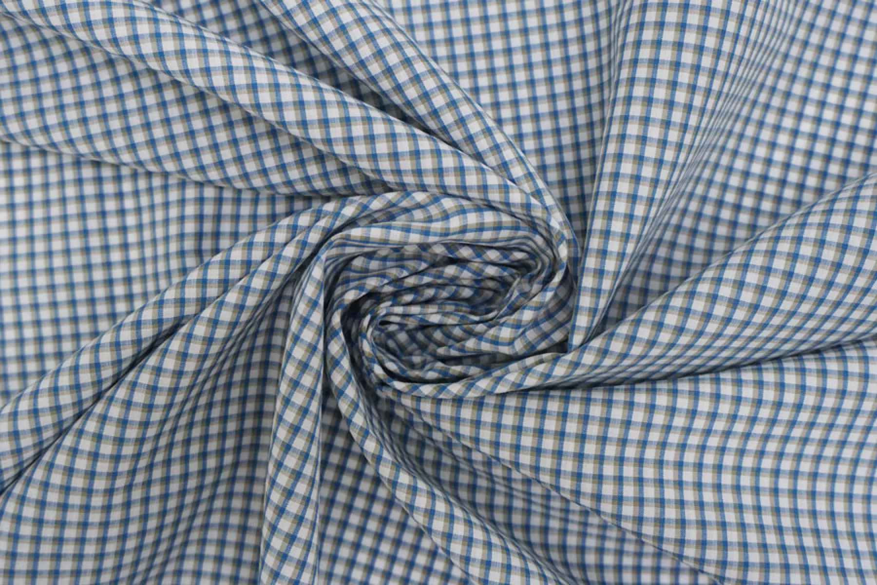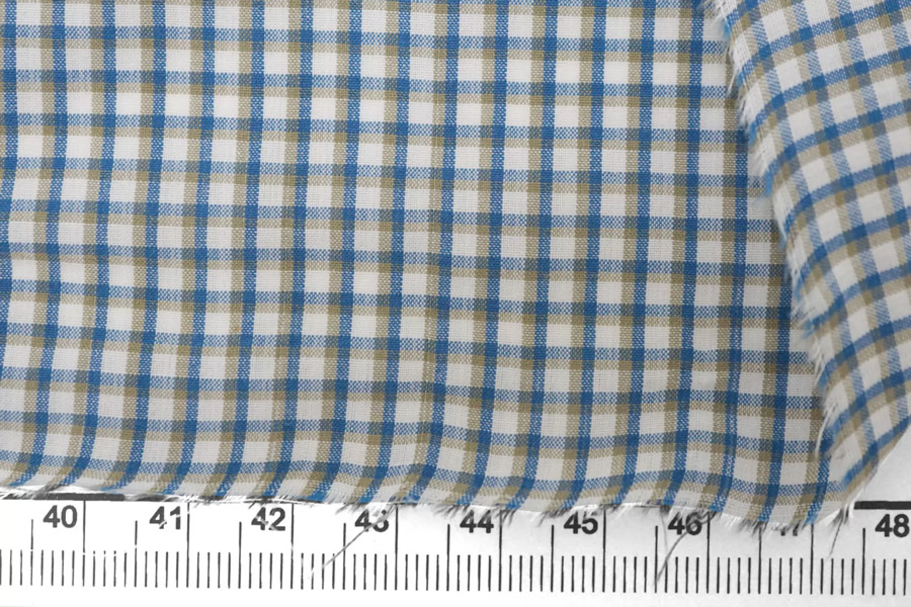 Итальянский рубашечный хлопок от Ralph Lauren, с узором-клеткой из нитей сине-голубого, зеленовато-бежевого и белого цвета. Материал гладкий, мягкий, тонкий, легкий. Немного мнется и немного просвечивает. Не тянется, очень пластичный и практически не держит форму. Прекрасный вариант на рубашки, юбки, платья. Материал дает усадку.