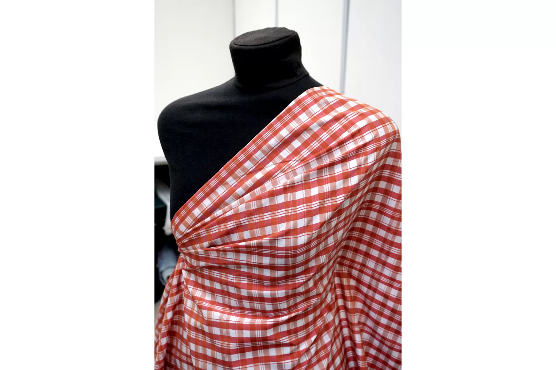 Рубашечный хлопок с шелком Красно-белый в клетку FRM H6\1 B40 14022618