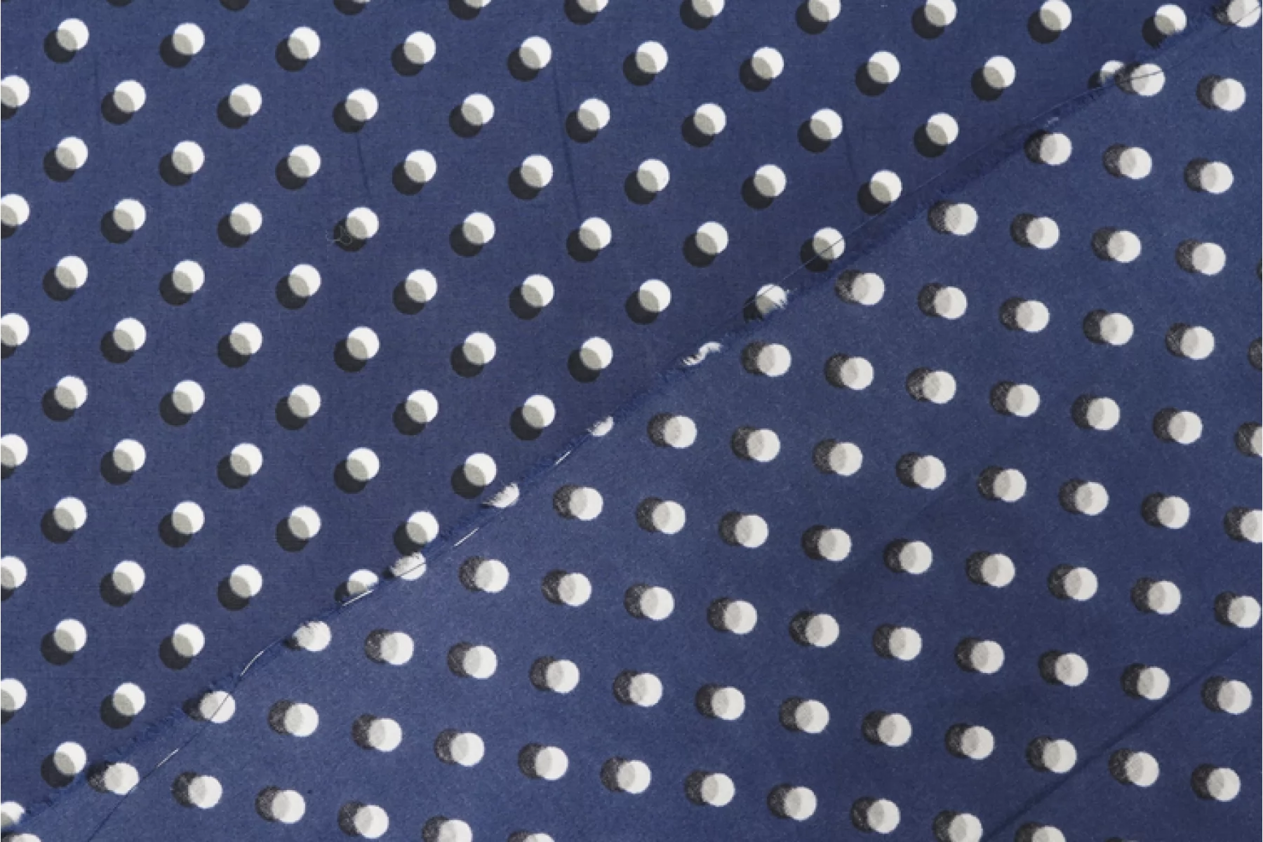 Рубашечный хлопок от SIMONETTA припыленного темно-синего оттенка в горошек белого, серого и черного оттенков. Приятный и мягкий. Совсем слегка похрустывающий. Мнется. Не тянется. Просвечивает силуэт на просвет. Хорошо драпируется и неплохо держит форму. Вариант на рубашки, платья, юбки и не только.