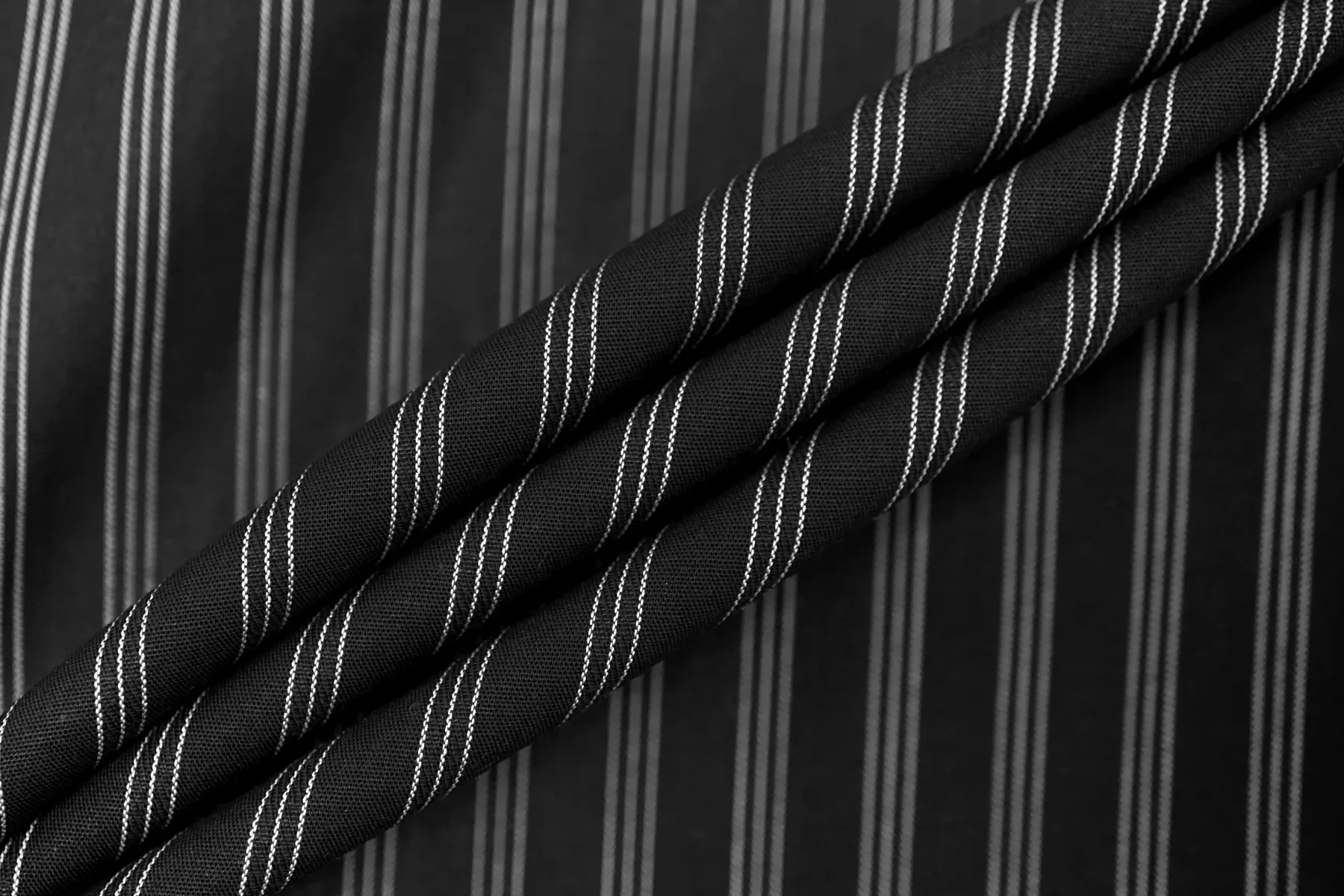 Рубашечный хлопок-стрейч жаккардовый Чёрно-серый в полоску FRM H5 A50 14022639
