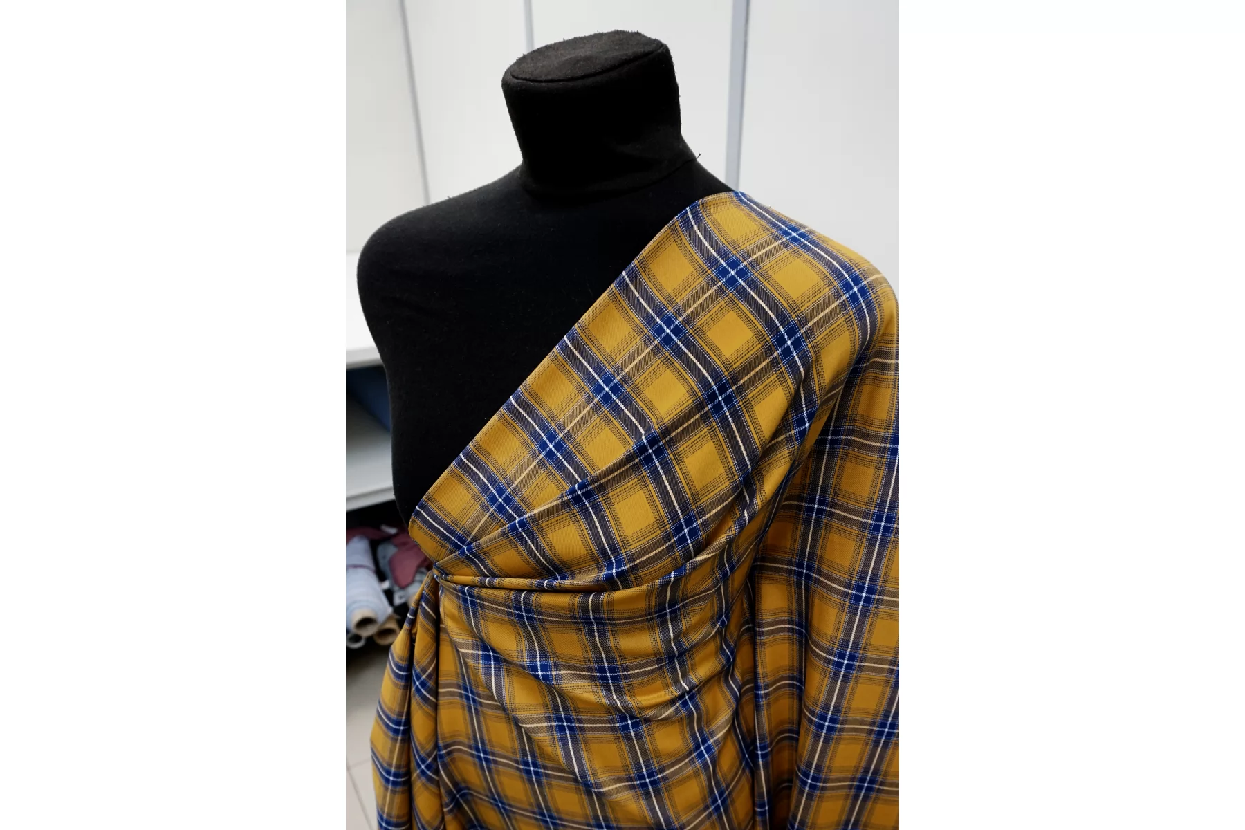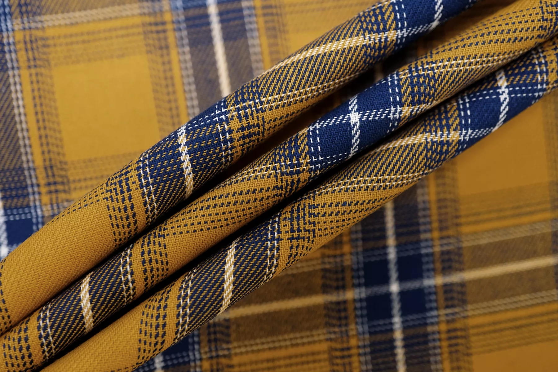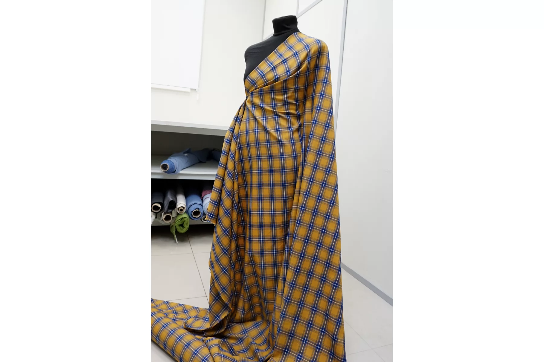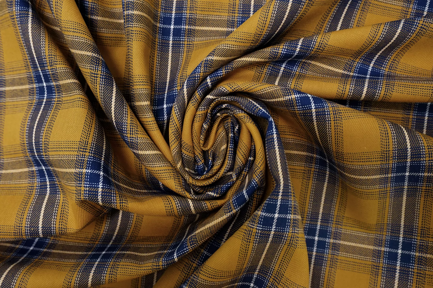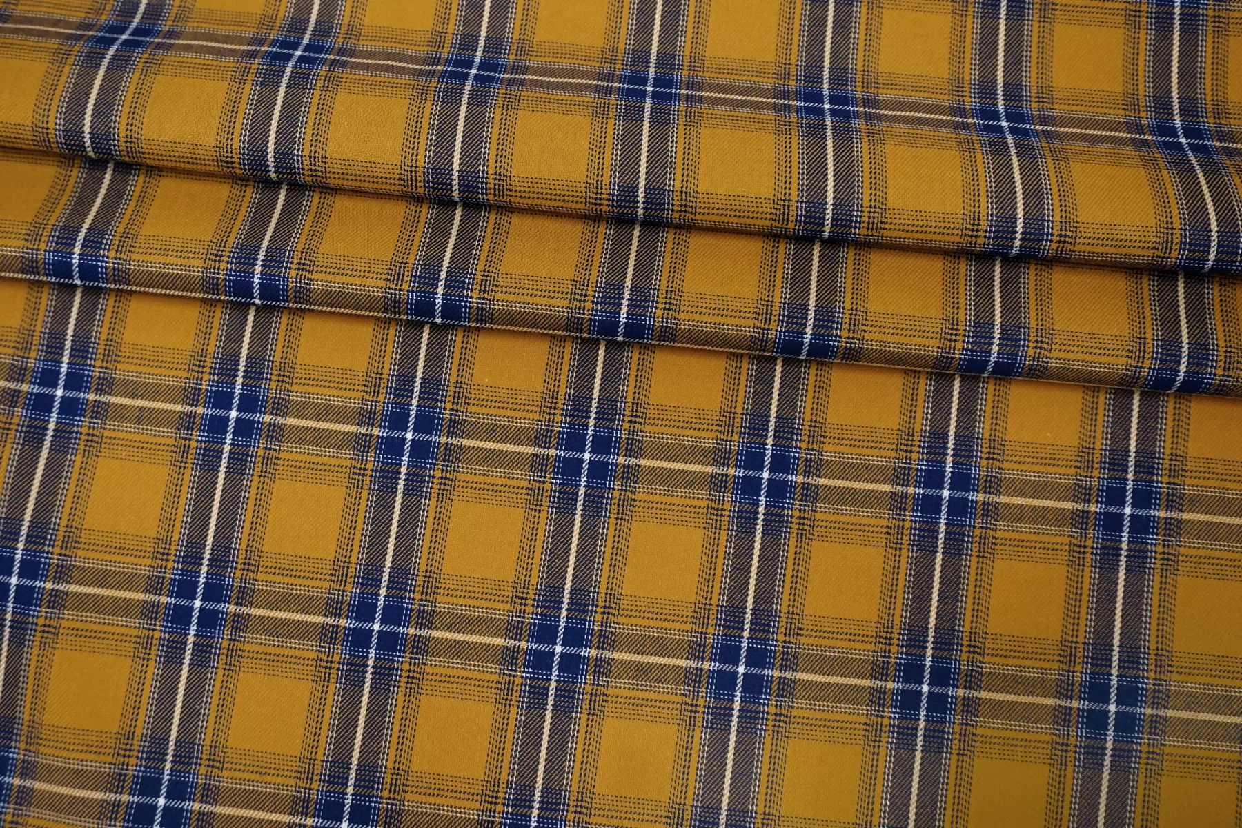 Рубашечный хлопок в клетку Горчично-синий CVC H6 B20 21112530