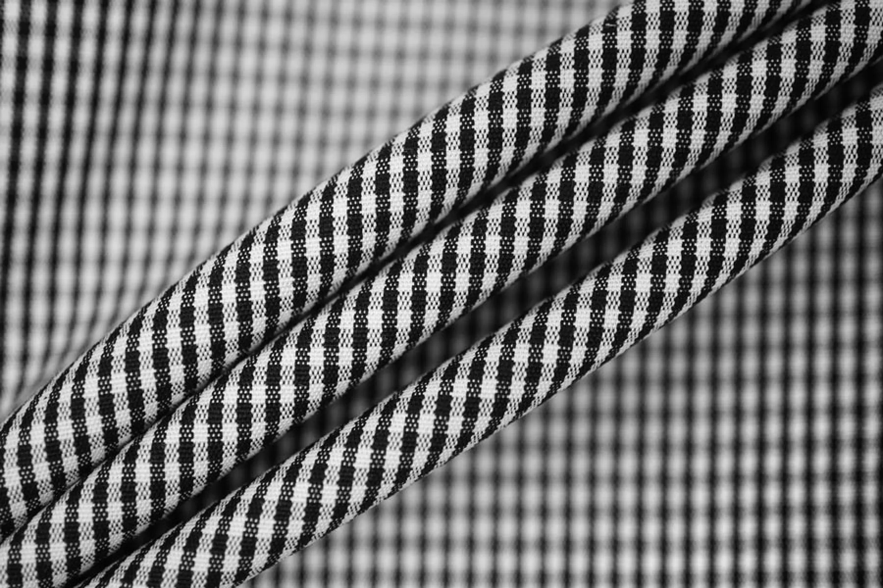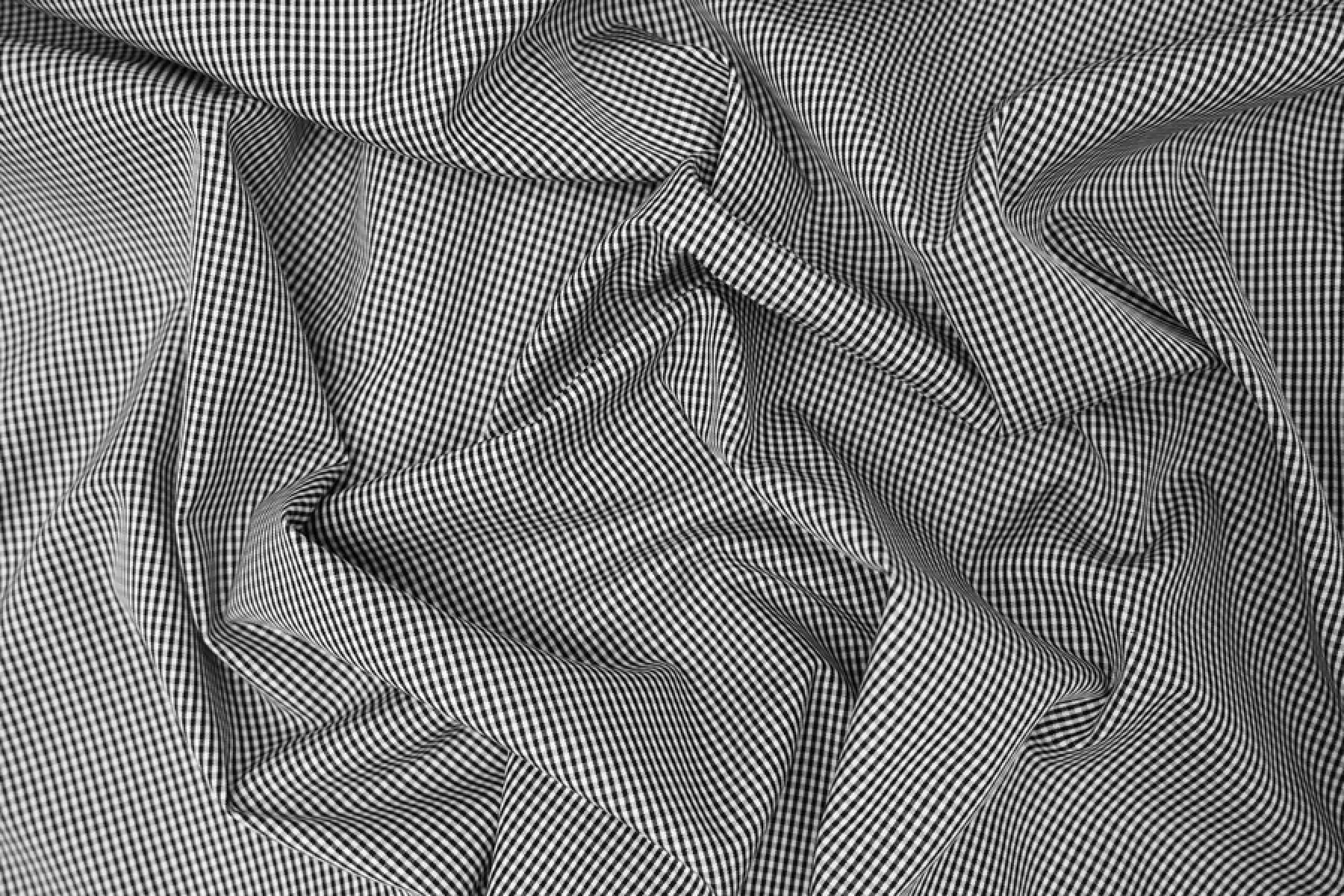 Рубашечный хлопок в мелкую черно-белую клетку. Тактильно слегка суховатый, но приятный. Не просвечивает. Не тянется. Сминается, но незаметно за счет принта. Тонкий, но достаточно плотный. Отлично драпируется и держит форму. Классный вариант на рубашки, юбки, платья и не только.