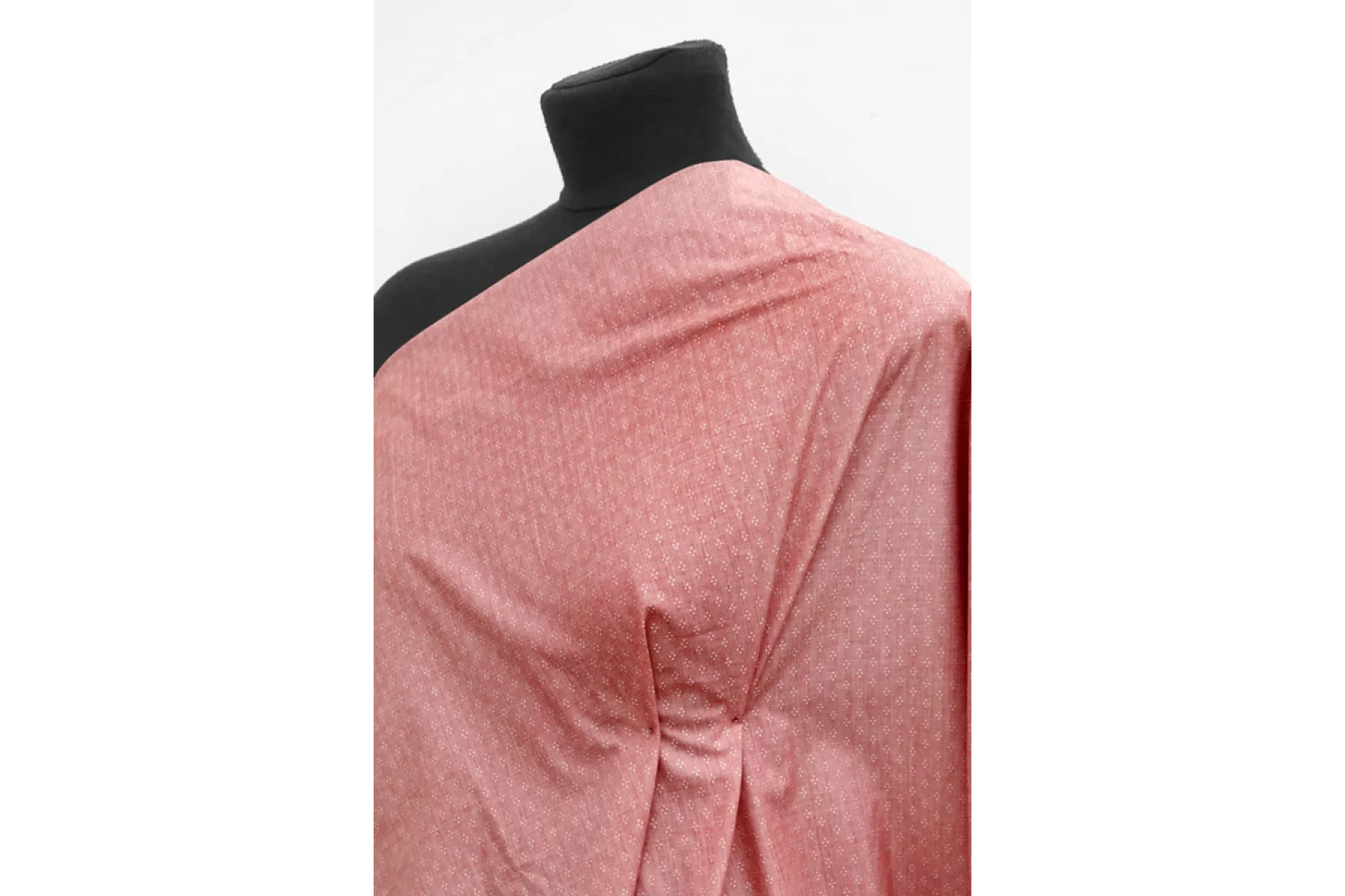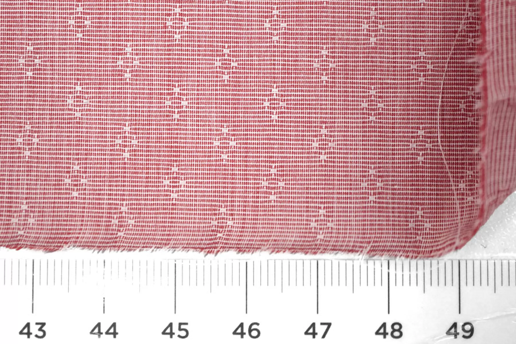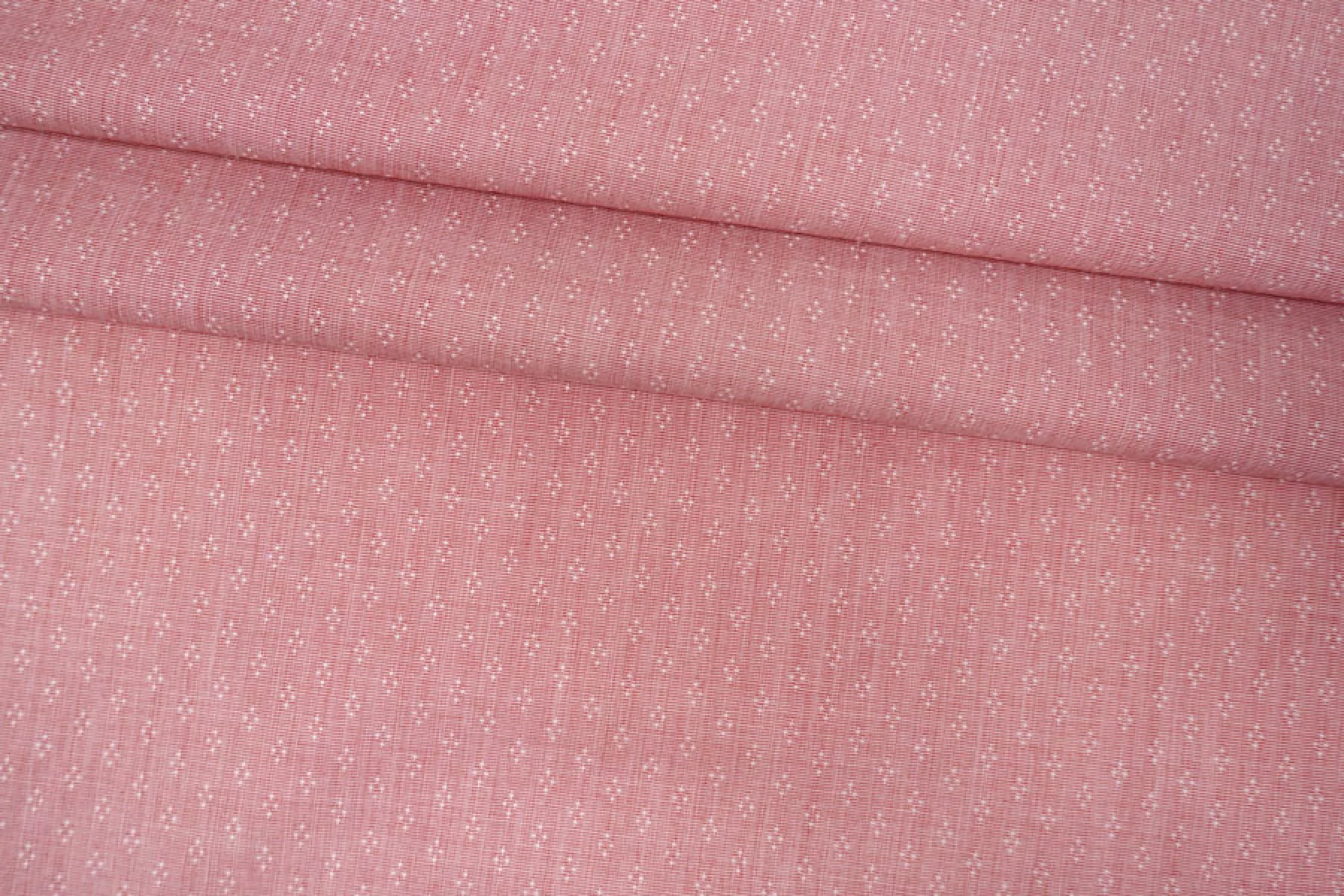 Итальянский рубашечный хлопок от Etro, с жаккардовой выработкой - мелким узором, нити белого и красного цвета. Материал гладкий, мягкий, тонкий, легкий. Немного мнется и немного просвечивает. Не тянется, очень пластичный и форму практически не держит. Прекрасный вариант на рубашки, юбки, платья. Для платья или юбки может потребоваться подкладка. Материал дает усадку.