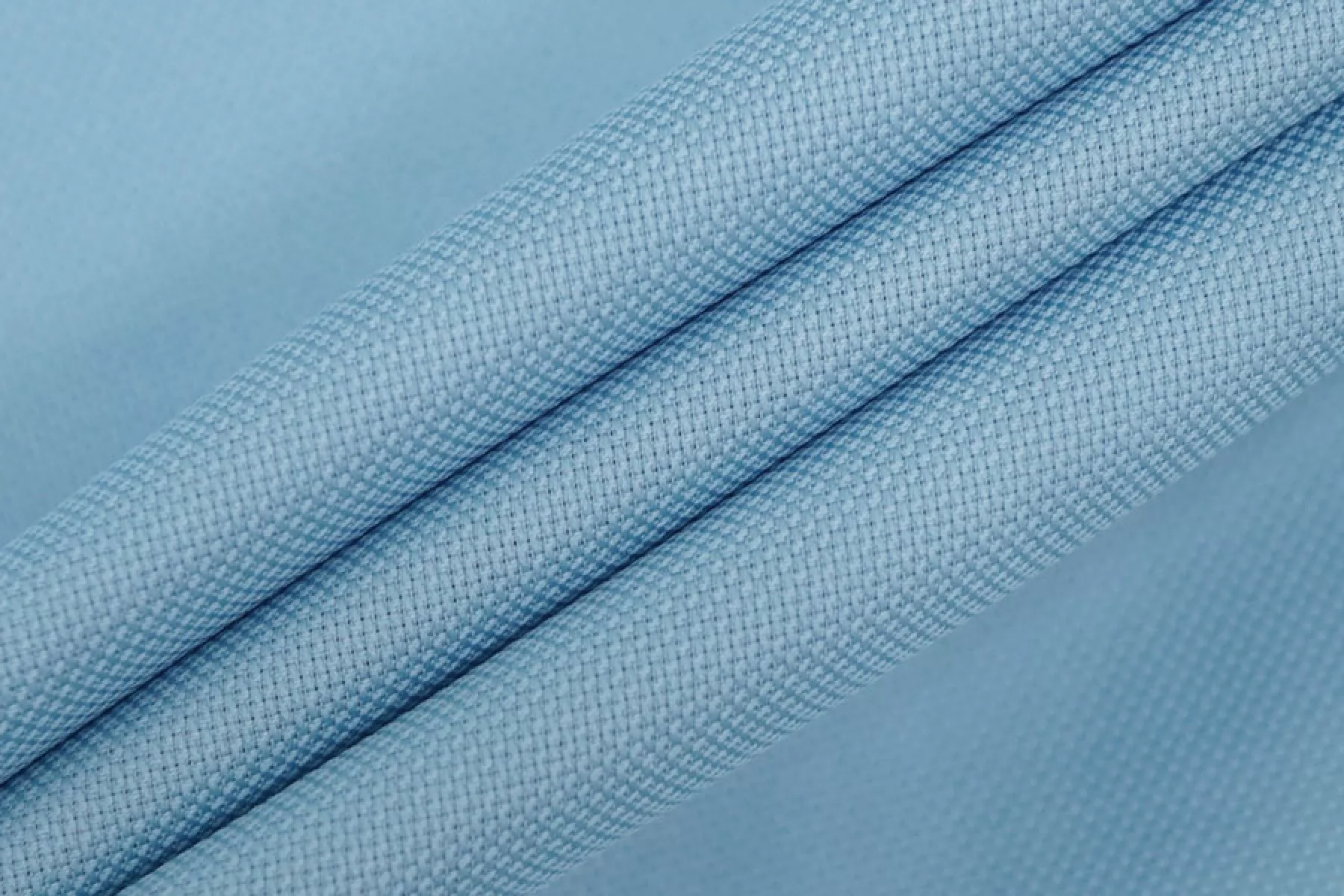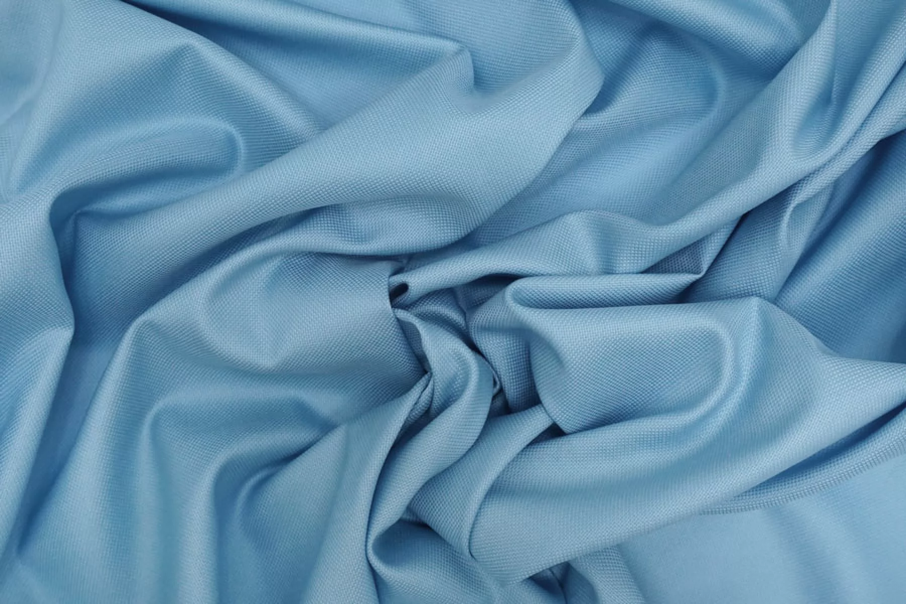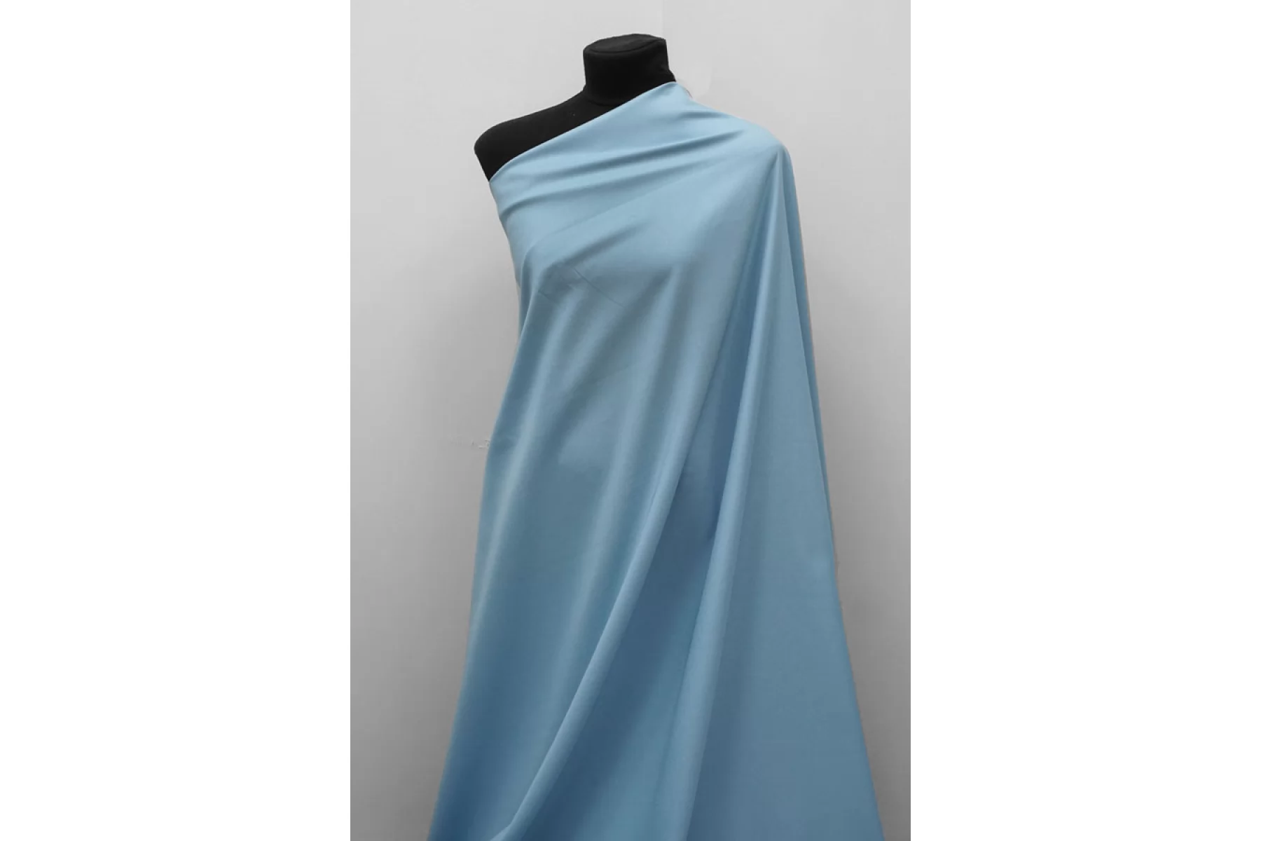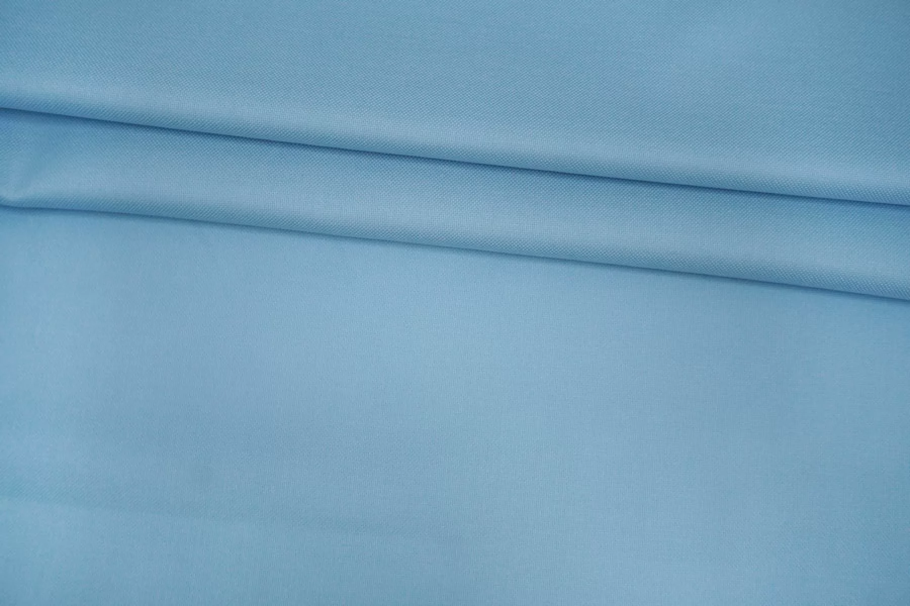Итальянский рубашечный хлопок от Versace, c мелкой жаккардовой выработкой, голубого цвета. Материал гладкий, мягкий, тонкий, с красивым мягким лоском. Немного мнется и слегка просвечивает силуэт. Немного тянется благодаря плетению. Пластичный но форму держит. Прекрасный вариант на рубашки, юбки, платья. Для платья или юбки может потребоваться подкладка. Материал дает усадку.