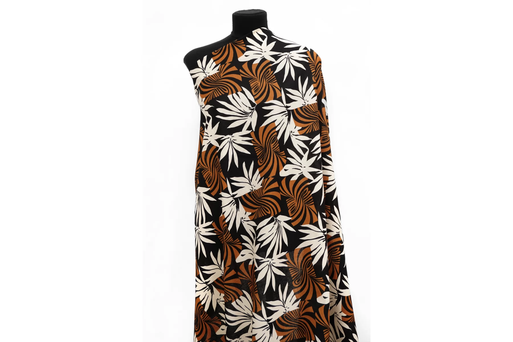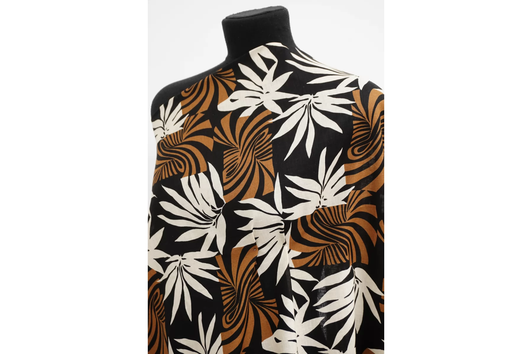 Итальянский лён с хлопком рубашечной плотности с абстрактными растениями в черном, коричневом и молочном цвете. Материал упругий, легкий, тонкий, но плотненький. Слегка просвечивает силуэт. Гладкий, слегка суховатый, очень приятный к телу. Слегко держит форму. Отличный летний вариант на рубашки, платья, юбки, штаны. При необходимости используйте подкладочный материал.