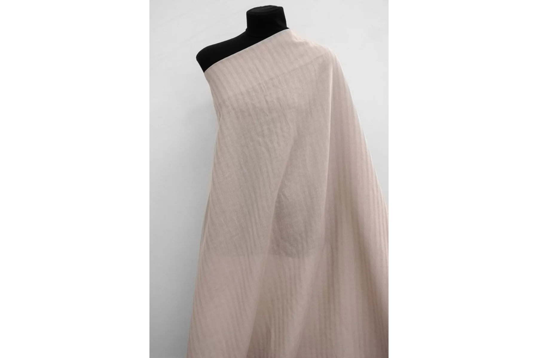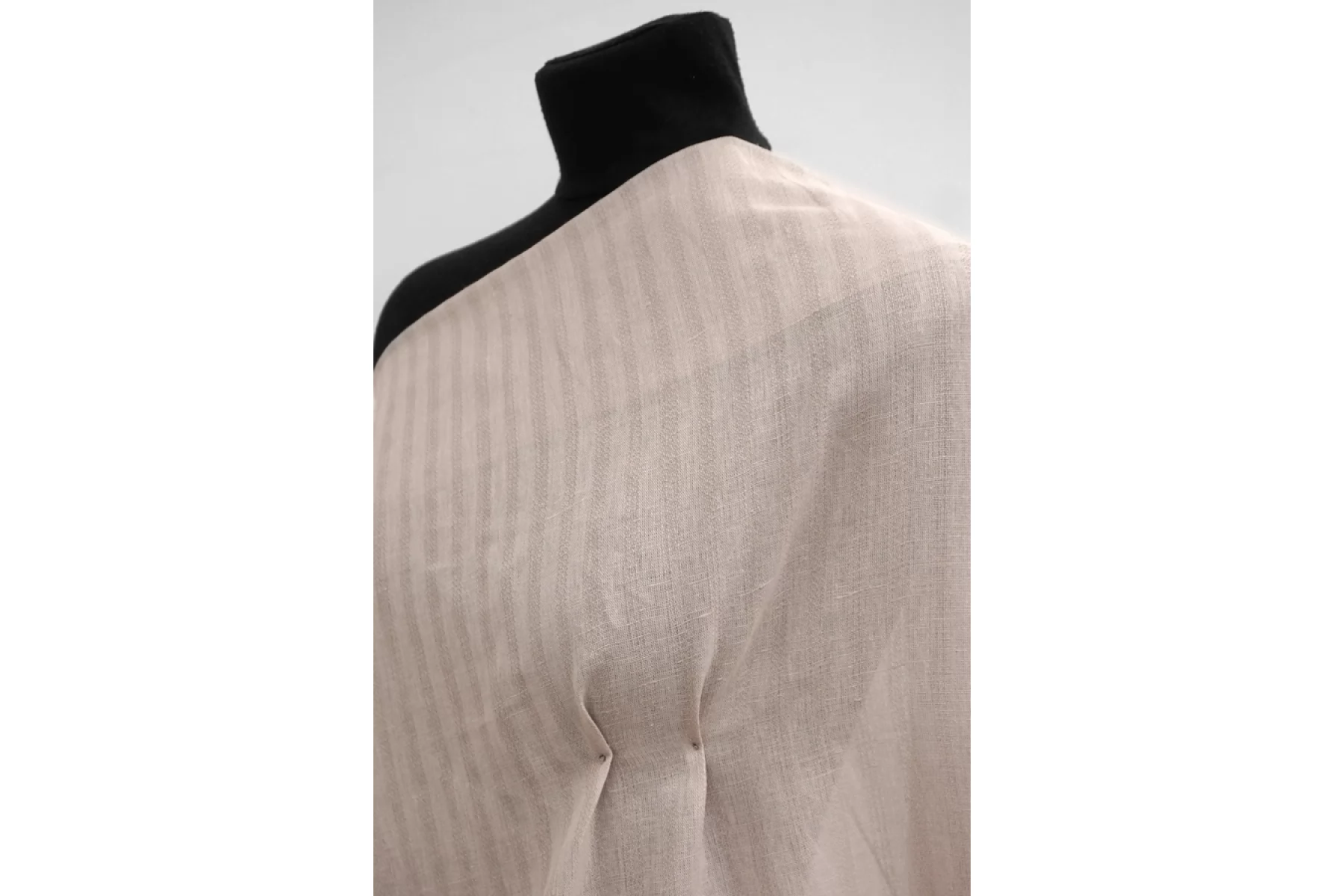Итальянский тонкий рубашечный лён от Forte Forte в светлом серо-бежевом цвете с подтоном какао. Тонкий, с фактурными жаккардовыми полосками, которые проходят по длине. Пластичный, немного просвечивает, не тянется. Подойдет для пошива платья, рубашки, юбки.