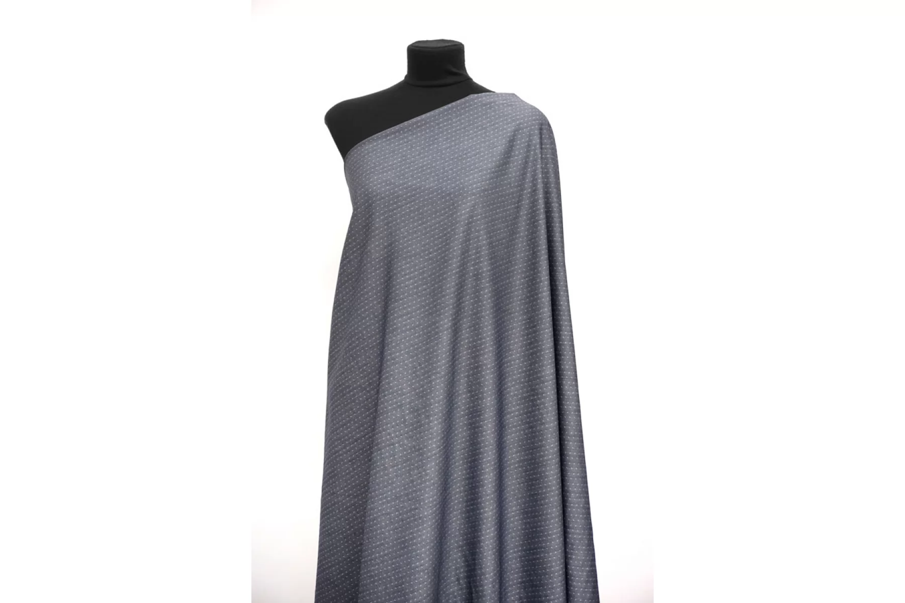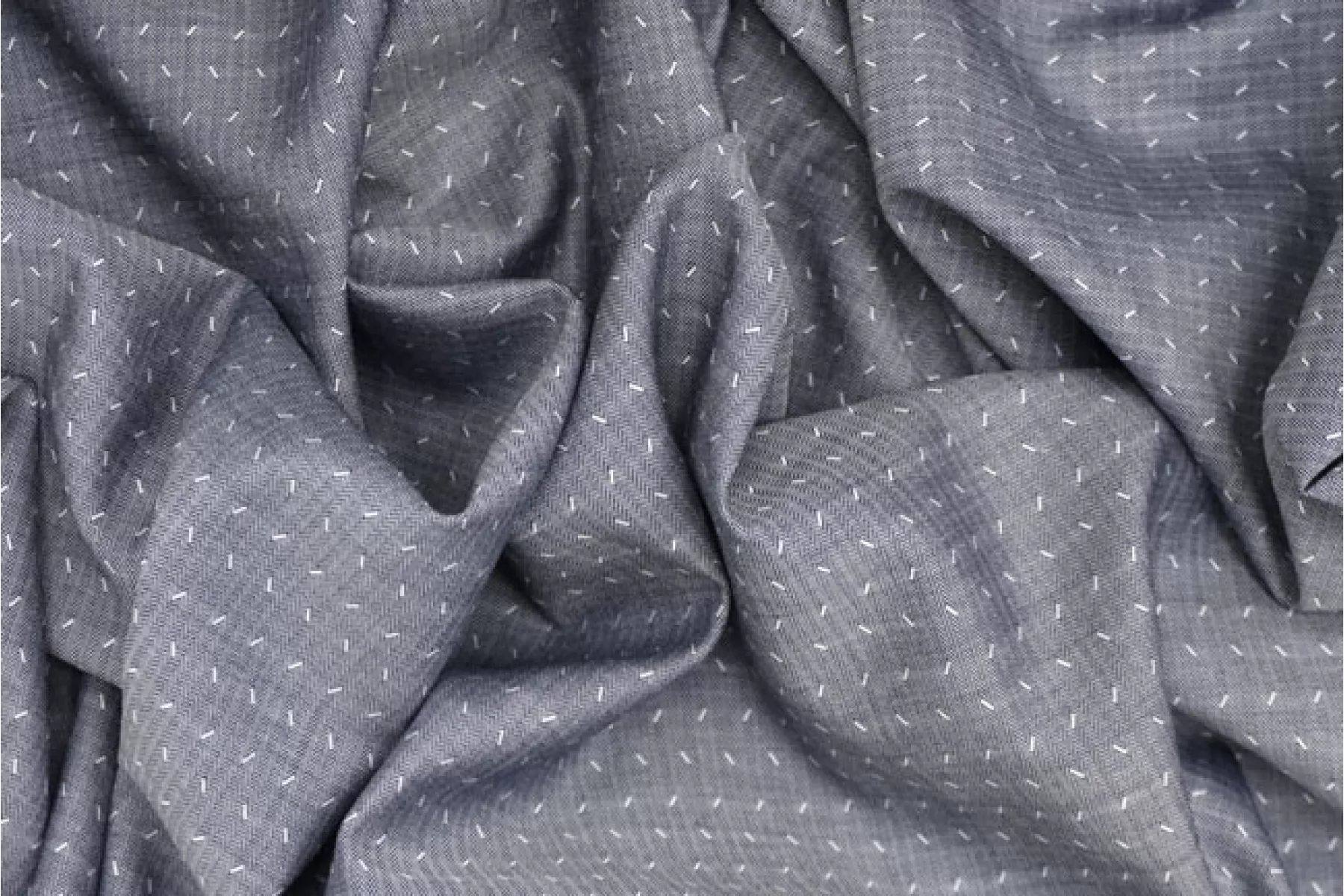 Отличный рубашечный хлопковый жаккард из нитей синего и темно-синего и белого оттенка, которые образуют рисунок елочки. Тактильно мягкий и приятный, гладкий. Достаточно тонкий, но не просвечивает. Неплохо пружинит за счет плетения. Обладает приятным лоском. Сминается, но частично восстанавливается. Отлично драпируется, немного держит форму. Прекрасно подойдет на рубашки, юбки со сборкой, платья и другое.