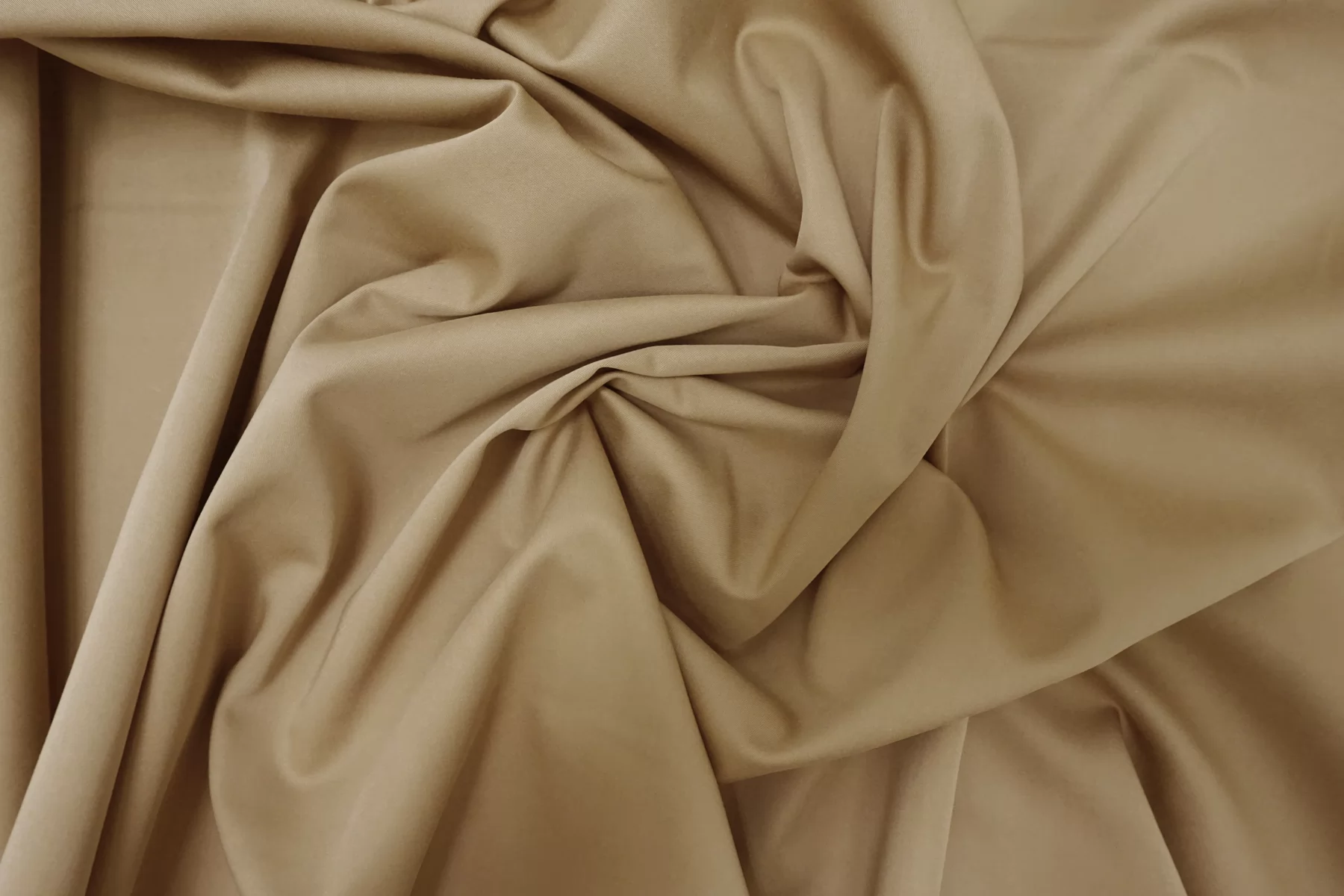 Шикарный итальянский хлопок плательно-костюмной плотности в бежевом цвете. Приятный, гладкий наощупь. С мягким лоском. Не тянется. Форму держит умеренно. Сминается. Пластичный. Не просвечивает. Отличный вариант на платья, юбки, костюмы, плотные рубашки, брюки. Учитывайте возможную усадку.
