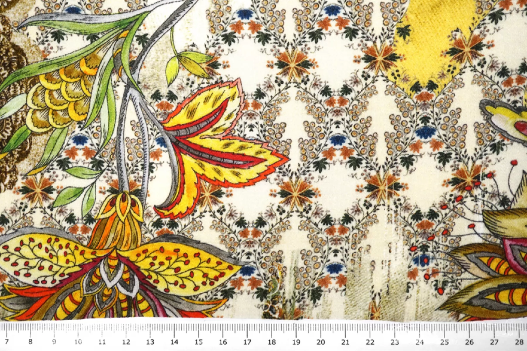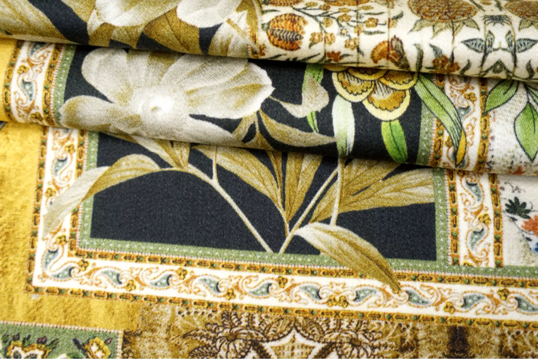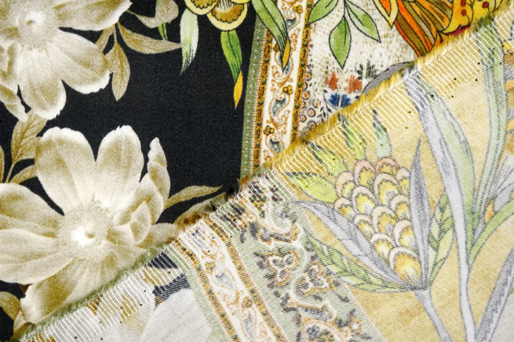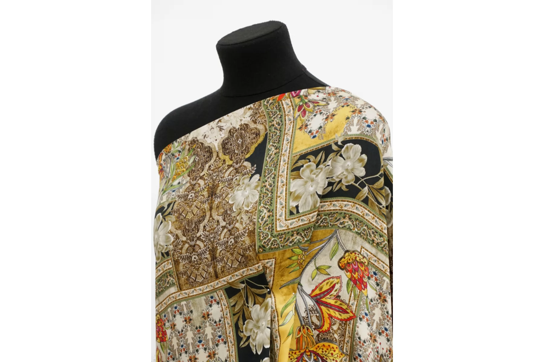 Необычная и прекрасная позиция - блузочная вискоза, сатин с очень оригинальным и достаточно крупным, по типу платочного, принтом в желто-зелено-коричневой цветовой гамме . Тактильно очень приятная, гладкая и очень мягкая. Смотрится очень красиво! Не тянется и не мнется. Легкая и струящаяся. Еле-еле просвечивает силуэт на просвет. Подойдет на платье, халат, кимоно, блузку или юбку. Обязательно учитывайте усадку 5-10%. Шить изделия из данного материала рекомендуем тонкой иглой.
