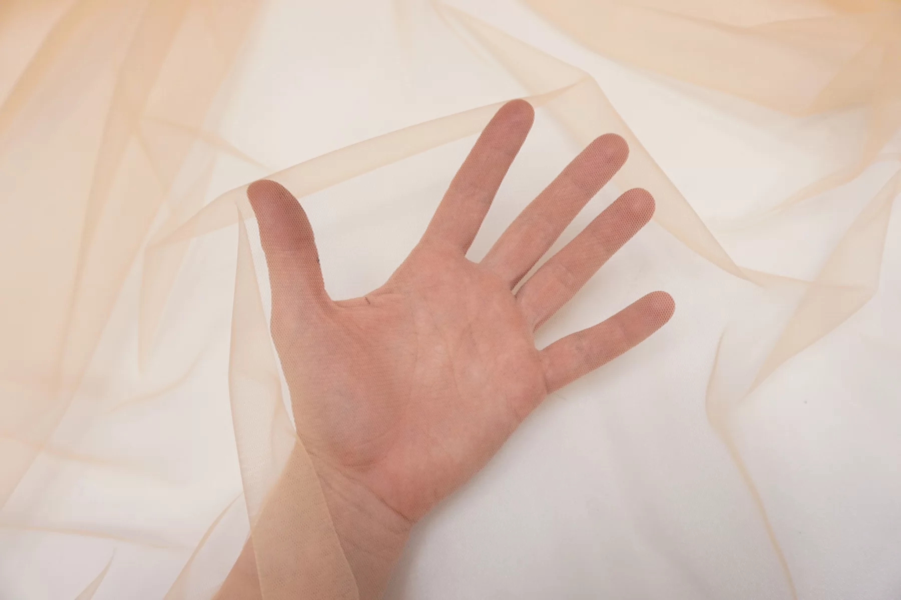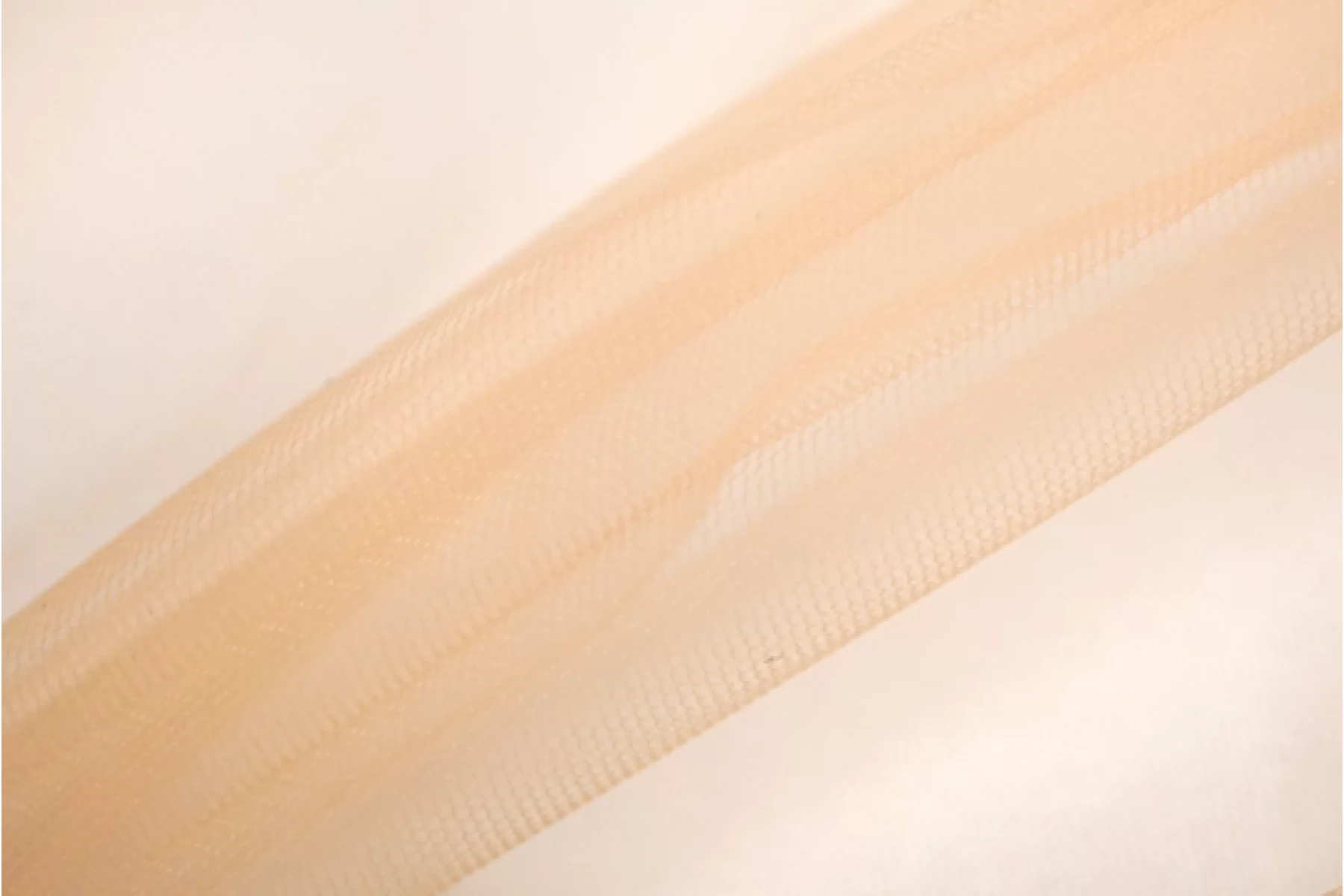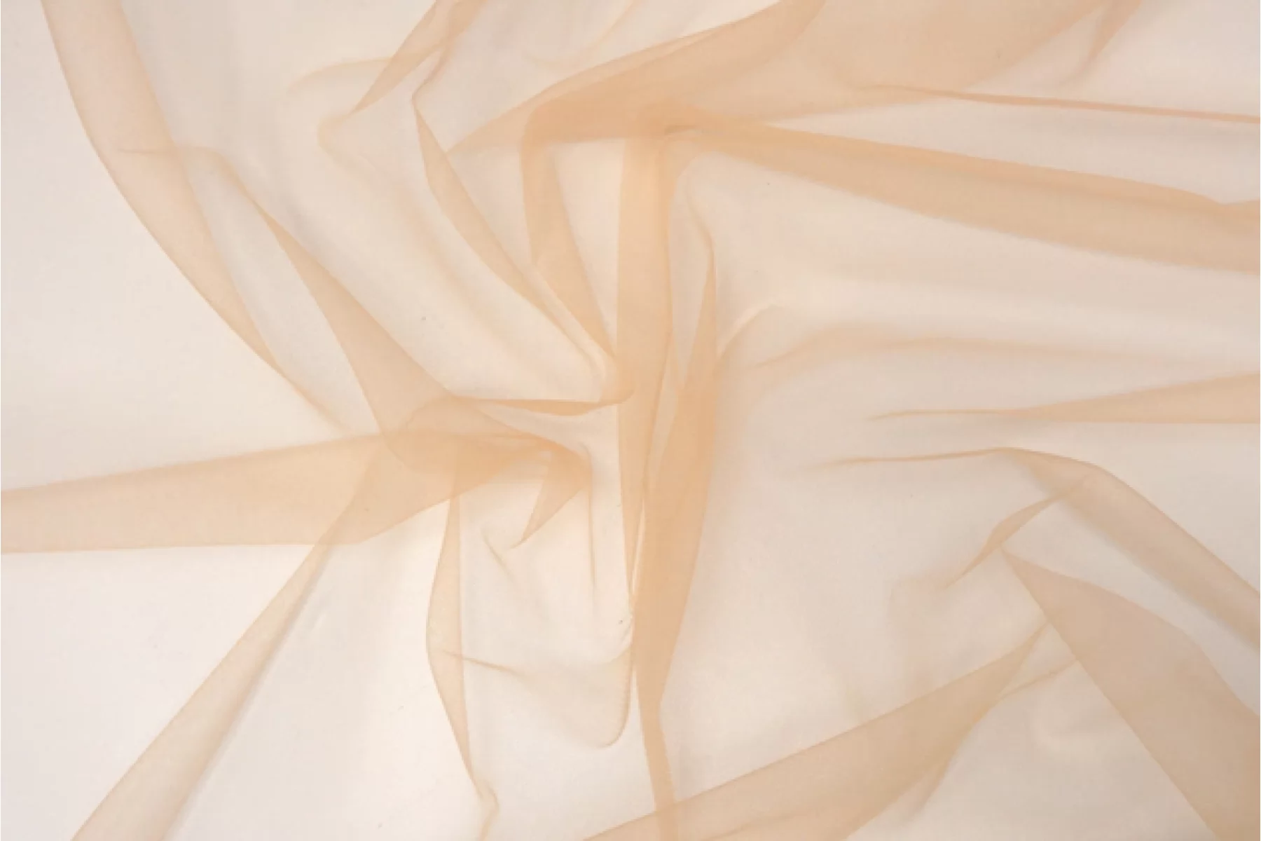 Фатиновая сетка от французского бренда Bon Mariage в миндальном оттенке. Тонкая, пластичная, хорошо тянется, слегка жестковатая на ощупь. Немного держит форму. Полупрозрачная. Идеально подойдет для пошива нарядной одежды, а также для декора белья или отдельных элементов изделий. Отличная ширина!