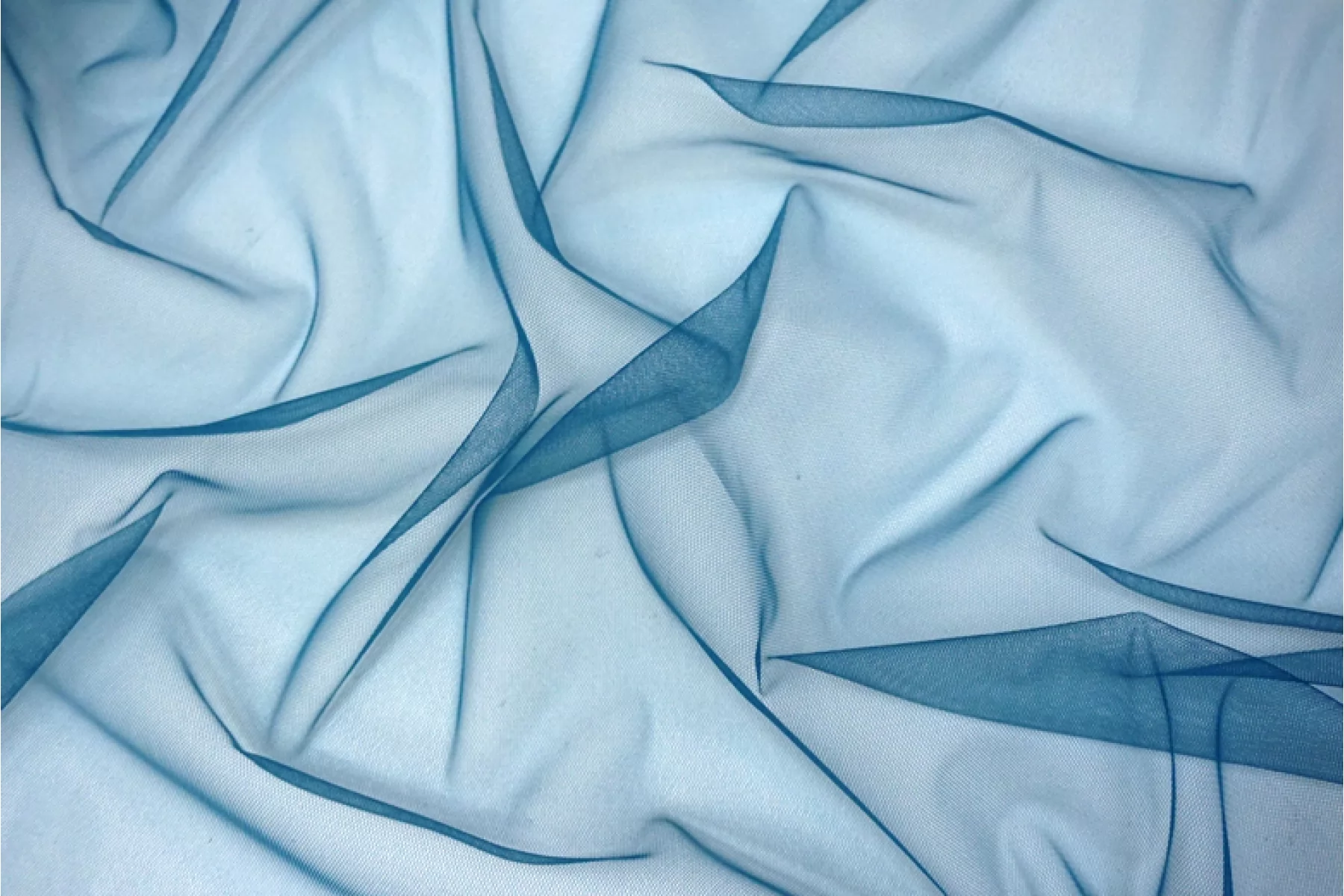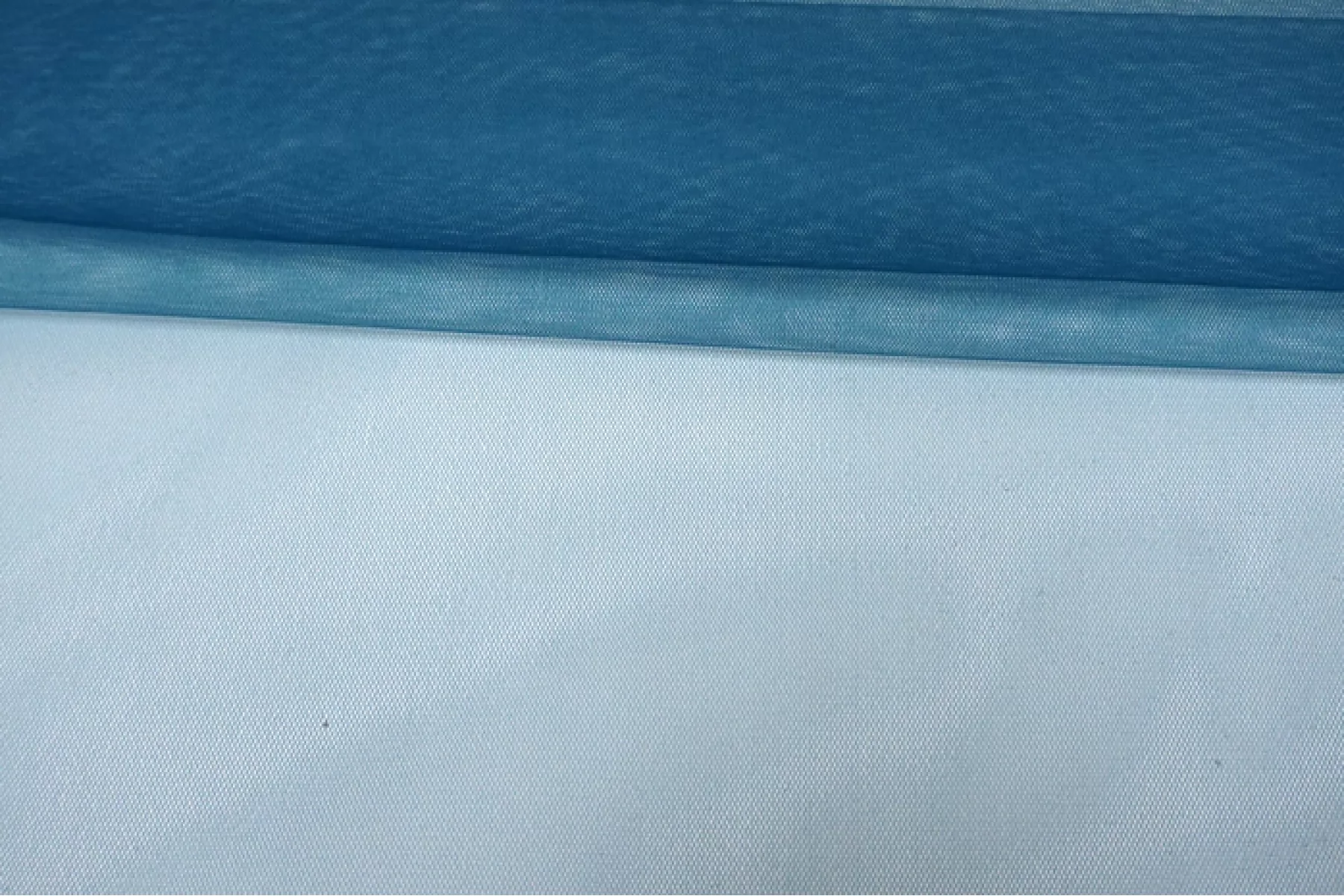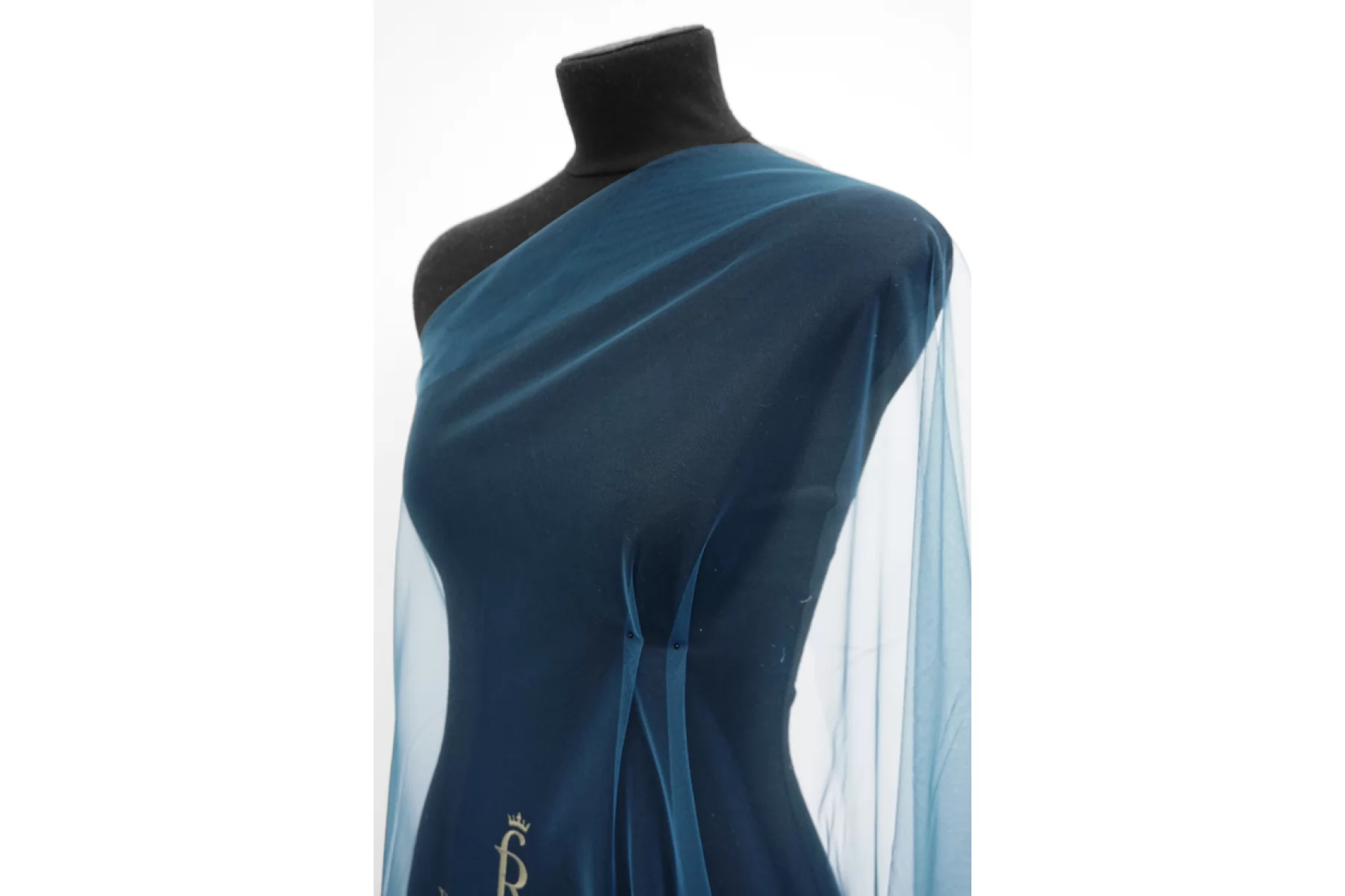 Фатиновая сетка от французского бренда Bon Mariage в оттенке петроль. Тонкая, пластичная, хорошо тянется, слегка жестковатая на ощупь. Немного держит форму. Полупрозрачная. Идеально подойдет для пошива нарядной одежды, а также для декора белья или отдельных элементов изделий. Отличная ширина!