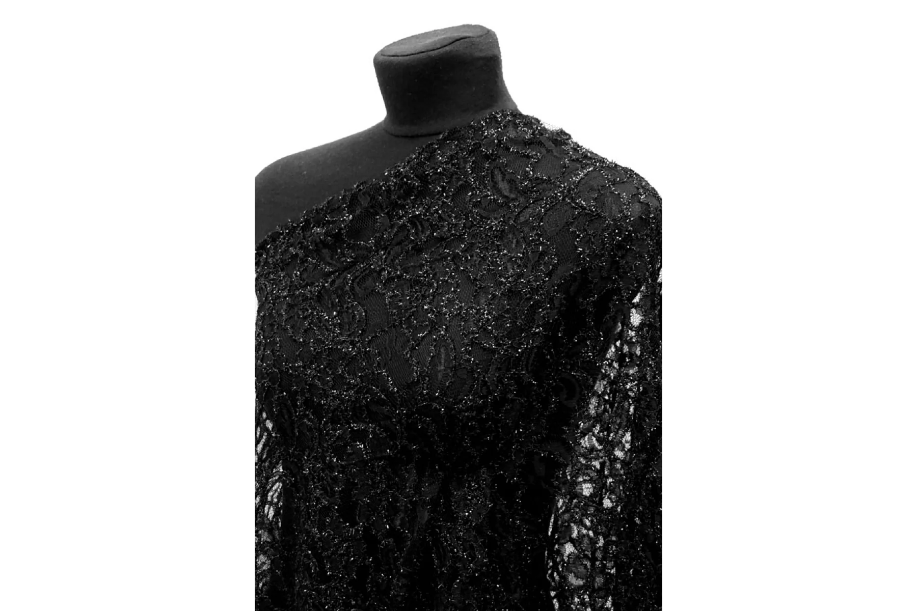 Сетка с кружевом и люрексом, в чёрном цвете с цветочным узором. Тактильно колкая, шершавая. Просвечивает, пластичная. Подойдет для пошива самостоятельного изделия (на подкладе), или отделки отдельных элементов одежды и аксессуаров.
